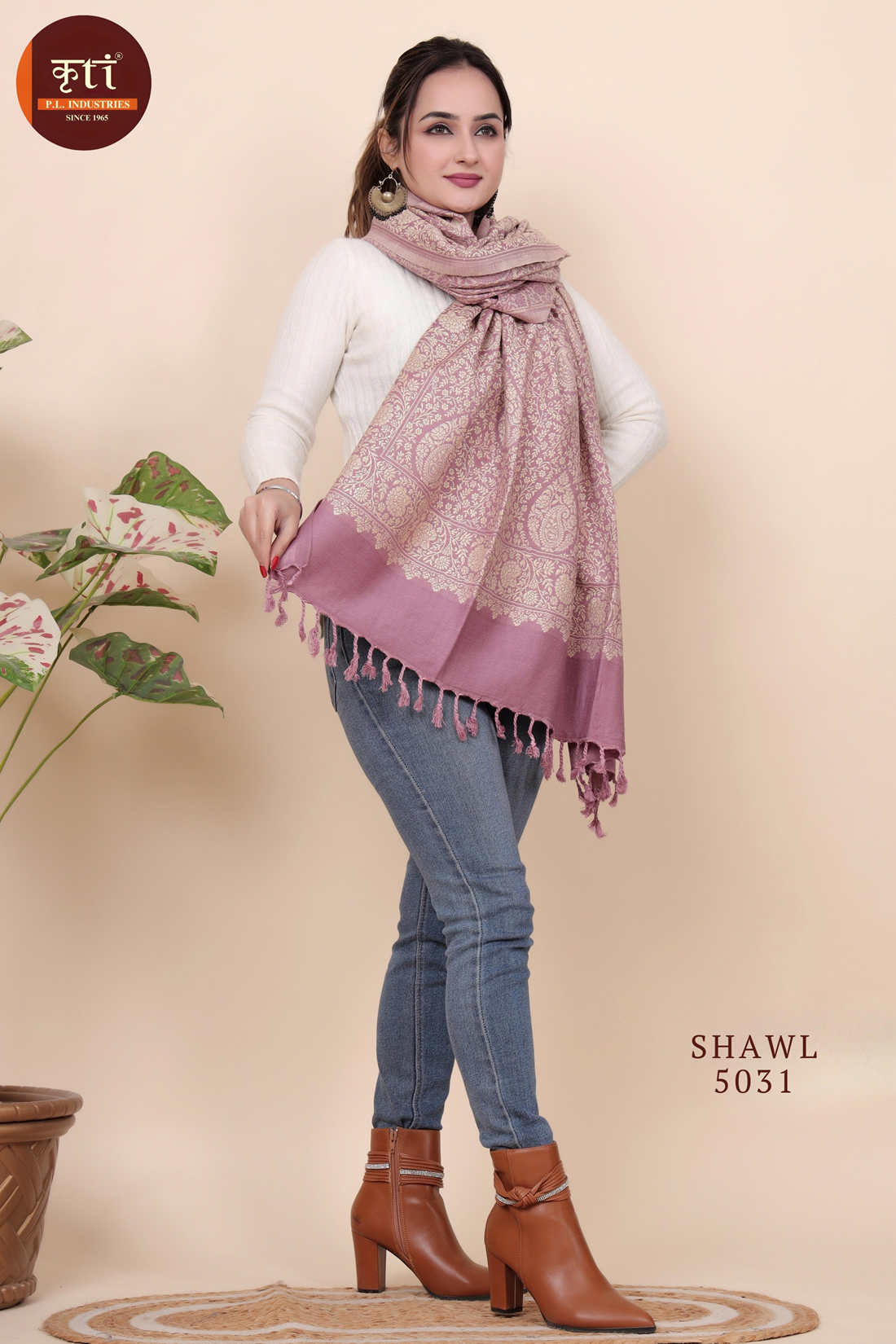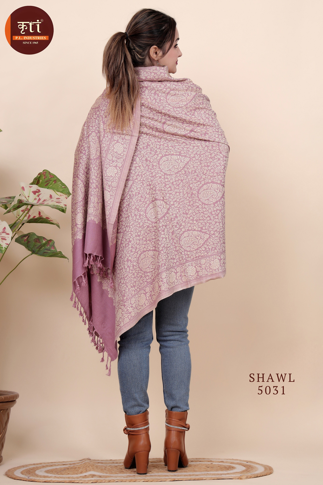महिलाओं के लिए KRITI ऑल ओवर पैटर्न ऊनी गुलाबी रंग का शॉल
