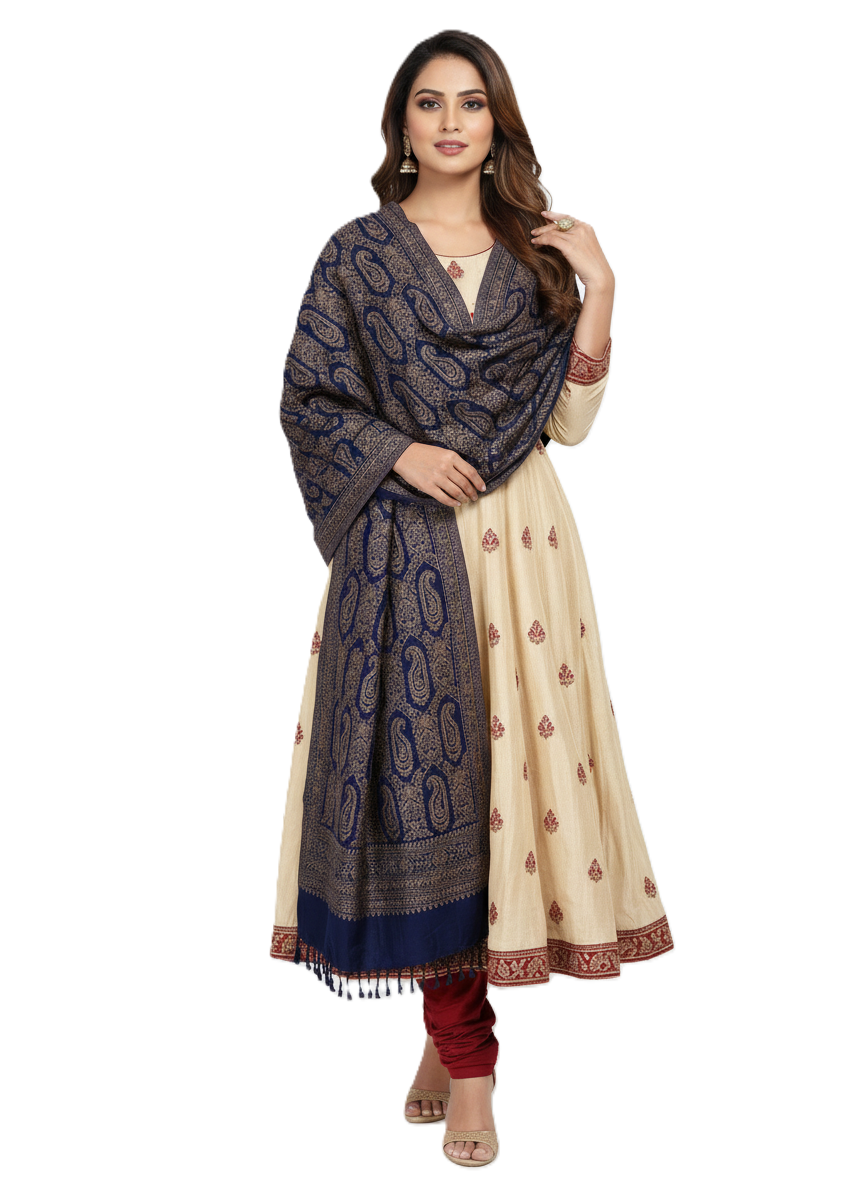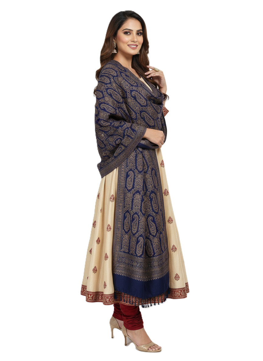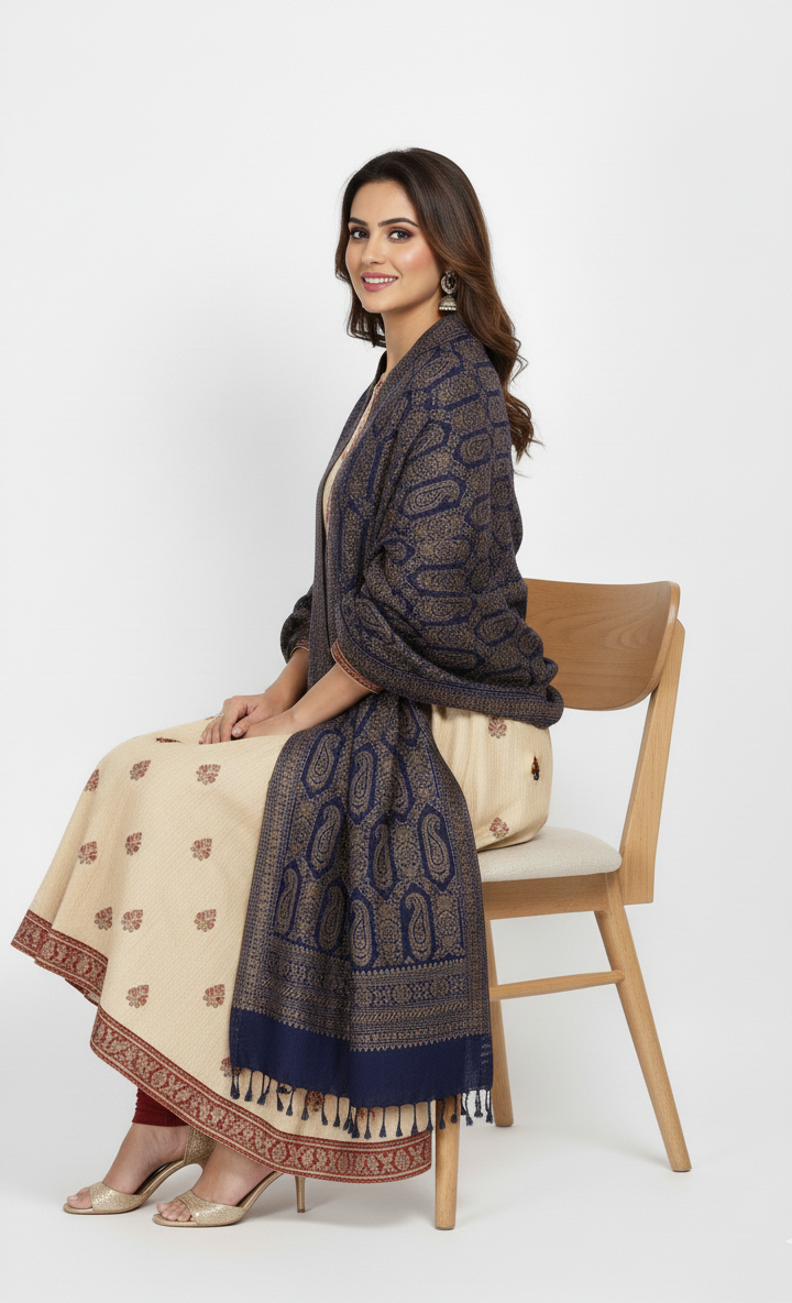 कृति पैस्ले डिज़ाइन ऊनी नेवी कलर स्टोल महिलाओं के लिए विंटरवियर