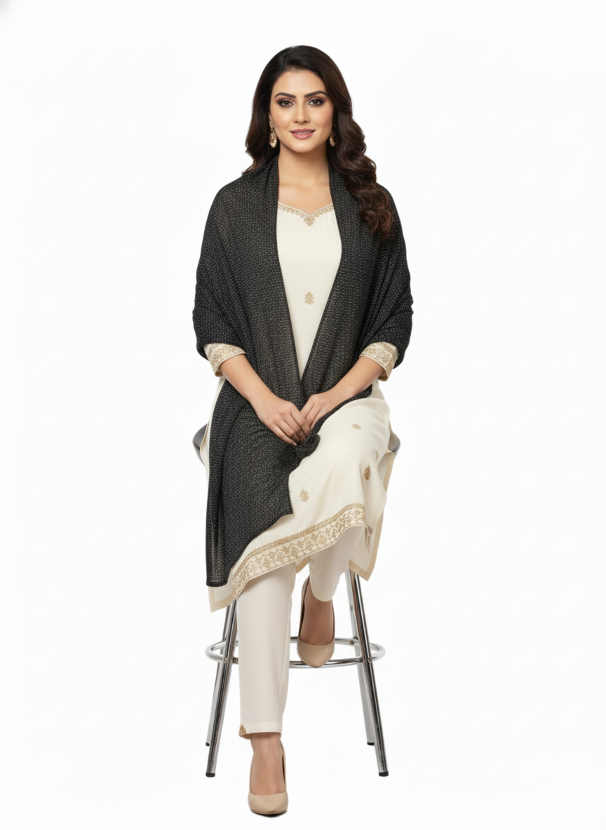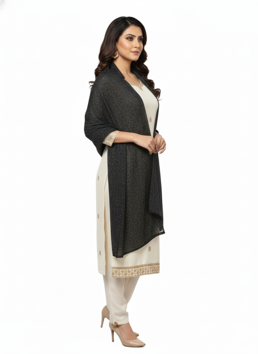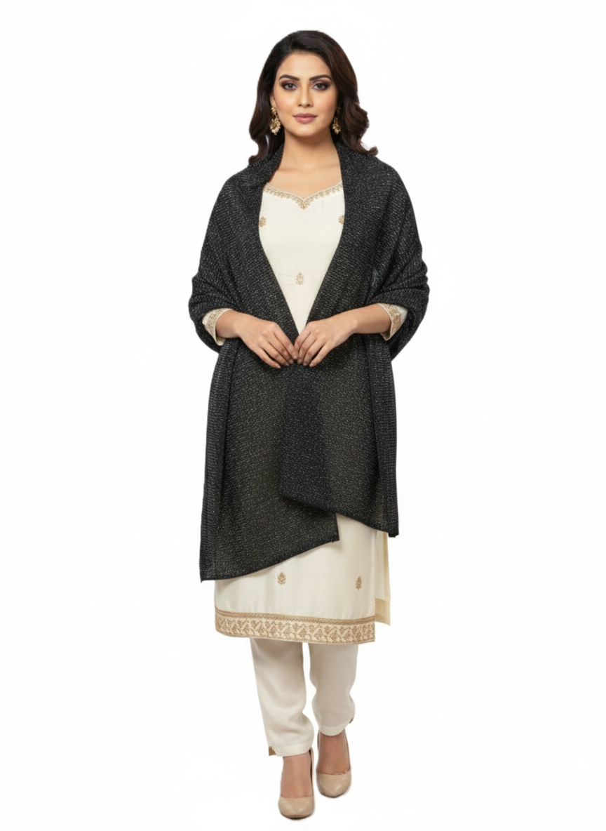 महिलाओं के लिए कृति ऊनी काले रंग का ज़री स्टोल विंटरवियर