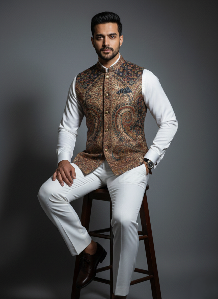 उच्च गुणवत्ता वाले पॉलीवूल फ़ैब्रिक से बने इस शानदार कश्मीरी कानी लॉन्ग कोट के साथ सर्दियों की खूबसूरती का आनंद लें। अपनी जटिल, पारंपरिक कानी बुनाई के लिए जाना जाने वाला यह कोट कालातीत सुंदरता और बेजोड़ गर्माहट प्रदान करता है। पॉलीवूल का मिश्रण टिकाऊपन, कोमलता और बेहतरीन इन्सुलेशन सुनिश्चित करता है, जो इसे ठंड के दिनों के लिए एकदम सही बनाता है। इसका लंबा डिज़ाइन पूरी तरह से कवरेज और एक आकर्षक सिल्हूट प्रदान करता है, जबकि कानी कढ़ाई एक कलात्मक स्पर्श जोड़ती है, जो इसे कैज़ुअल और फॉर्मल, दोनों अवसरों के लिए एक बेहतरीन परिधान बनाती है। आपके विंटर वॉर्डरोब का एक शानदार और आरामदायक हिस्सा, यह कोट क्लासिक शिल्प कौशल और आधुनिक आराम का मिश्रण है।
