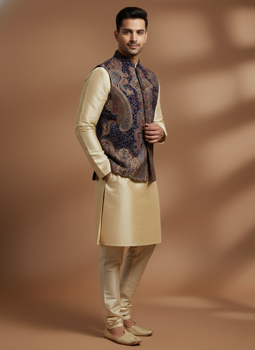 उच्च गुणवत्ता वाले पॉलीवूल फ़ैब्रिक से बने इस शानदार कश्मीरी कानी लॉन्ग कोट के साथ सर्दियों की खूबसूरती का आनंद लें। अपनी जटिल, पारंपरिक कानी बुनाई के लिए जाना जाने वाला यह कोट कालातीत सुंदरता और बेजोड़ गर्माहट प्रदान करता है। पॉलीवूल का मिश्रण टिकाऊपन, कोमलता और बेहतरीन इन्सुलेशन सुनिश्चित करता है, जो इसे ठंड के दिनों के लिए एकदम सही बनाता है। इसका लंबा डिज़ाइन पूरी तरह से कवरेज और एक आकर्षक सिल्हूट प्रदान करता है, जबकि कानी कढ़ाई एक कलात्मक स्पर्श जोड़ती है, जो इसे कैज़ुअल और फॉर्मल, दोनों अवसरों के लिए एक बेहतरीन परिधान बनाती है। आपके विंटर वॉर्डरोब का एक शानदार और आरामदायक हिस्सा, यह कोट क्लासिक शिल्प कौशल और आधुनिक आराम का मिश्रण है।
