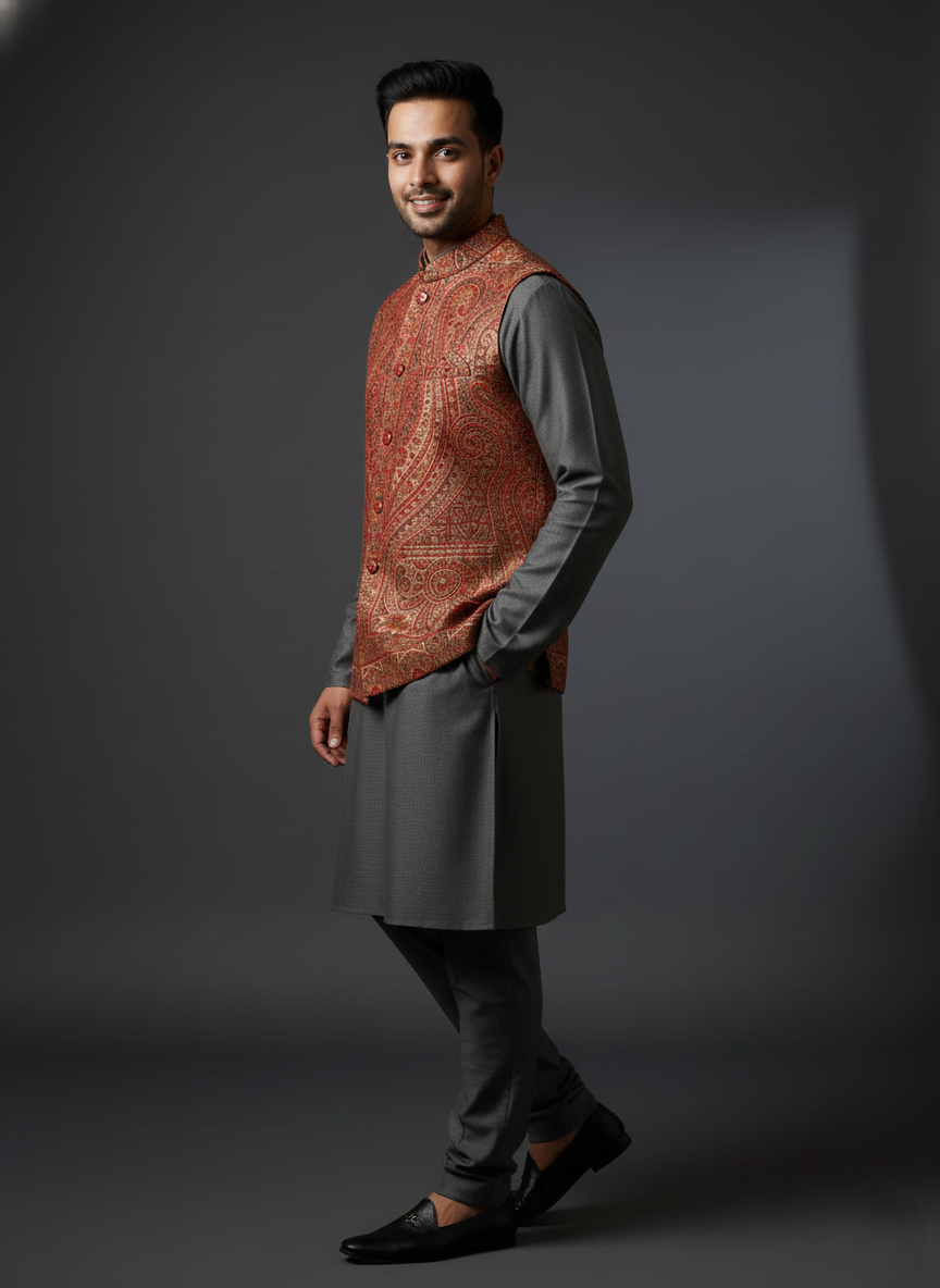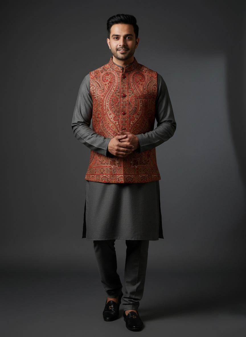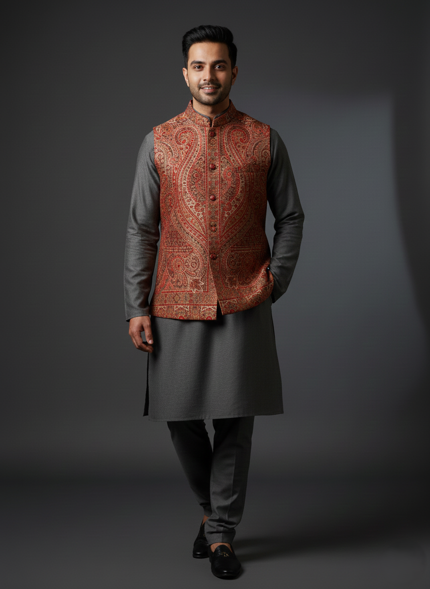 उच्च गुणवत्ता वाले पॉलीवूल फ़ैब्रिक से बने इस शानदार कश्मीरी कानी लॉन्ग कोट के साथ सर्दियों की खूबसूरती का आनंद लें। अपनी जटिल, पारंपरिक कानी बुनाई के लिए जाना जाने वाला यह कोट कालातीत सुंदरता और बेजोड़ गर्माहट प्रदान करता है। पॉलीवूल का मिश्रण टिकाऊपन, कोमलता और बेहतरीन इन्सुलेशन सुनिश्चित करता है, जो इसे ठंड के दिनों के लिए एकदम सही बनाता है। इसका लंबा डिज़ाइन पूरी तरह से कवरेज और एक आकर्षक सिल्हूट प्रदान करता है, जबकि कानी कढ़ाई एक कलात्मक स्पर्श जोड़ती है, जो इसे कैज़ुअल और फॉर्मल, दोनों अवसरों के लिए एक बेहतरीन परिधान बनाती है। आपके विंटर वॉर्डरोब का एक शानदार और आरामदायक हिस्सा, यह कोट क्लासिक शिल्प कौशल और आधुनिक आराम का मिश्रण है।