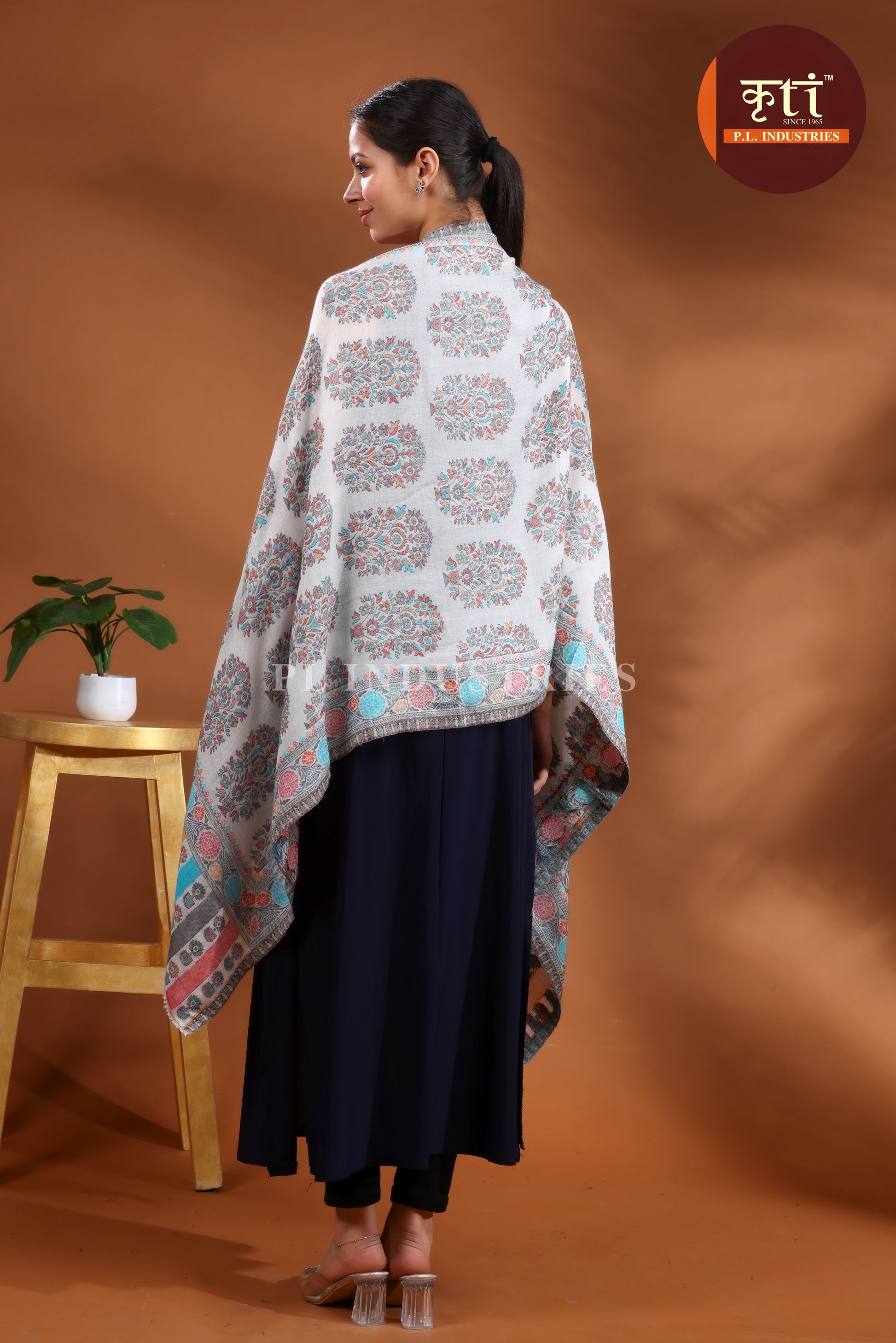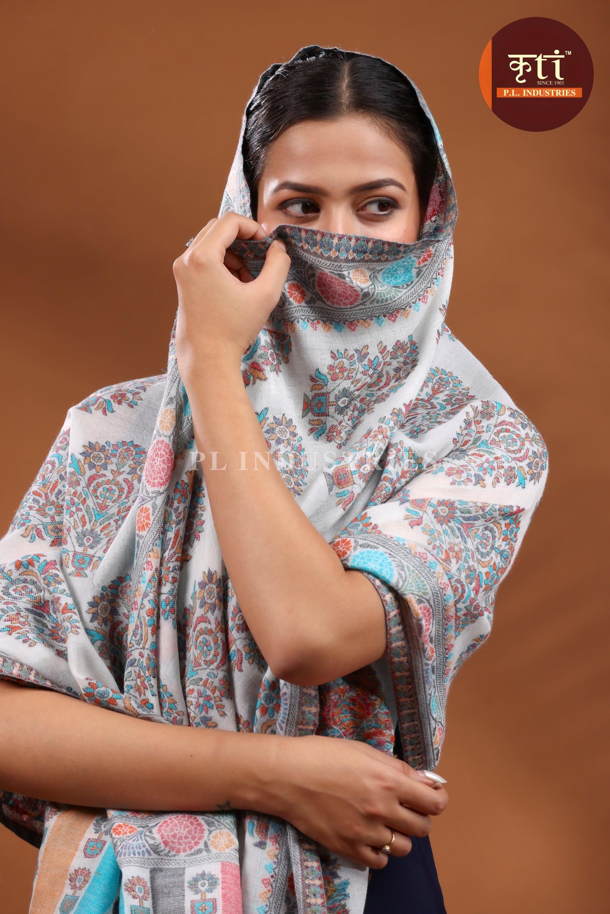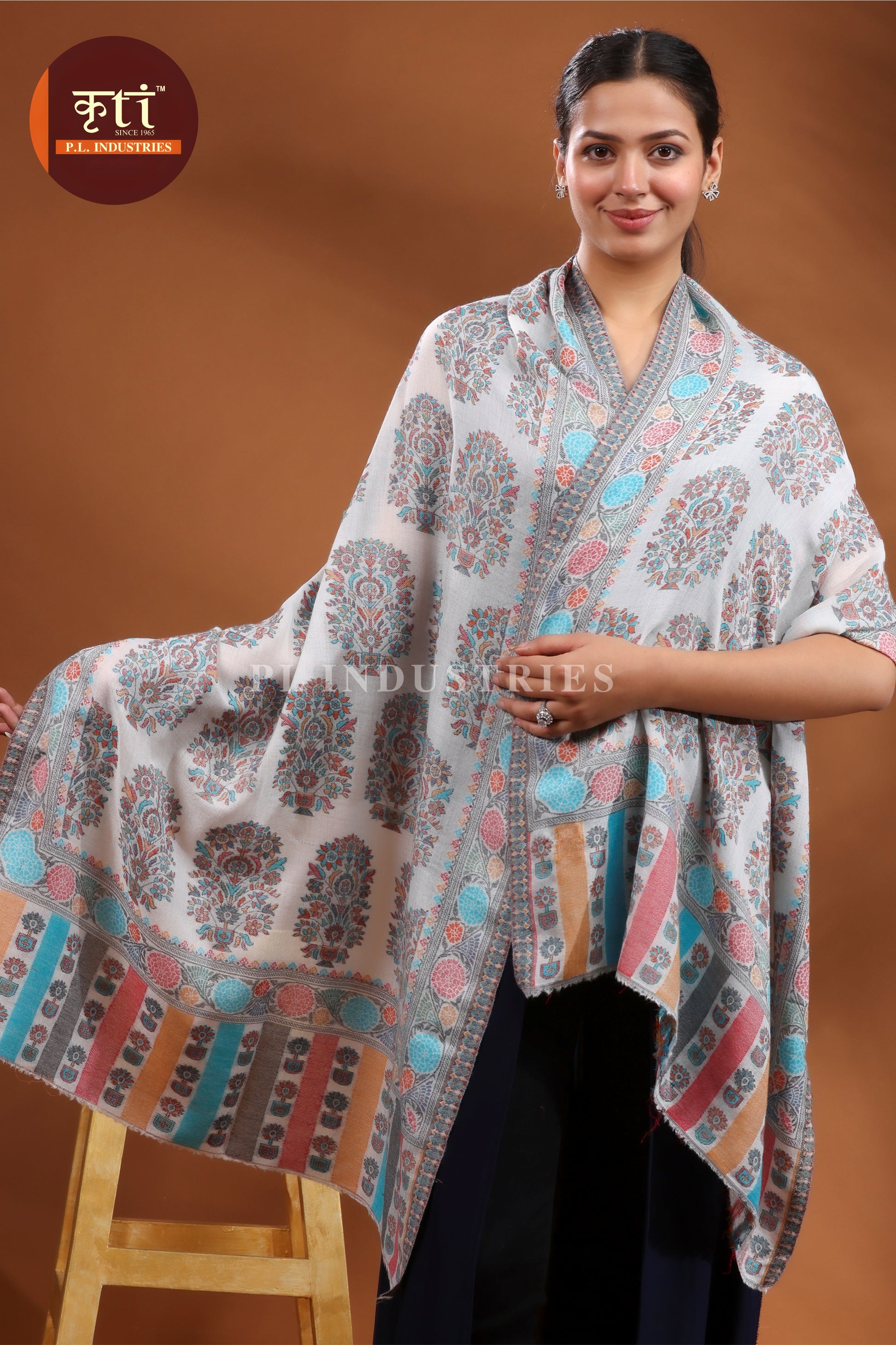 लड़कियों के लिए KRITI प्रीमियम बूटी डिज़ाइन का फाइन वूल ग्रे रंग का स्टोल