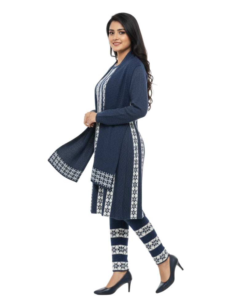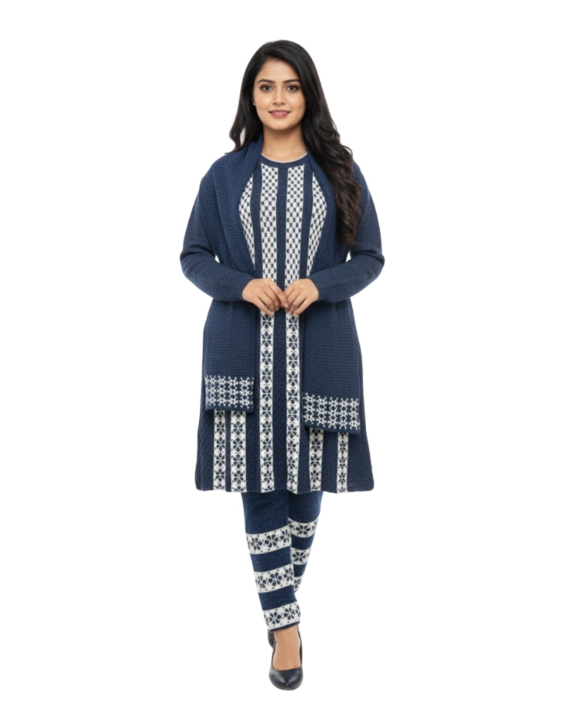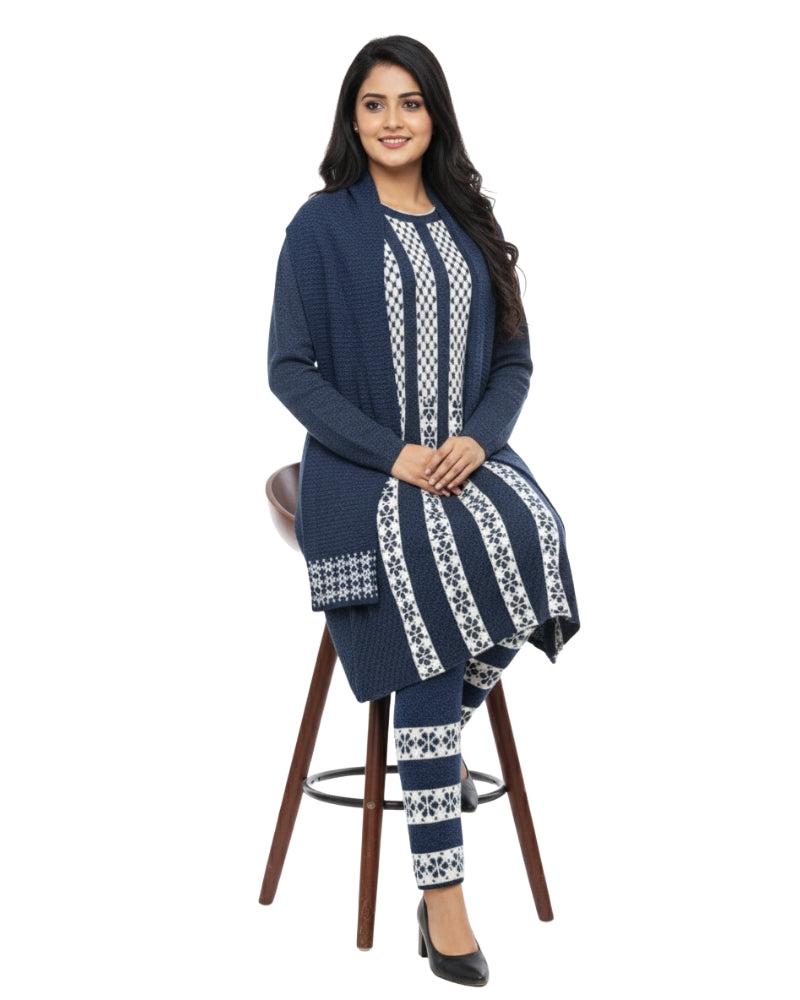महिलाओं के लिए कृति विंटर 3 पीस कुर्ती सेट नेवी कलर