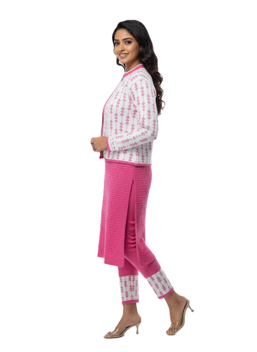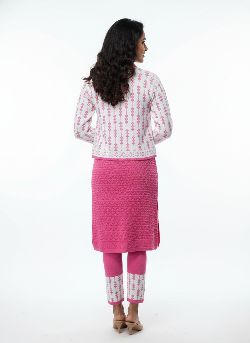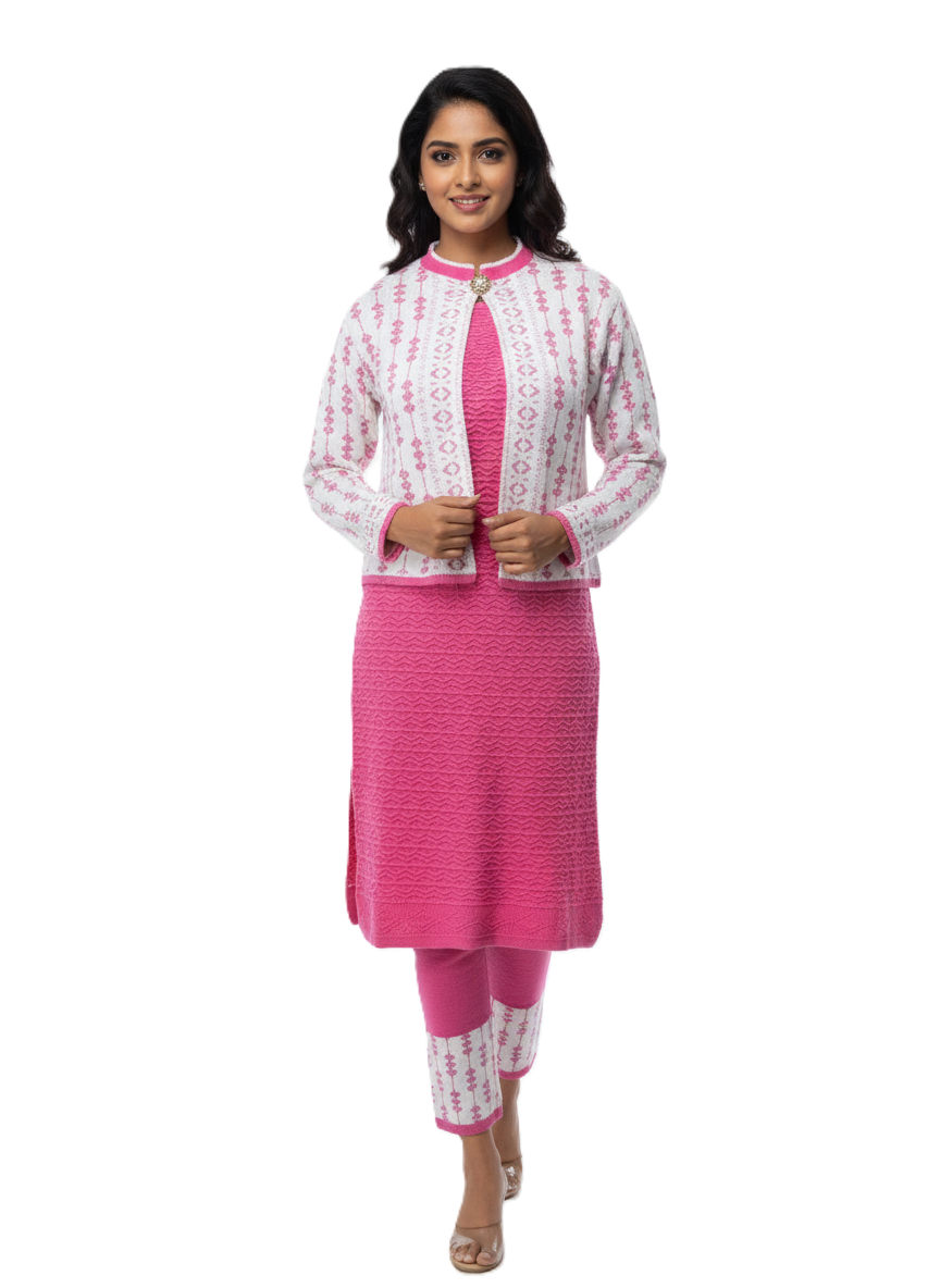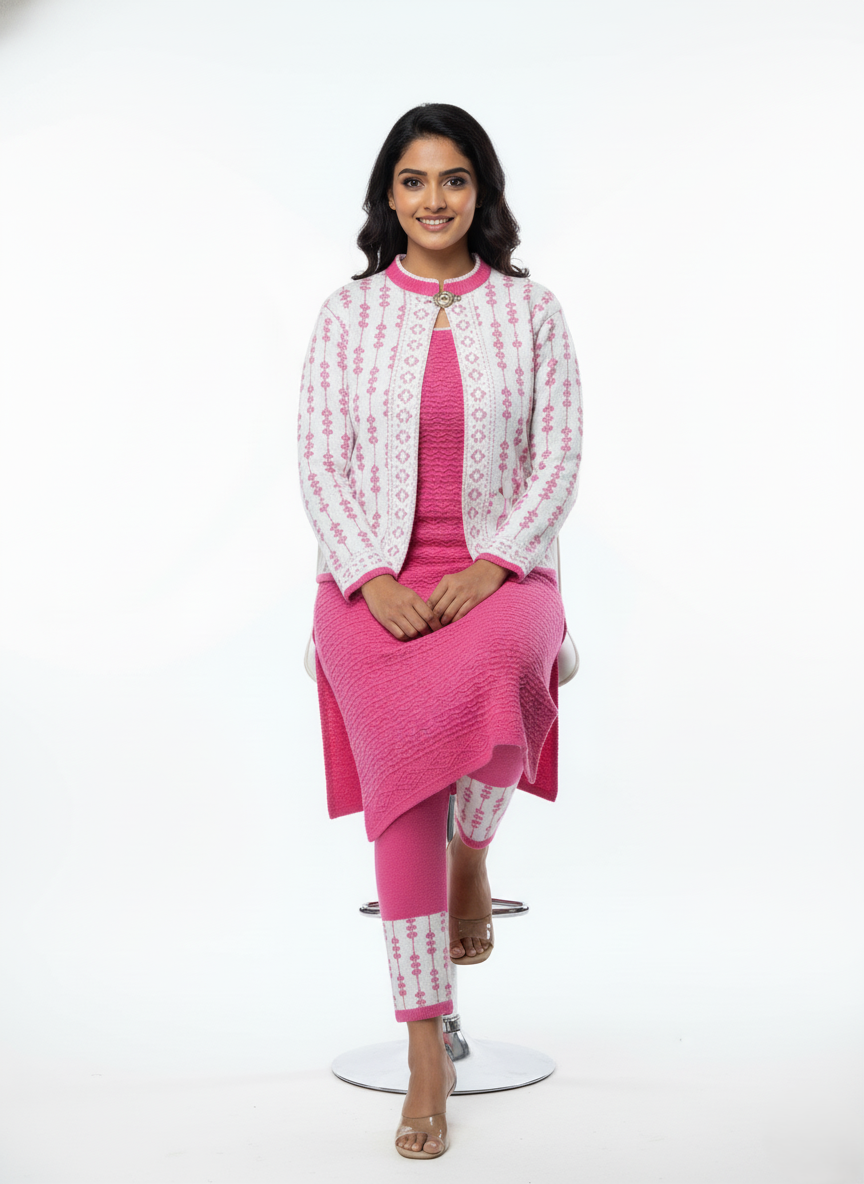 महिलाओं के लिए KRITI ऊनी 3 पीस कुर्ती सेट गहरे गुलाबी रंग