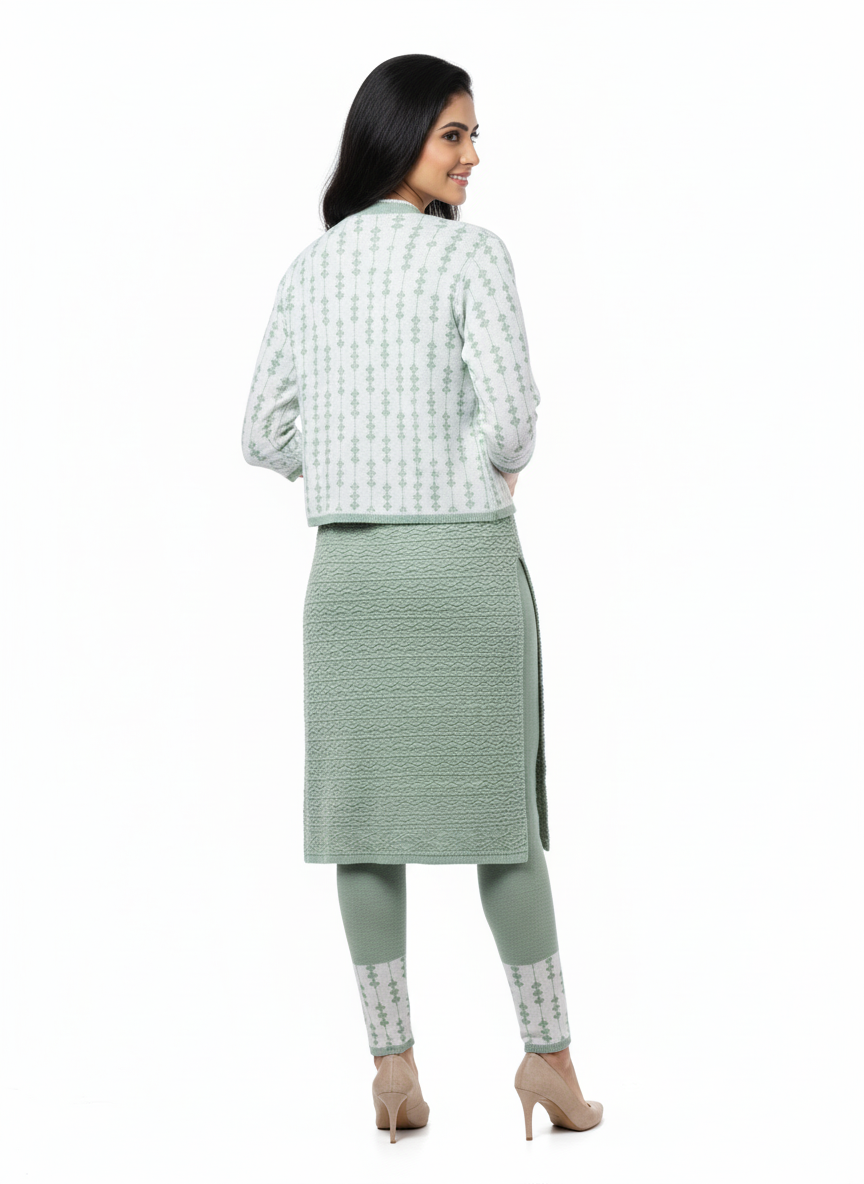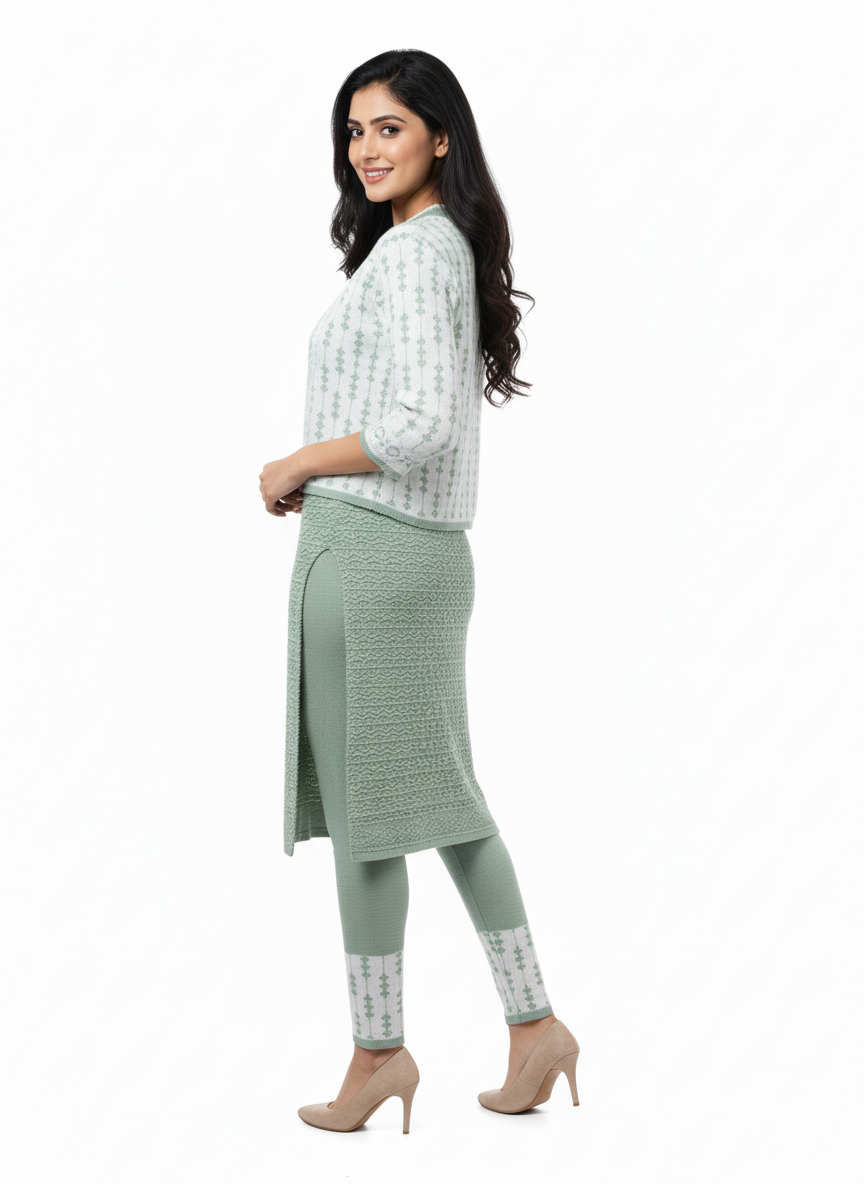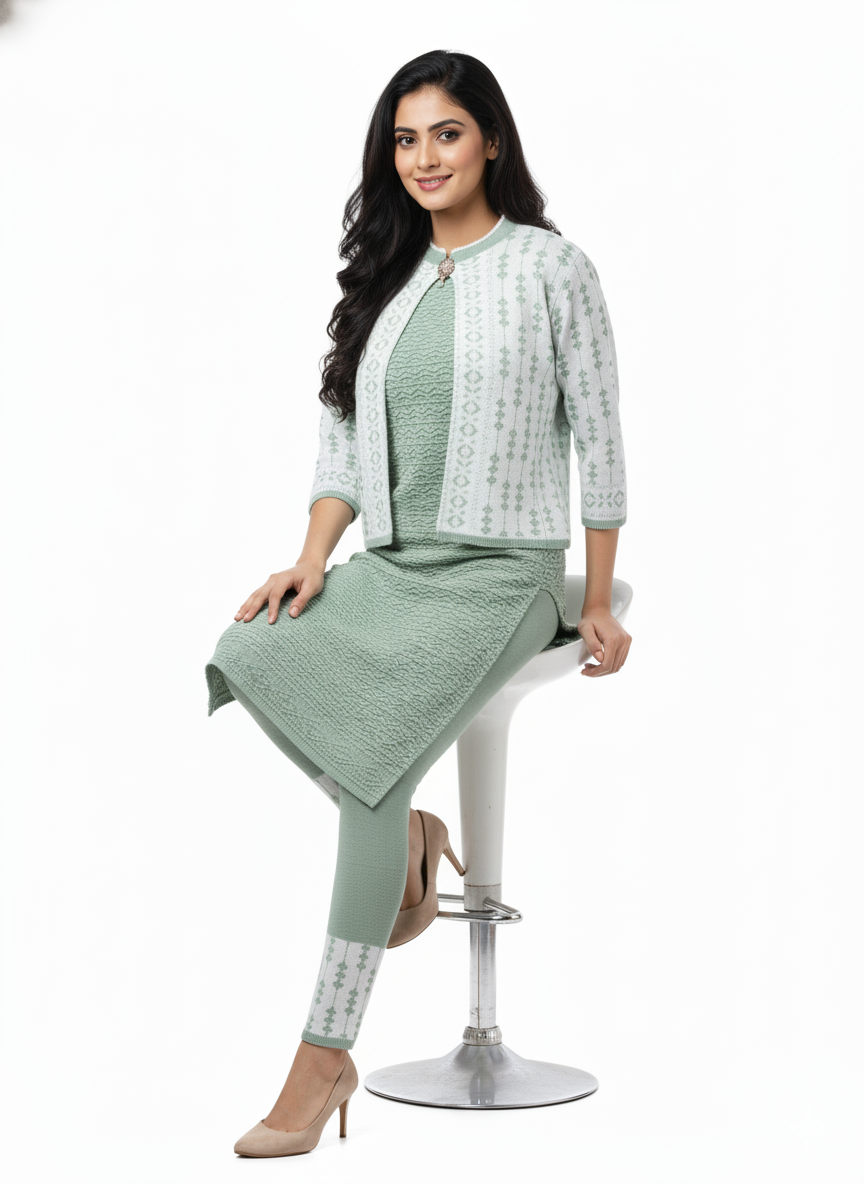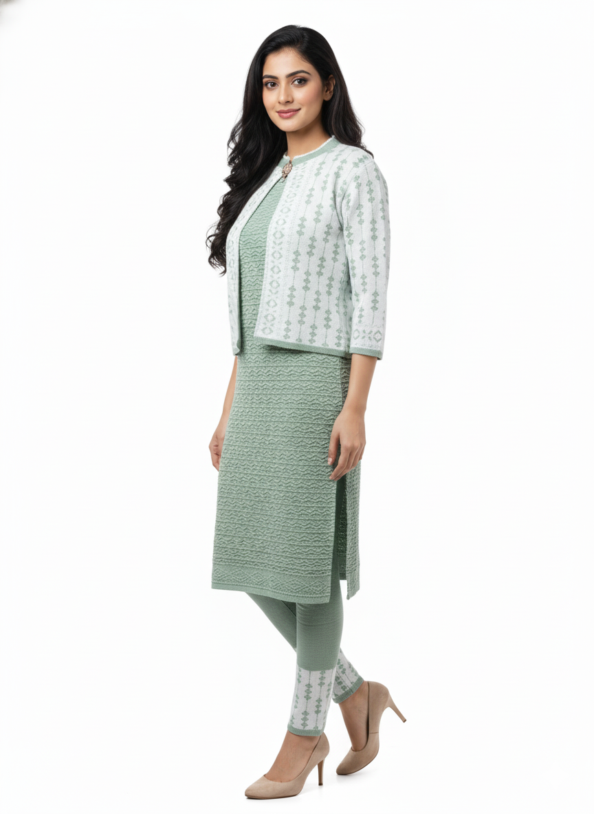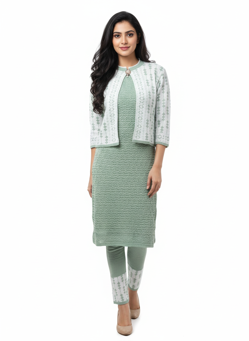 महिलाओं के लिए KRITI ऊनी 3 पीस कुर्ती सेट हरा रंग