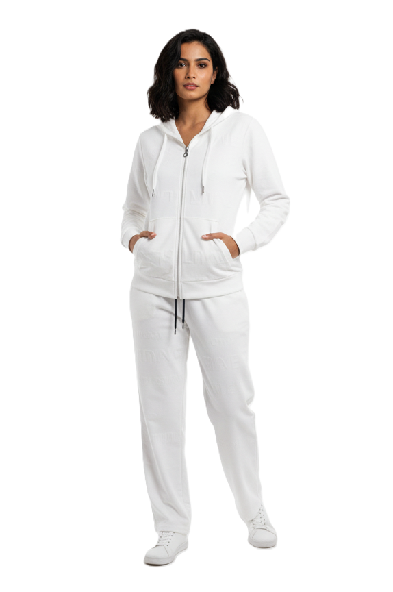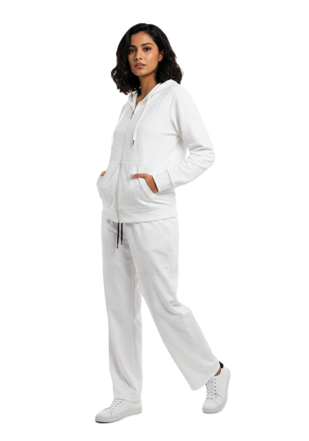 स्पोर्टी और बहुमुखी डिजाइन: इसमें एक पूर्ण-ज़िप हुडी और एक समायोज्य ड्रॉस्ट्रिंग कमर और साइड जेब के साथ मैचिंग लोअर शामिल है।