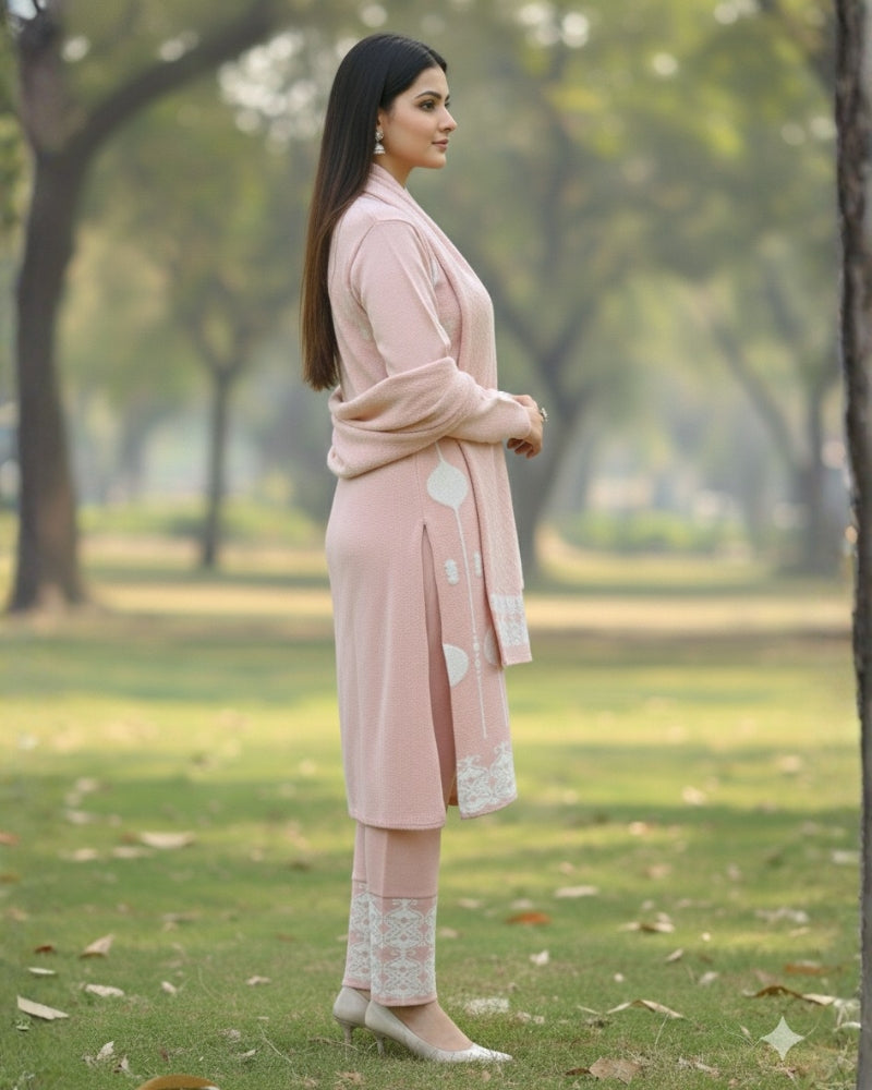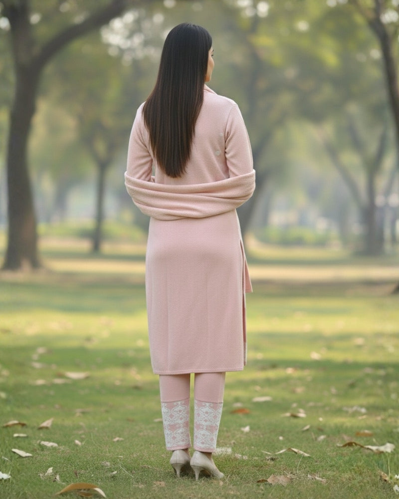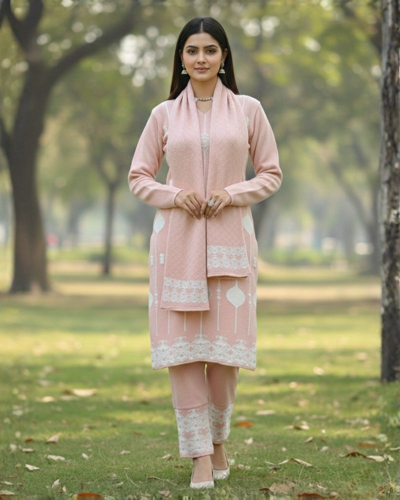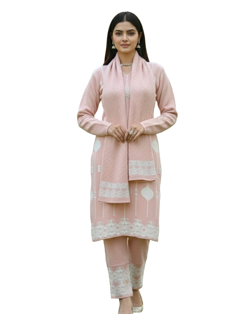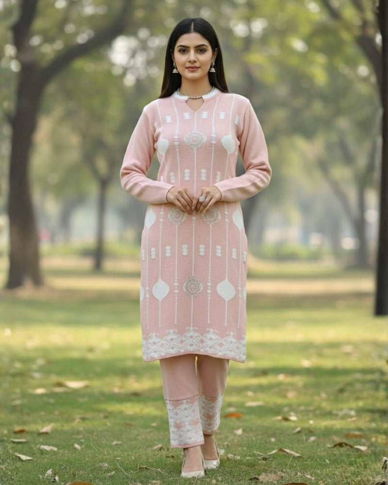 महिलाओं के लिए KRITI ऊनी 3 पीस कुर्ती सेट हल्के गुलाबी रंग