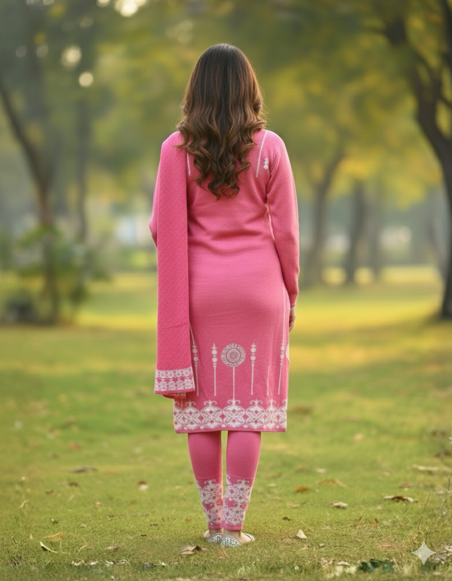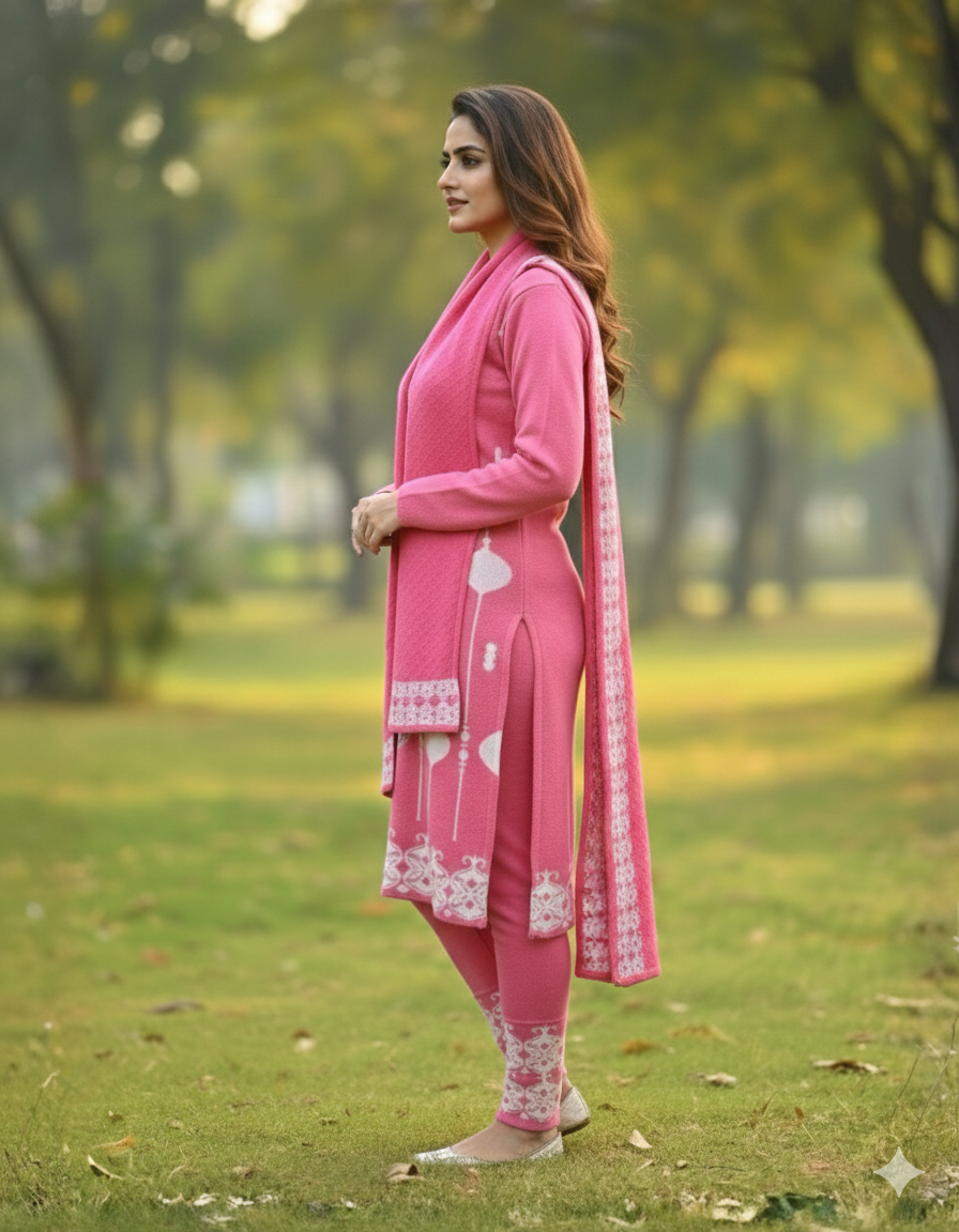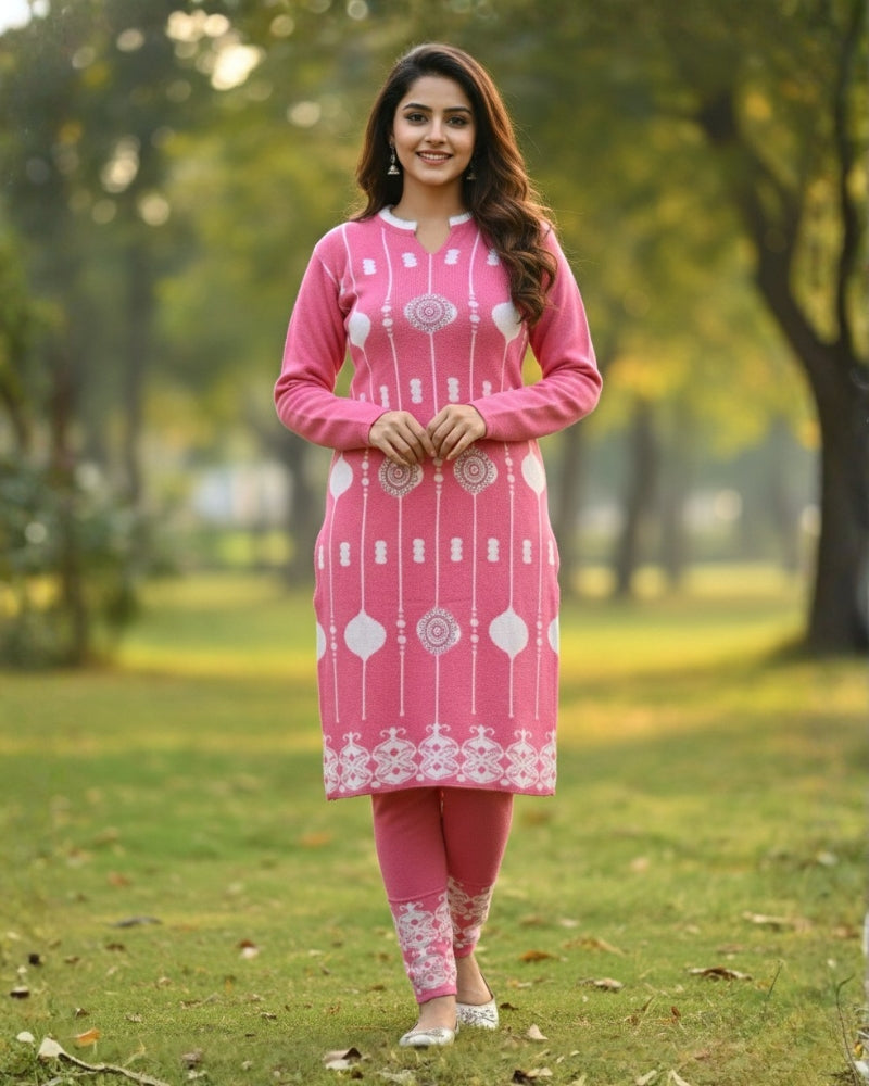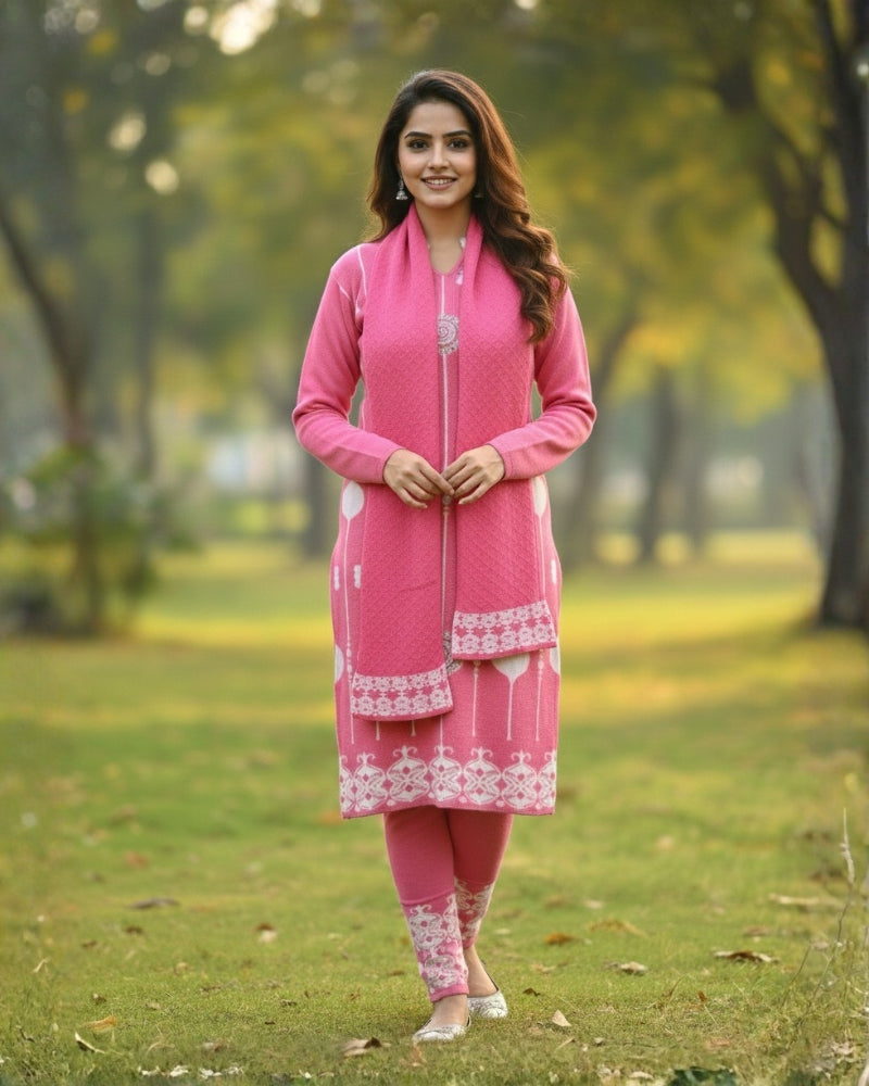 महिलाओं के लिए KRITI ऊनी 3 पीस कुर्ती सेट हल्के गुलाबी रंग