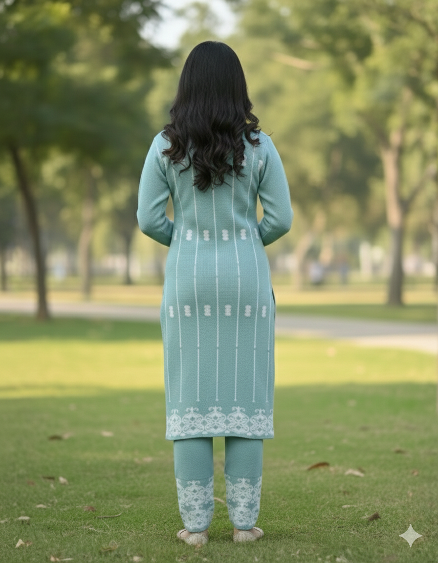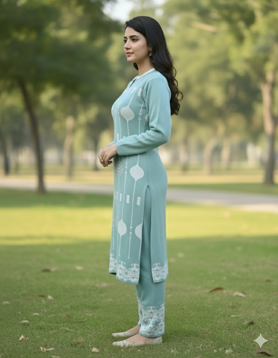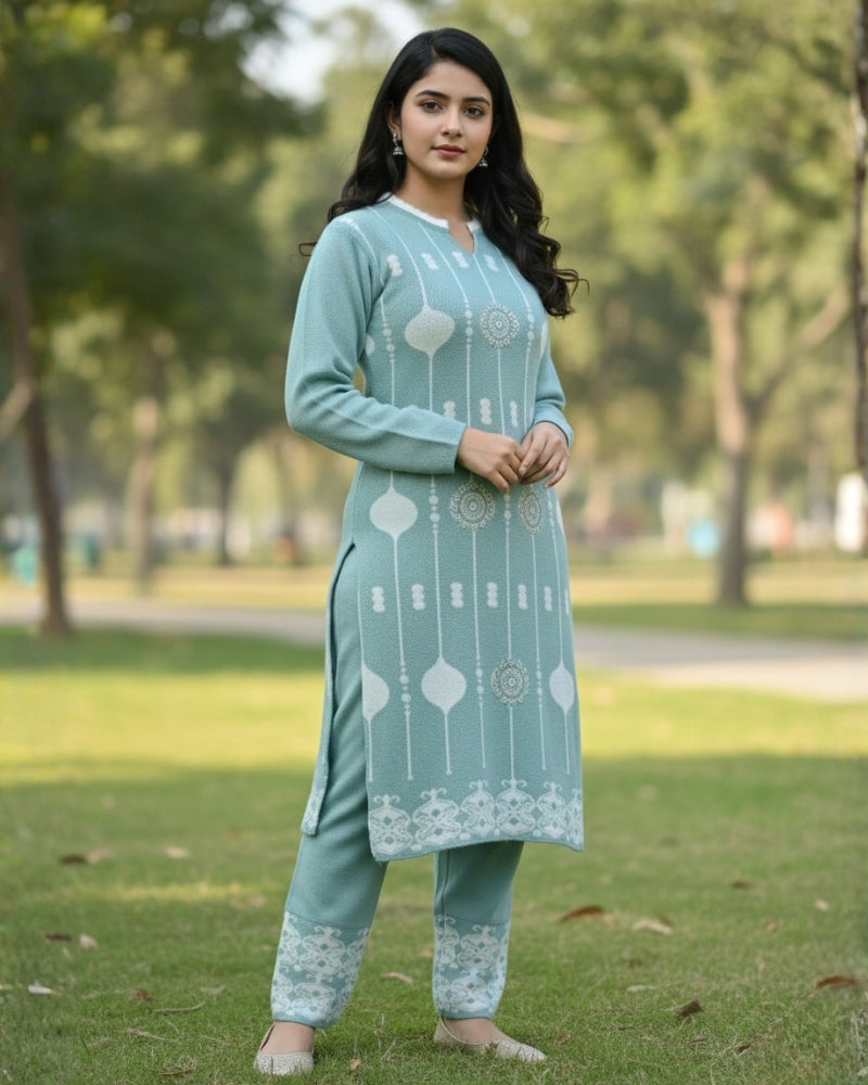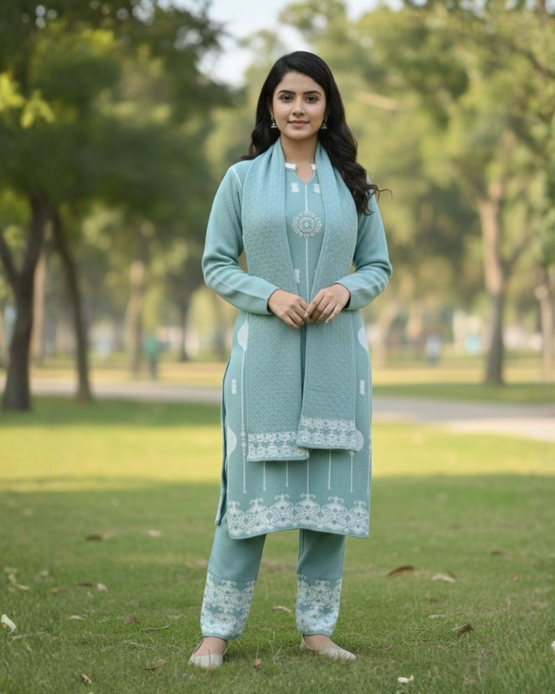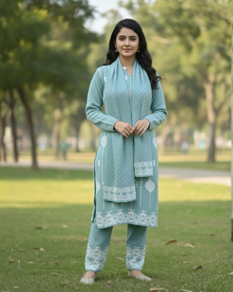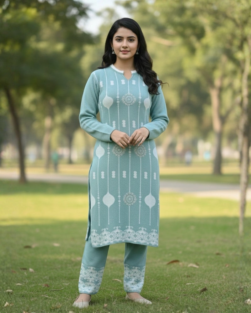 हमारे शानदार 3-पीस कुर्ती सेट (टॉप, बॉटम और जैकेट) के साथ एक खूबसूरत रंग में आरामदायक और सुरुचिपूर्ण ढंग से बाहर निकलें। यह पहनावा एक मुलायम, सर्दियों के लिए उपयुक्त बुनाई से कुशलता से तैयार किया गया है - एक प्रीमियम "हेयर फ़ैब्रिक" जो स्टाइल से समझौता किए बिना एक आलीशान एहसास और आरामदायक गर्माहट प्रदान करता है। ठंडे मौसम में बदलाव के लिए या एक स्टाइलिश, आरामदायक एथनिक लुक के लिए बिल्कुल सही।