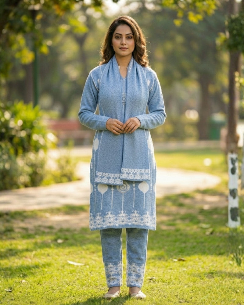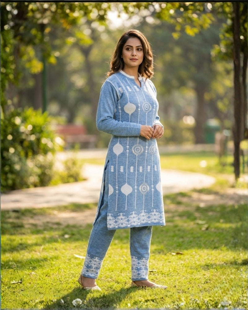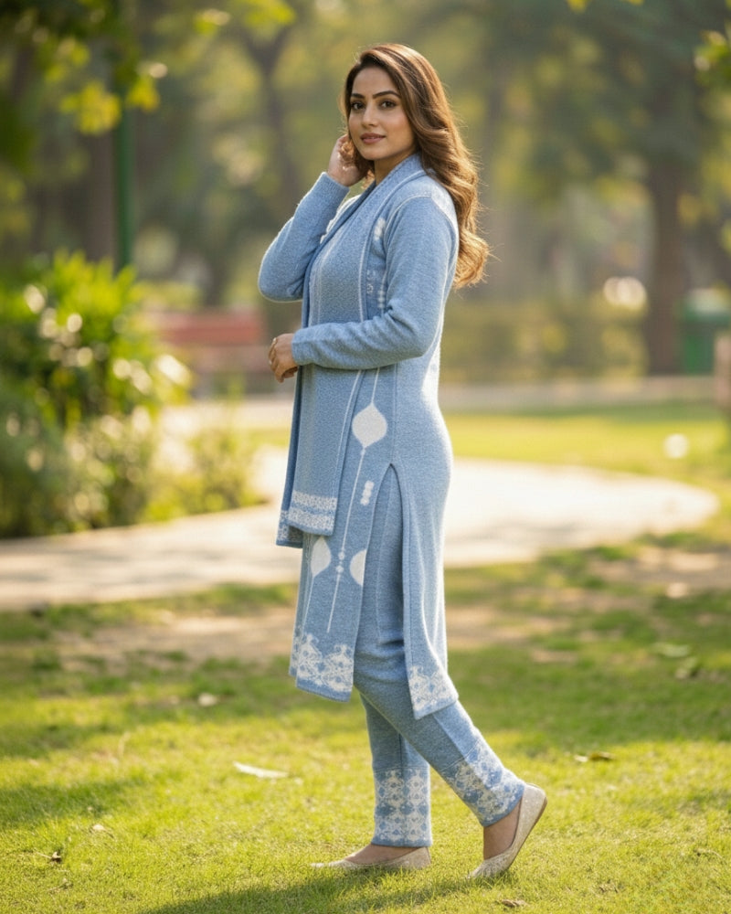 हमारे शानदार 3-पीस कुर्ती सेट (टॉप, बॉटम और जैकेट) के साथ एक खूबसूरत रंग में आरामदायक और सुरुचिपूर्ण ढंग से बाहर निकलें। यह पहनावा एक मुलायम, सर्दियों के लिए उपयुक्त बुनाई से कुशलता से तैयार किया गया है - एक प्रीमियम "हेयर फ़ैब्रिक" जो स्टाइल से समझौता किए बिना एक आलीशान एहसास और आरामदायक गर्माहट प्रदान करता है। ठंडे मौसम में बदलाव के लिए या एक स्टाइलिश, आरामदायक एथनिक लुक के लिए बिल्कुल सही।