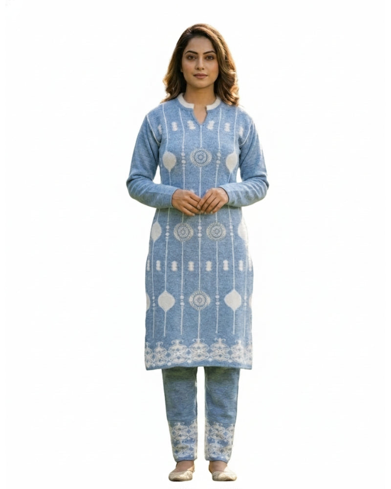 महिलाओं के लिए KRITI ऊनी 3 पीस कुर्ती सेट हल्के गुलाबी रंग