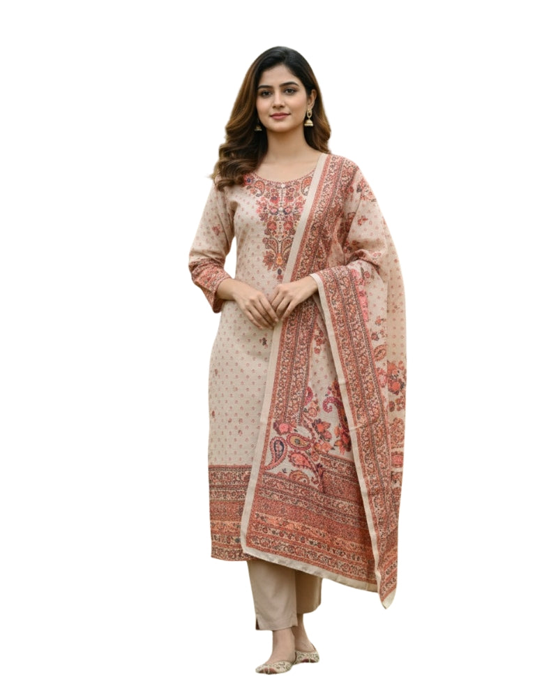 KRITI ऊनी डिजिटल प्रिंट सिले सूट पीच रंग महिलाओं के लिए सर्दियों के लिए