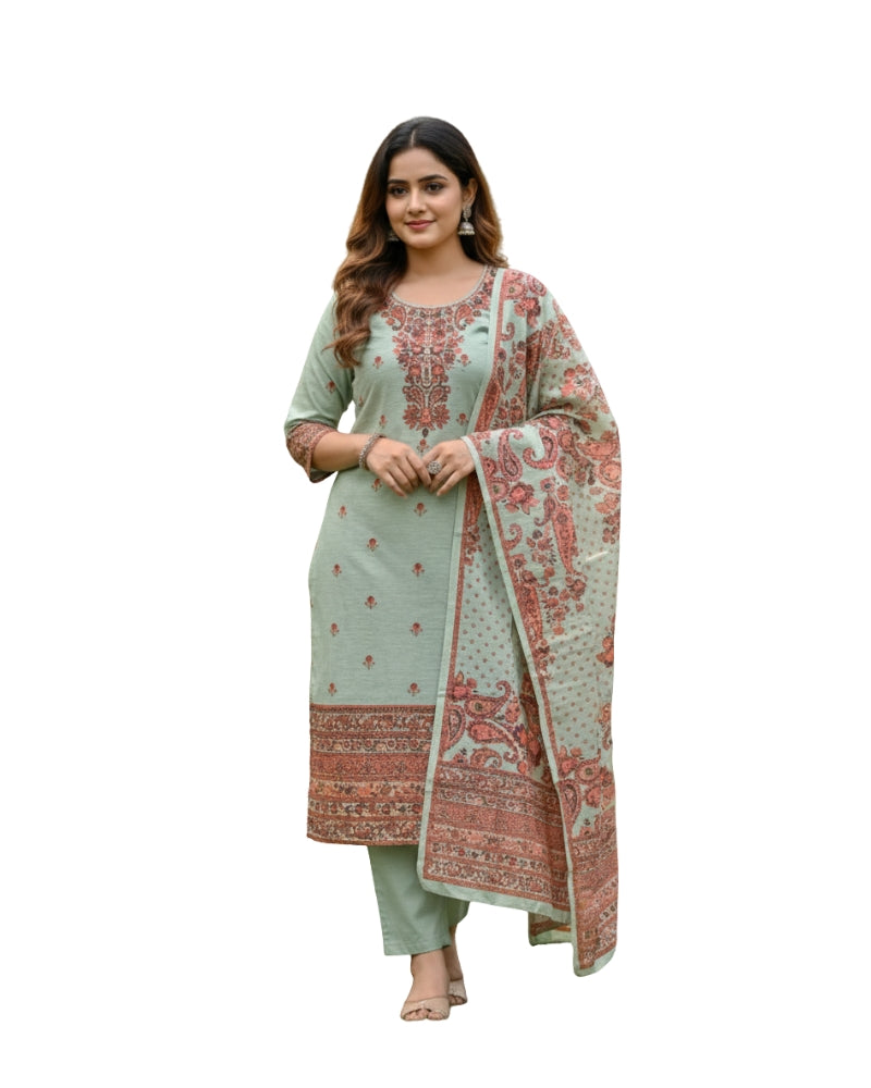 KRITI ऊनी डिजिटल प्रिंट सिले सूट पिस्ता रंग महिलाओं के लिए सर्दियों के लिए