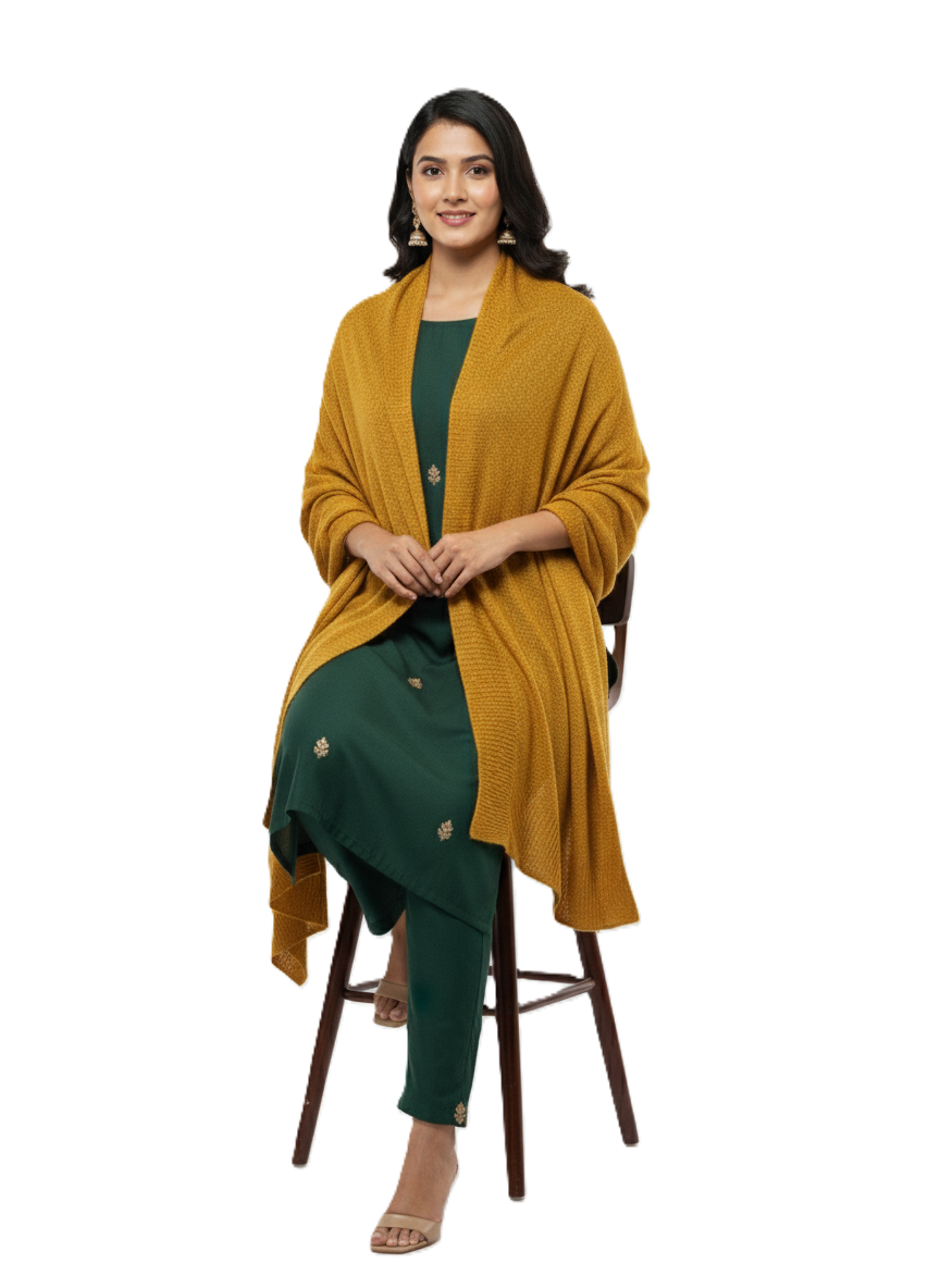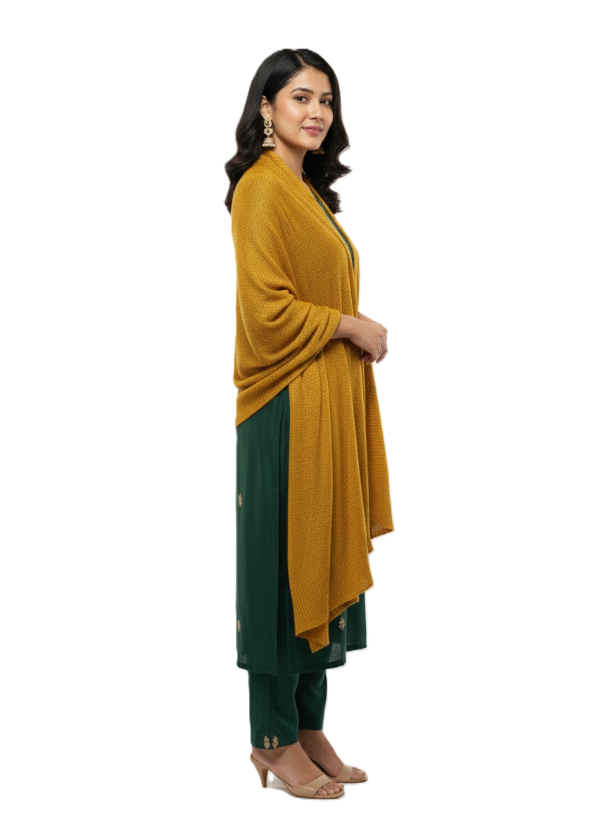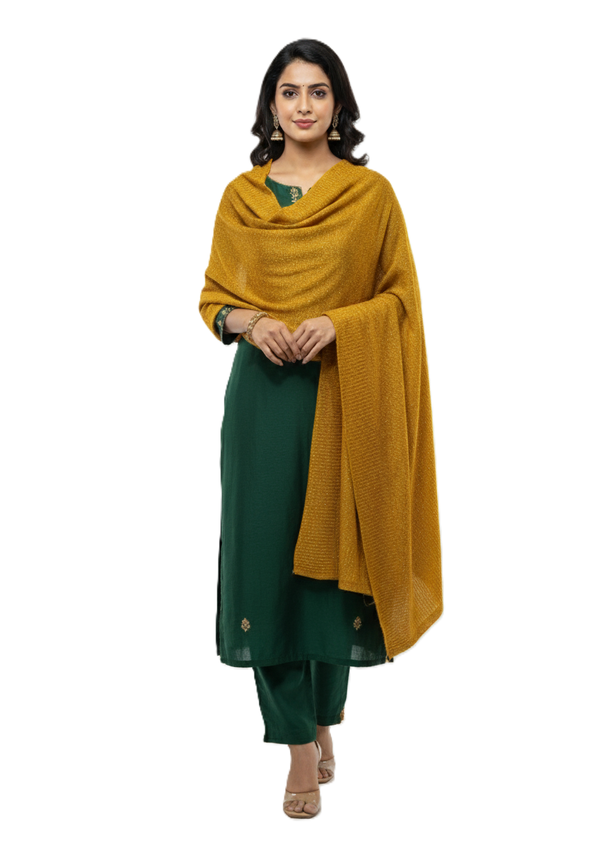 महिलाओं के लिए कृति ऊनी सरसों रंग का ज़री स्टोल विंटरवियर