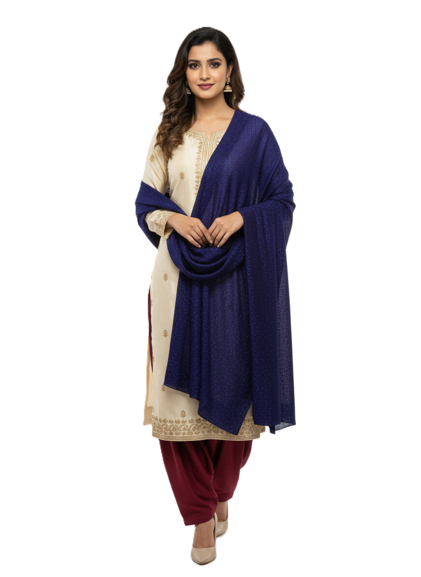 - बहुमुखी स्टाइलिंग: सूट, कुर्ती, साड़ी या पश्चिमी पोशाक के साथ पहनने के लिए बिल्कुल उपयुक्त।