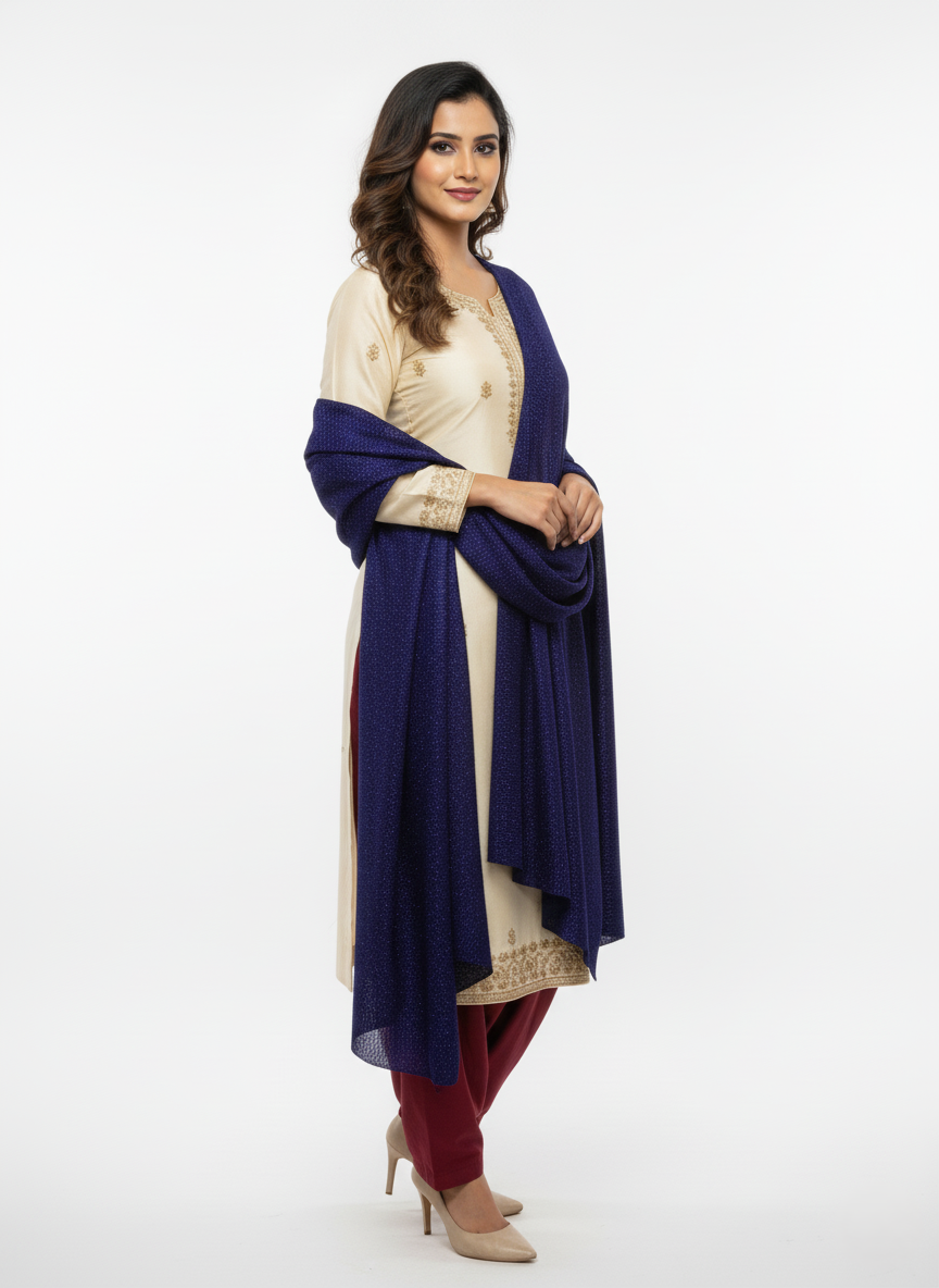 महिलाओं के लिए कृति ऊनी नेवी रंग ज़री स्टोल विंटरवियर