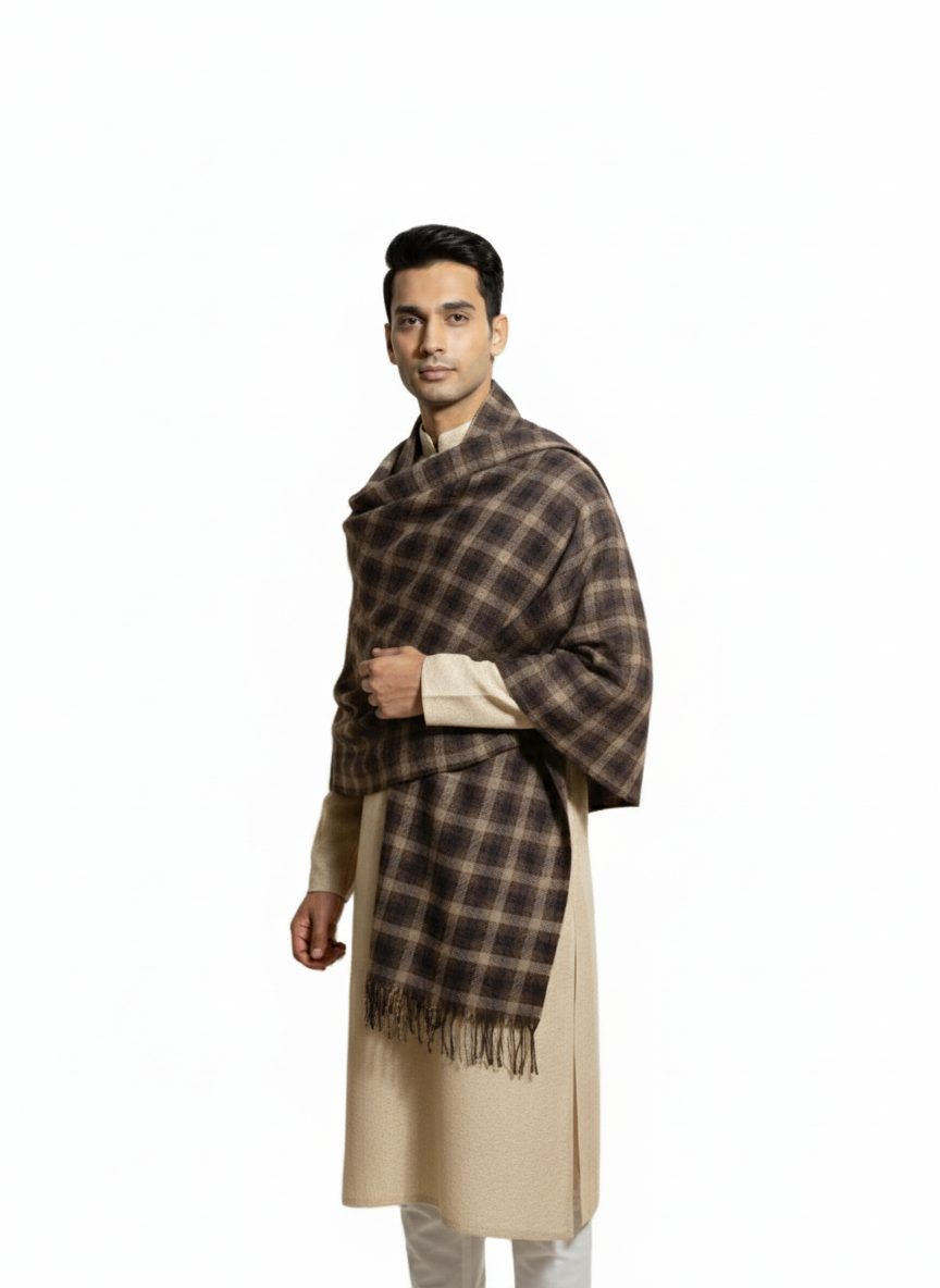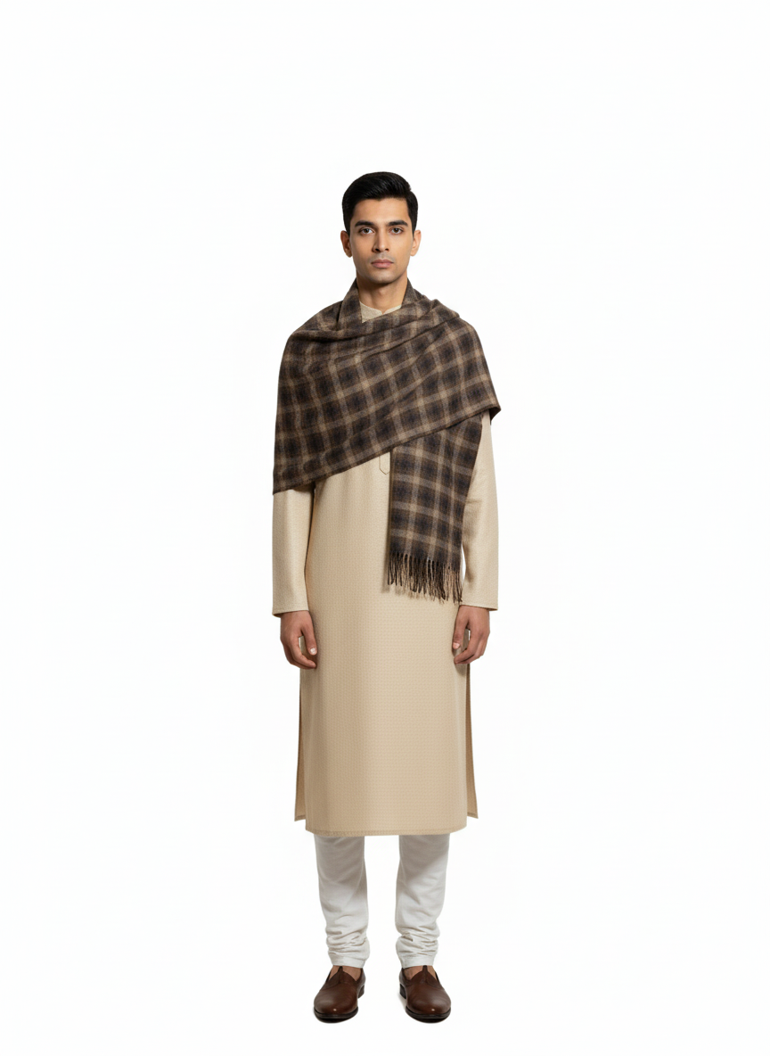 Add a touch of tradition and warmth to your winter style with this Brown Check Woolen Lohi, designed for comfort, elegance, and versatility. Crafted from premium wool blend fabric, this lohi offers rich texture, superior insulation, and a refined check pattern — perfect for festive occasions, religious gatherings, or everyday ethnic wear.