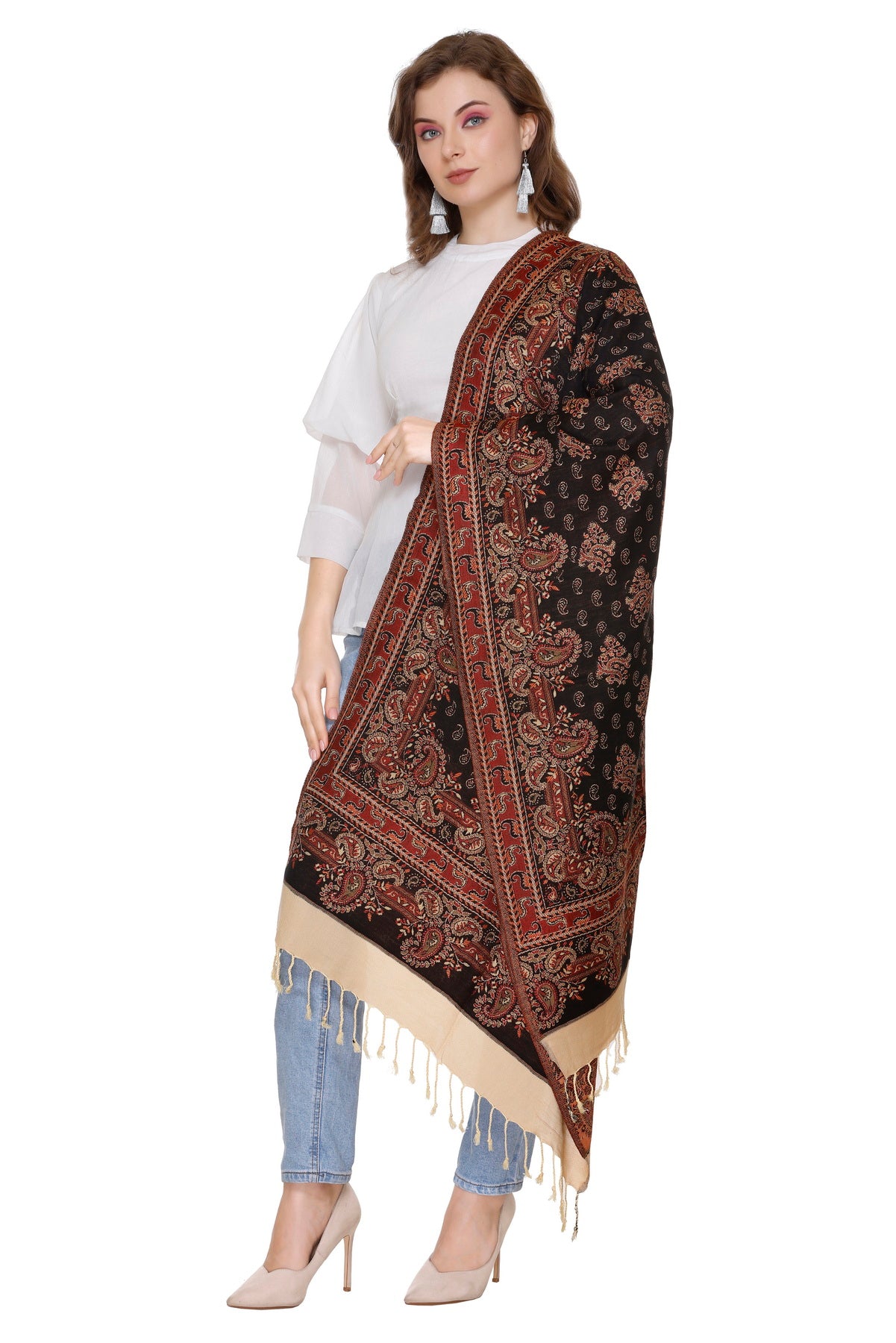 लड़कियों के लिए KRITI कश्मीरी डिज़ाइन का ऊनी काले रंग का स्टोल