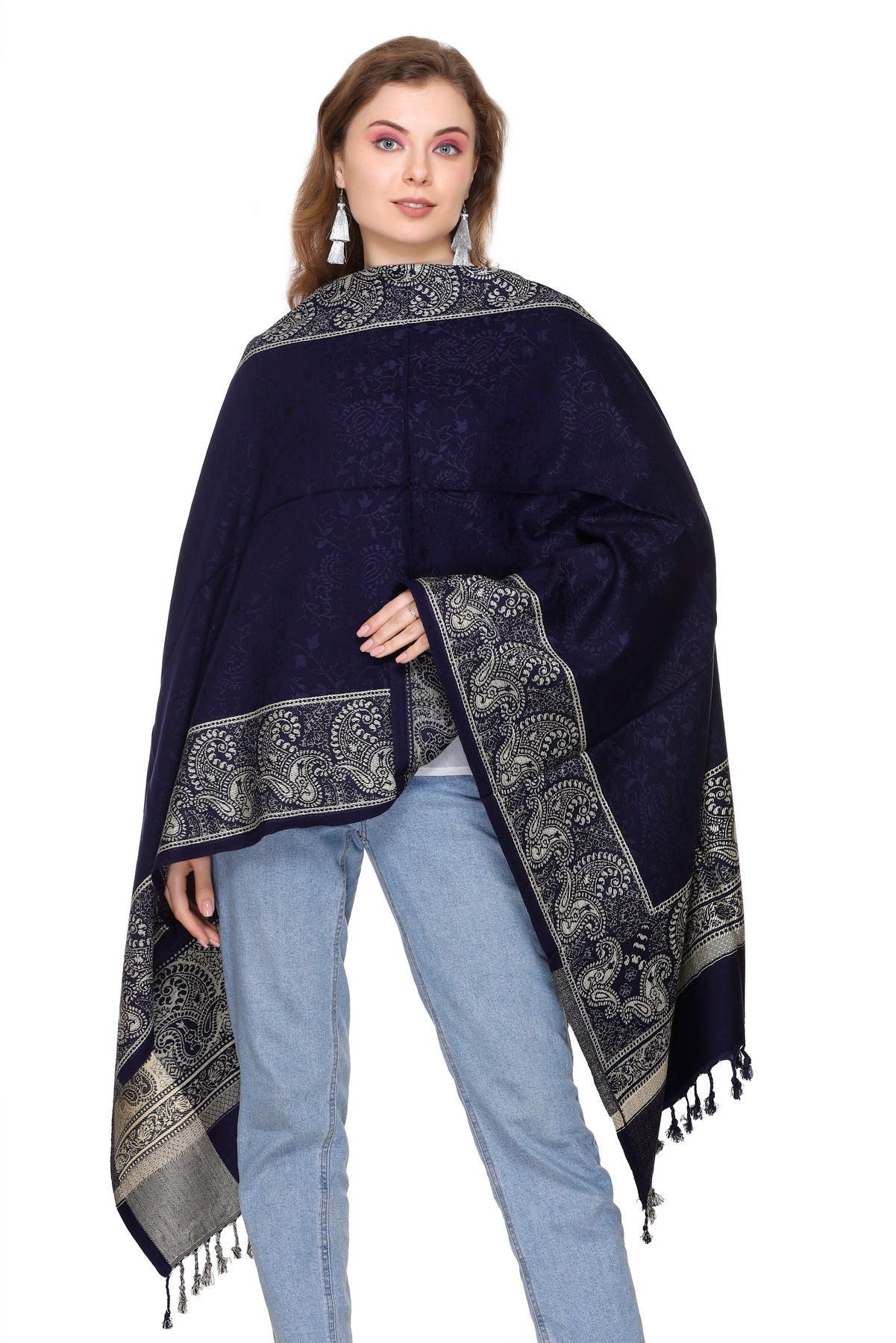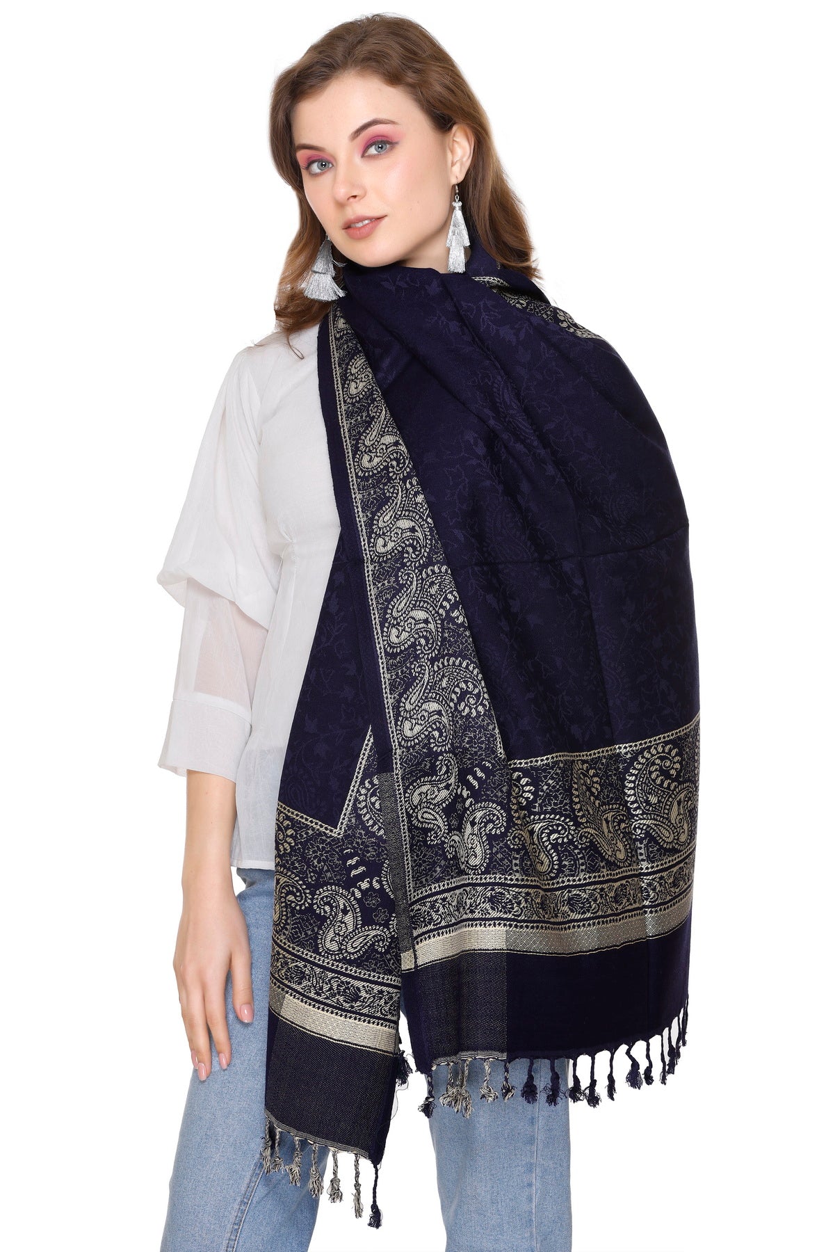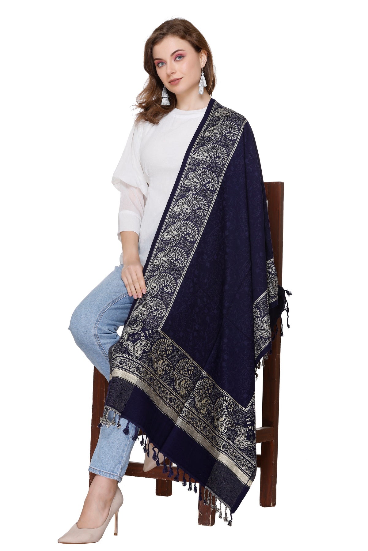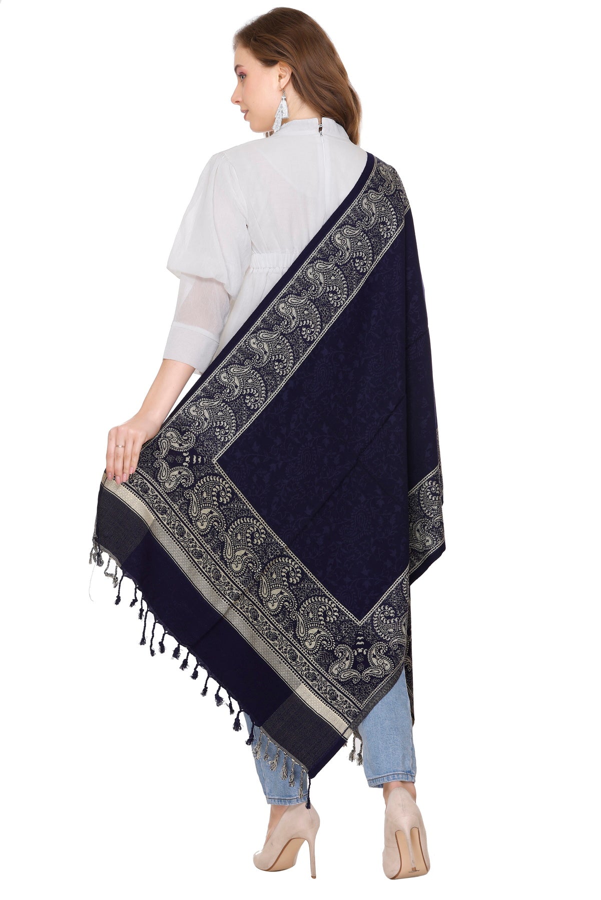 लड़कियों के लिए कृति पैस्ले डिज़ाइन ऊनी नेवी कलर स्टोल