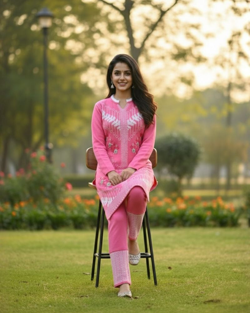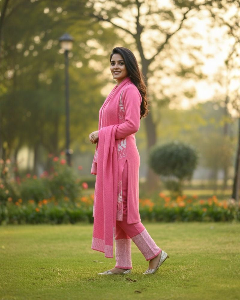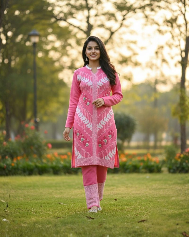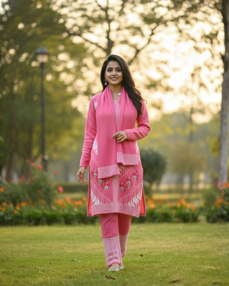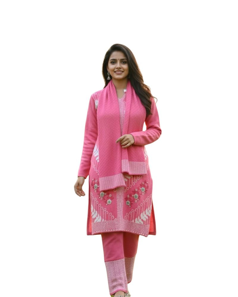 प्रीमियम 3-पीस ऊनी विंटर कुर्ती सेट | बॉटम और स्टोल के साथ बुना हुआ कुर्ता | M-XXL साइज़