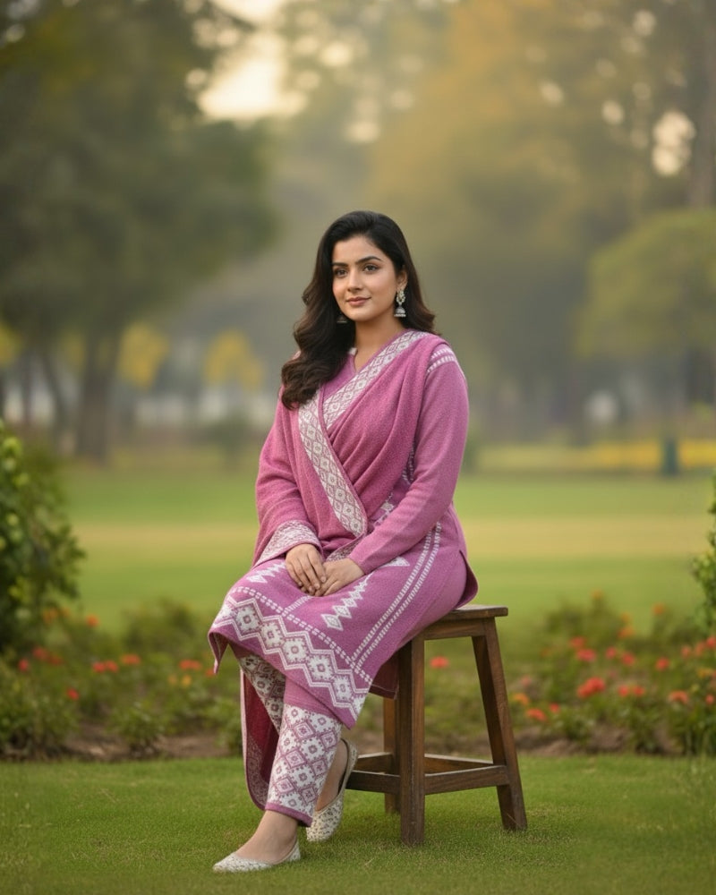 इस सर्दी में हमारे शानदार 3-पीस ऊनी कुर्ती सेट के साथ स्टाइलिश अंदाज़ में बाहर निकलें। उच्च-गुणवत्ता वाले, आरामदायक फ़ैब्रिक से तैयार, इस कुर्ती में आकर्षक रंगों का आधार है, जो जटिल एथनिक पैटर्न और नाज़ुक फूलों से सुसज्जित है।