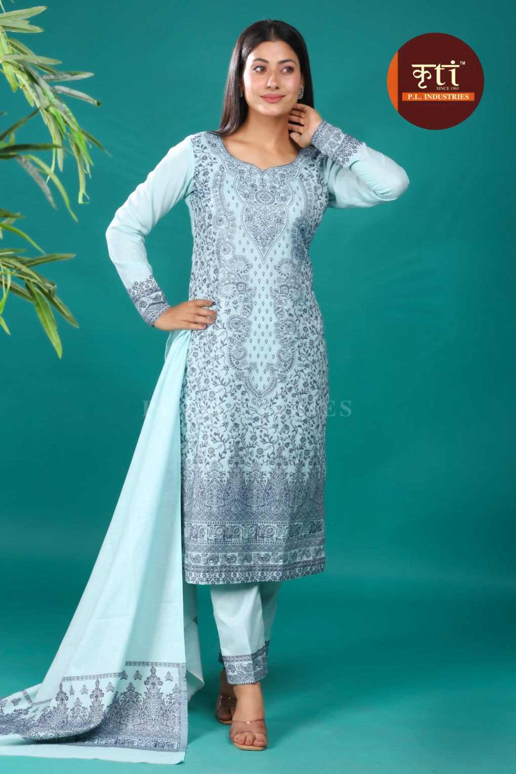 KRITI Rayon Cotton Unstitched Suit With Dupatta Light Blue Color For Women