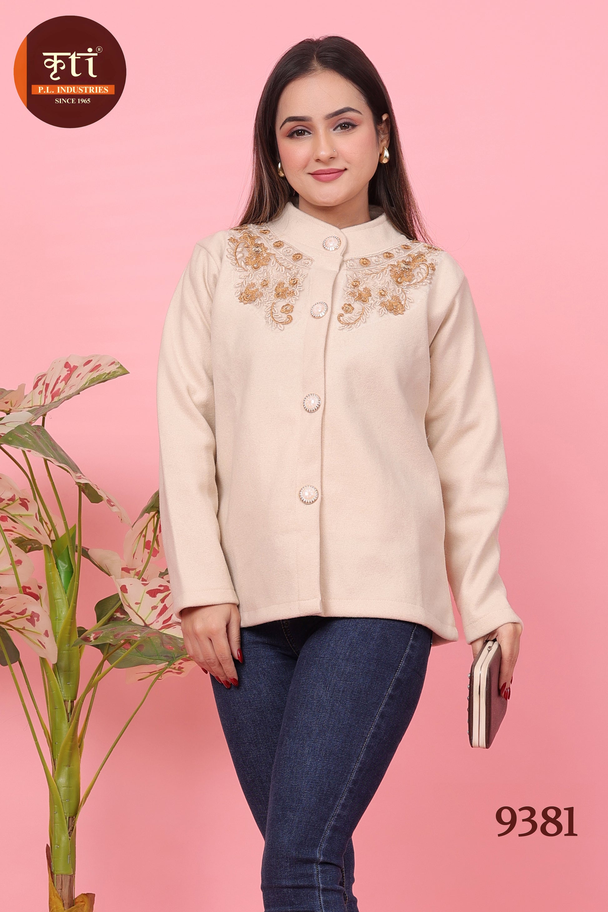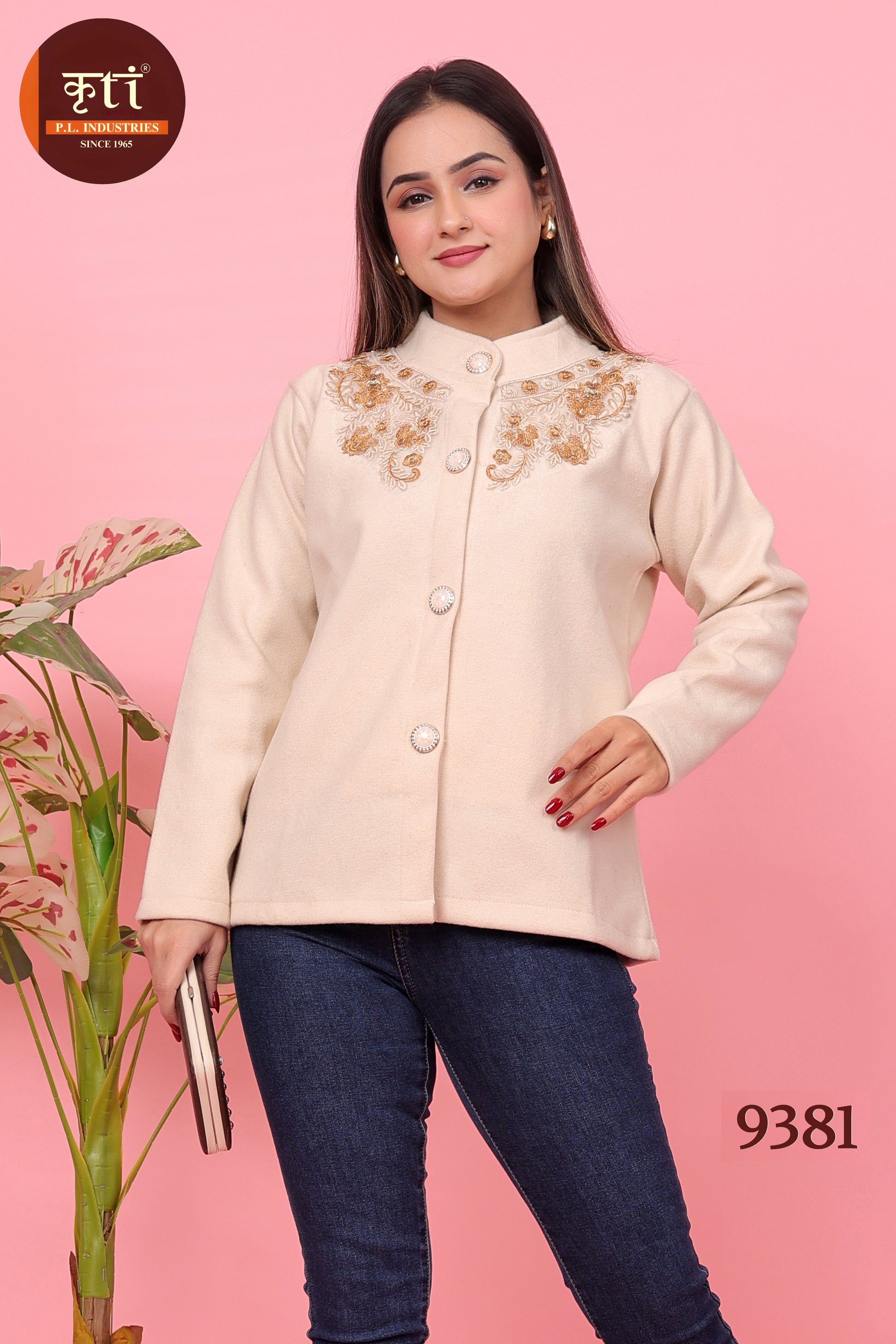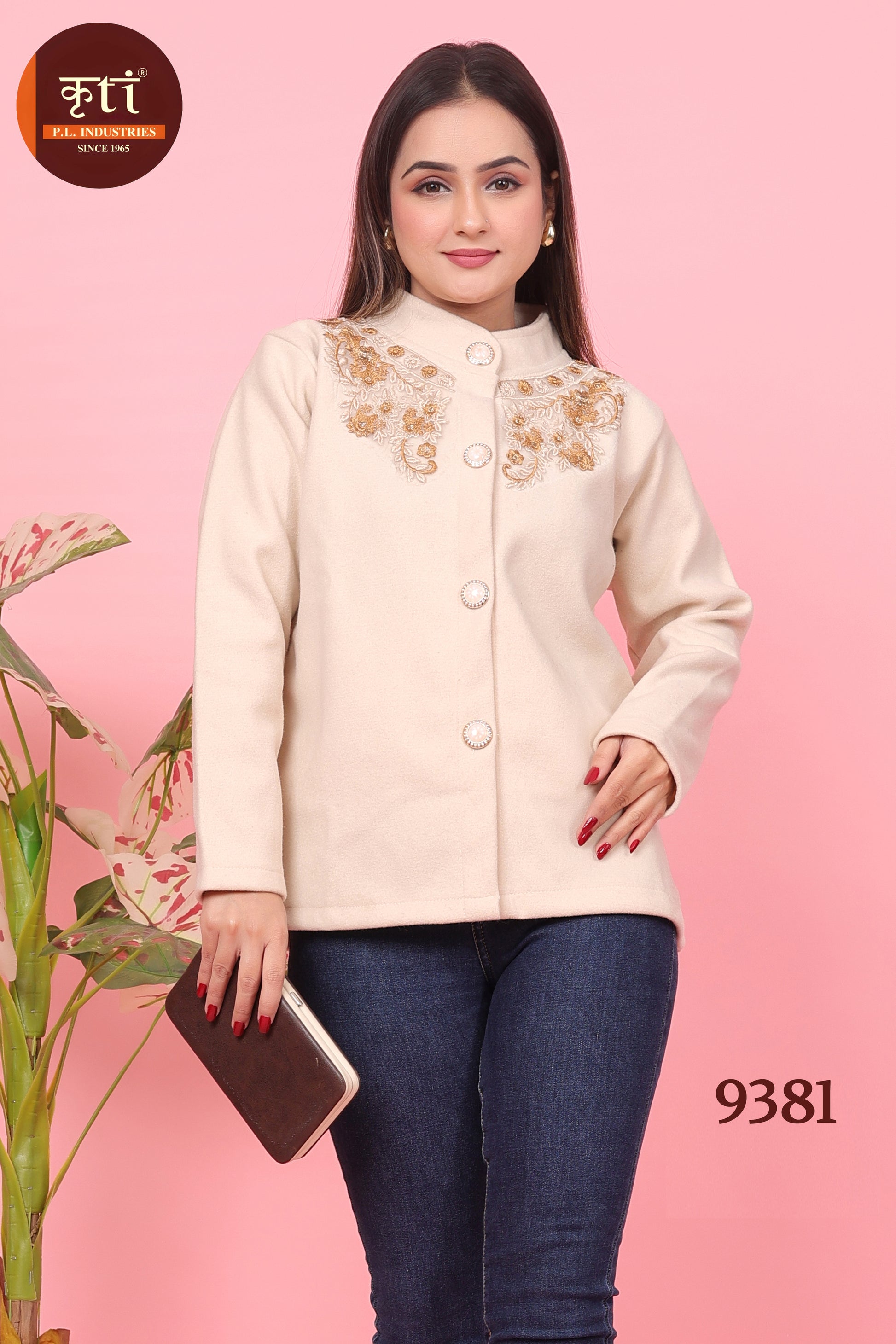 KRITI Premium Embroidery Tweed Fabric Coat Beige Color For Women