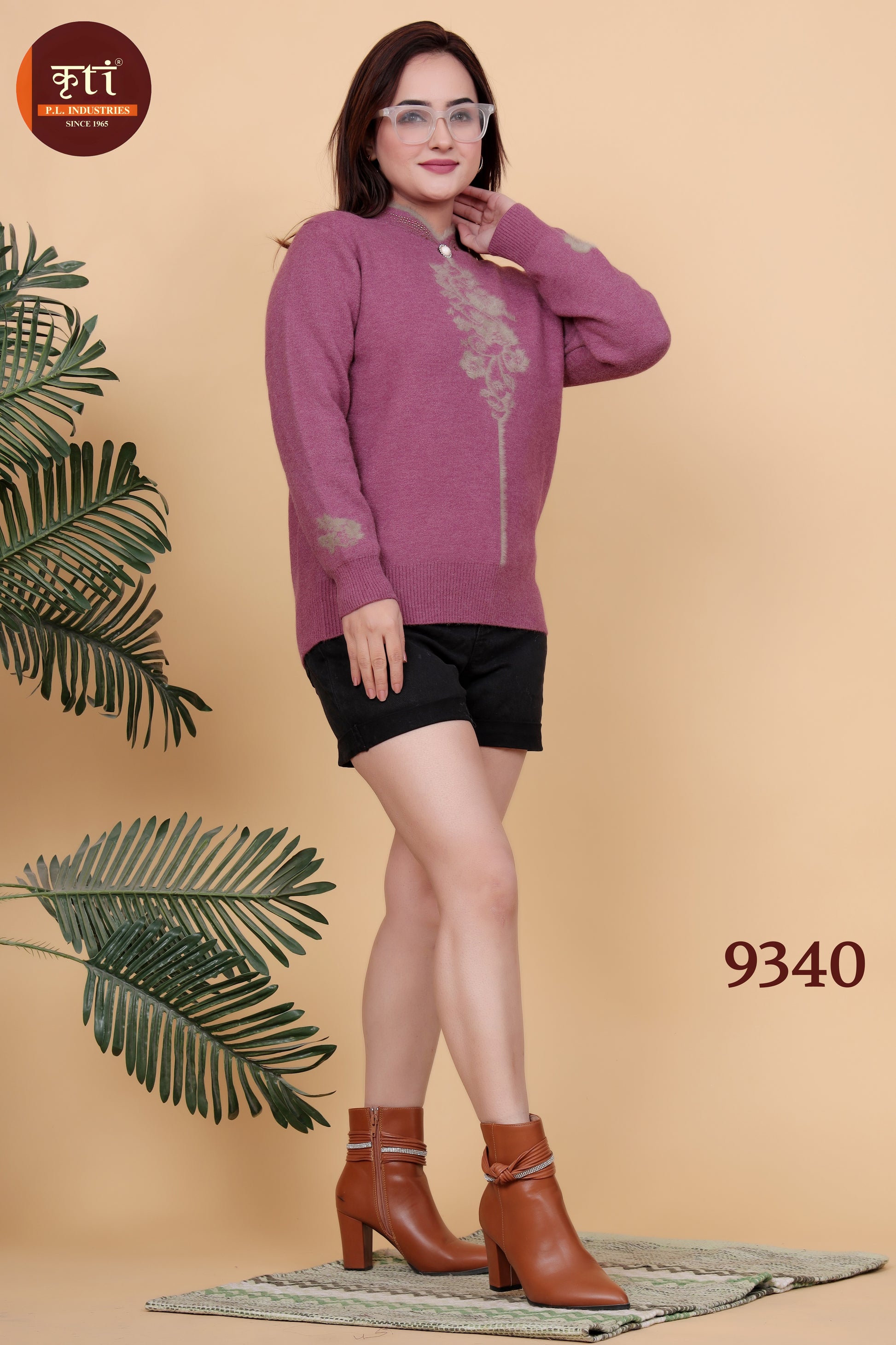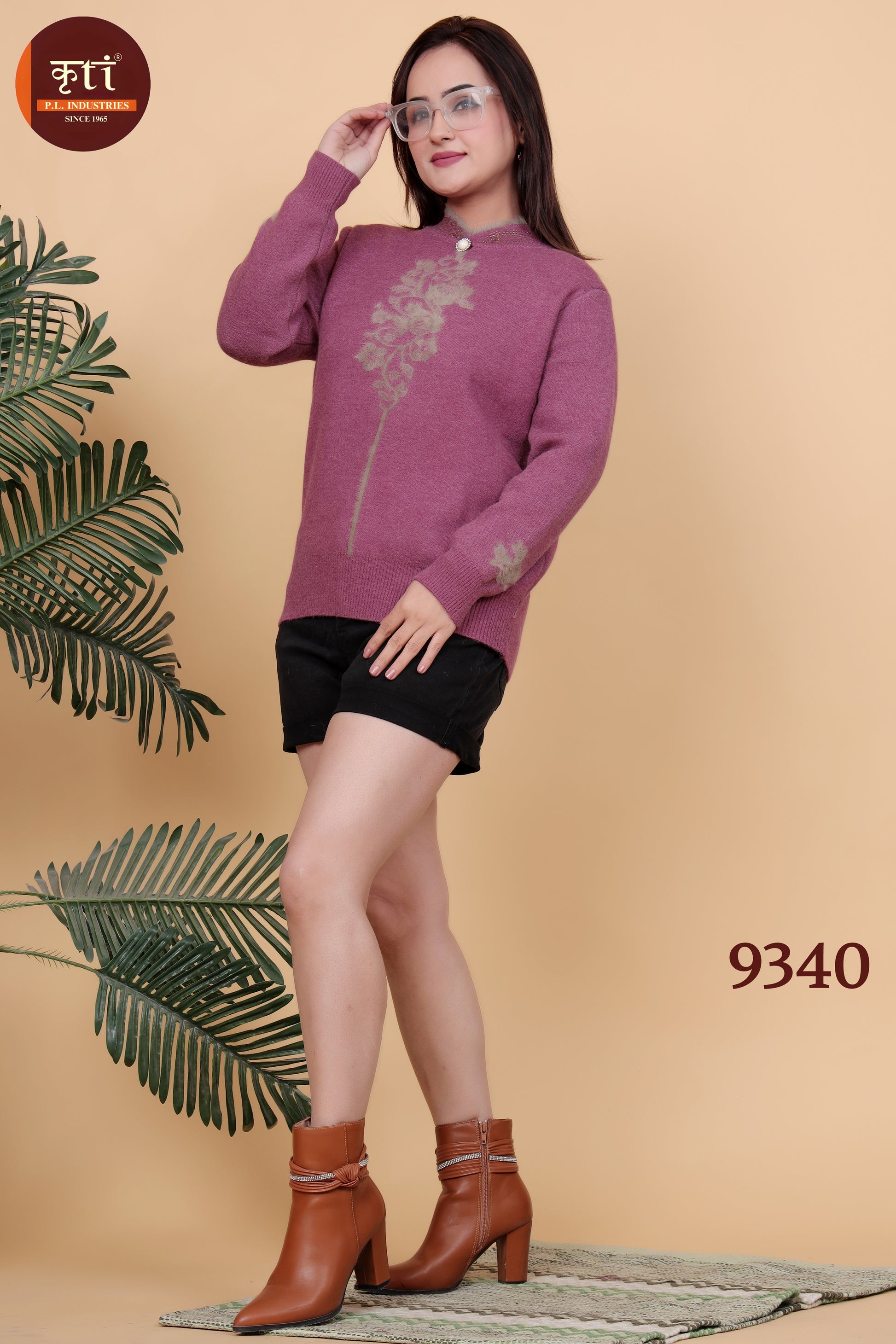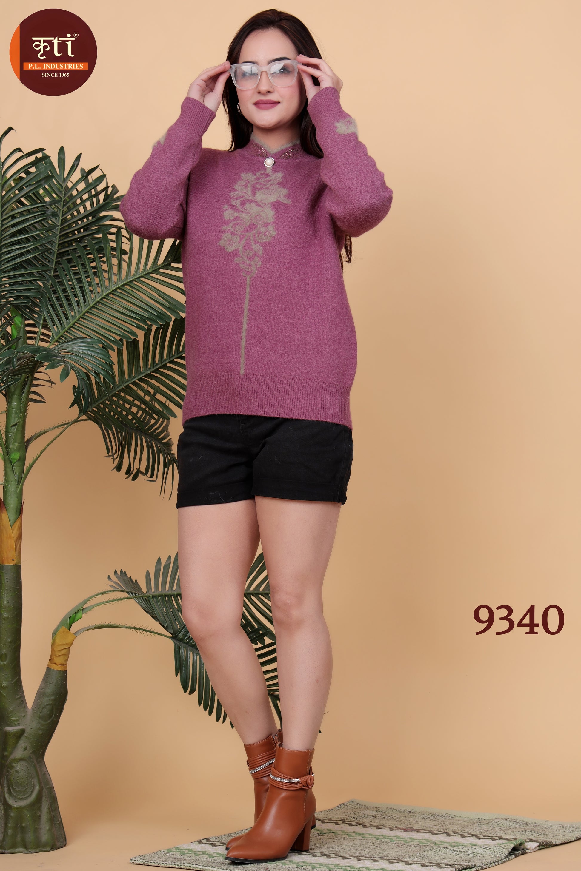 KRITI Floral Design Woollen Winter Top Pink Colour For Women