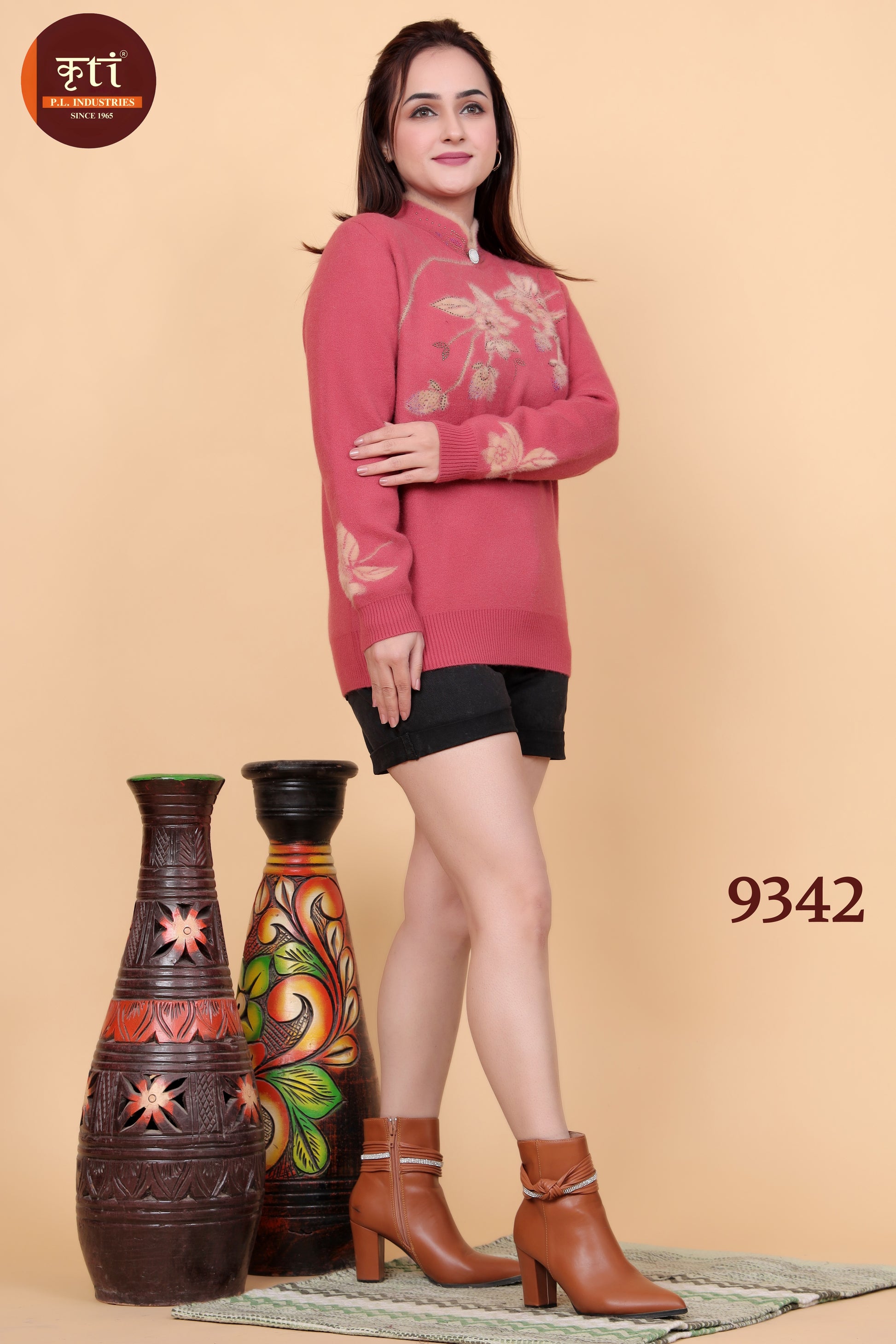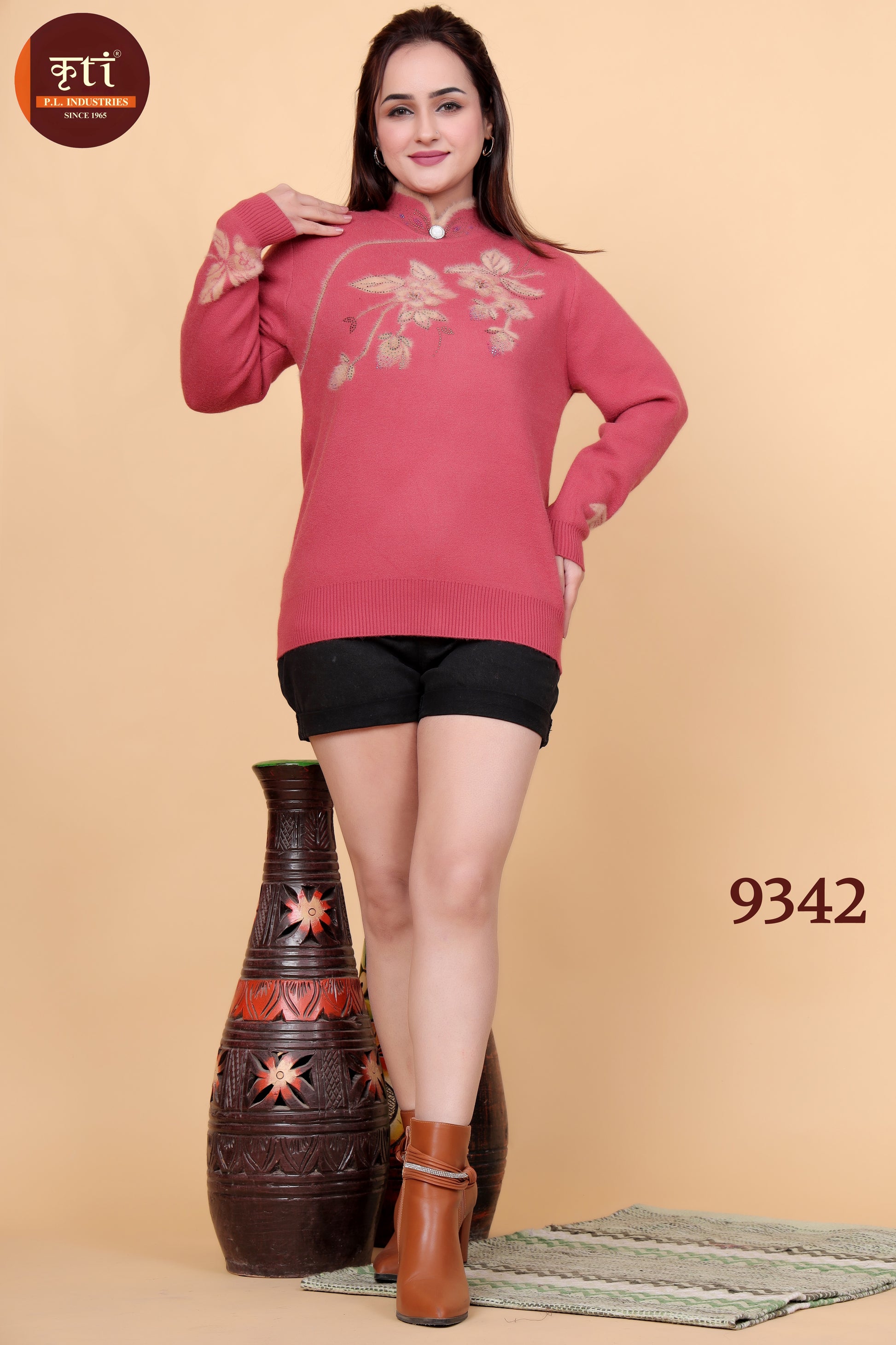 KRITI Winter Stylish Embroidery Hair Top Pink Color For Women