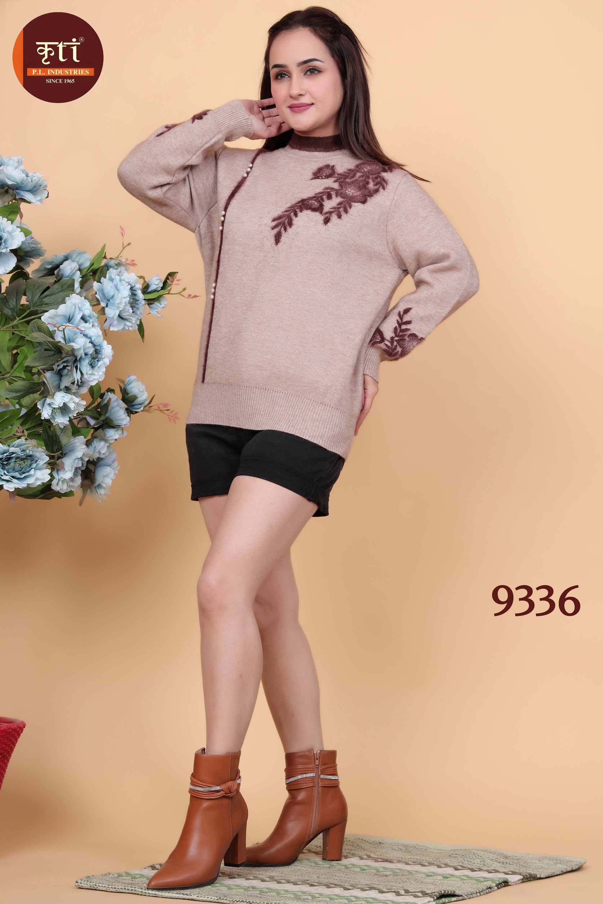 KRITI Stylish Embroidery Woollen Top Beige Color For Women
