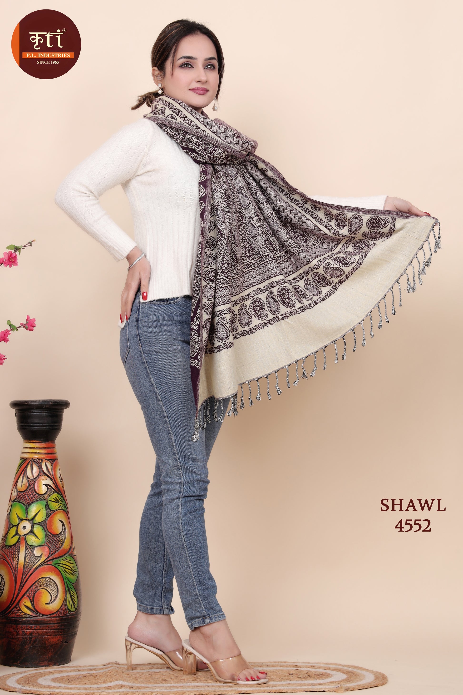 KRITI All Over Design Woollen Brown Color Shawl for Women
