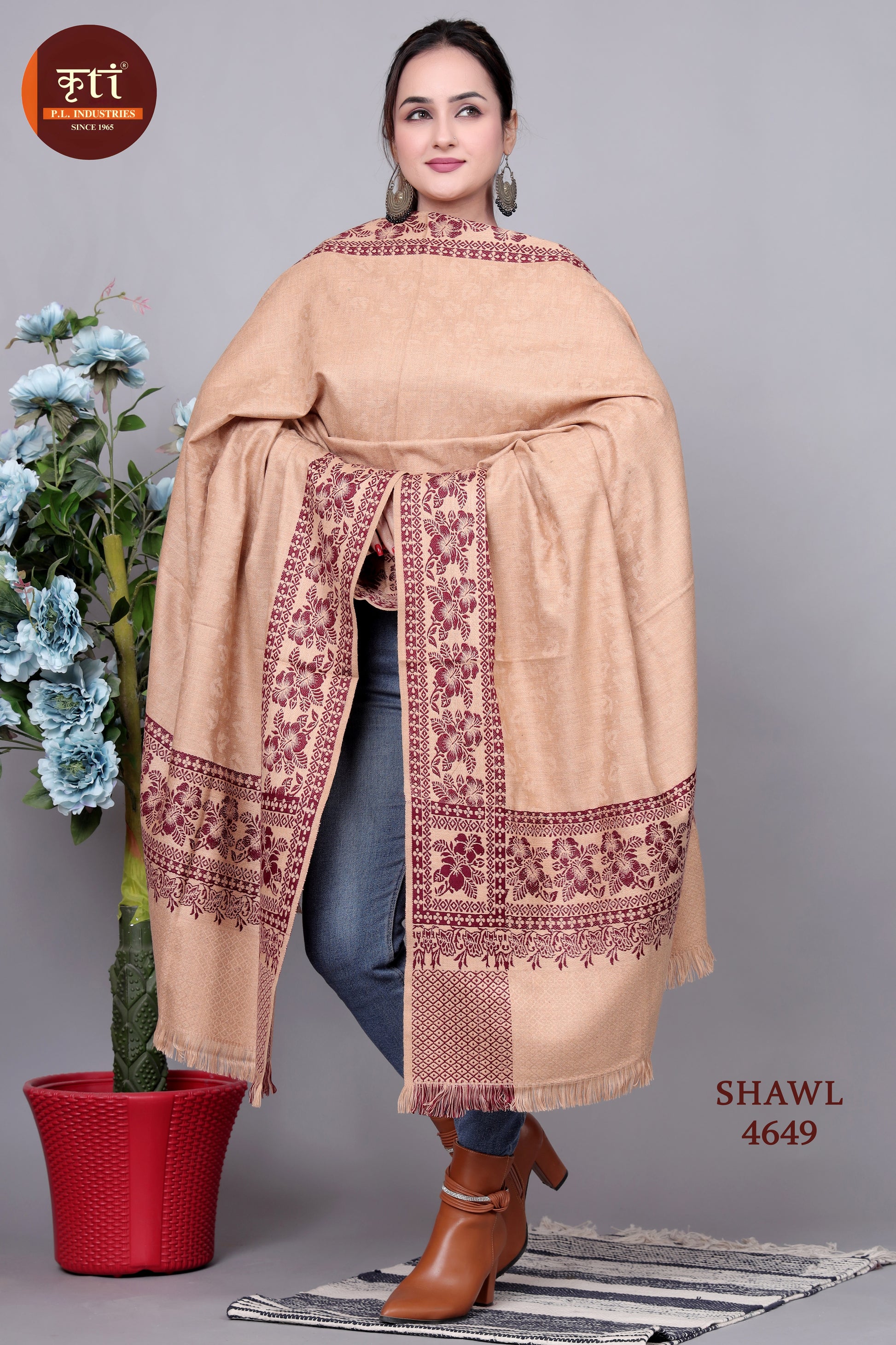 KRITI Traditional Border Woollen Beige Color Shawl For Women