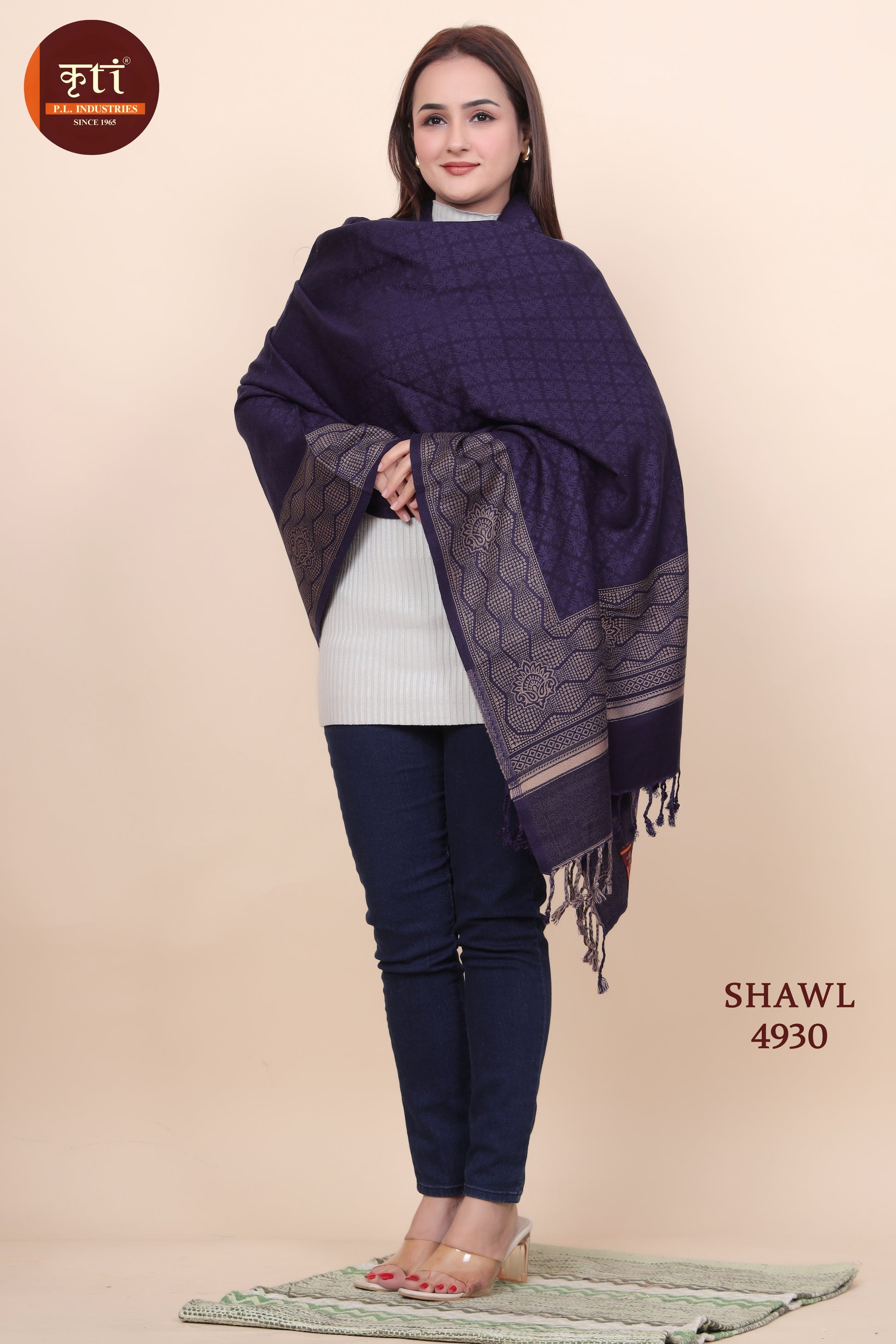 KRITI Floral Border Woollen Navy Color Shawl For Women