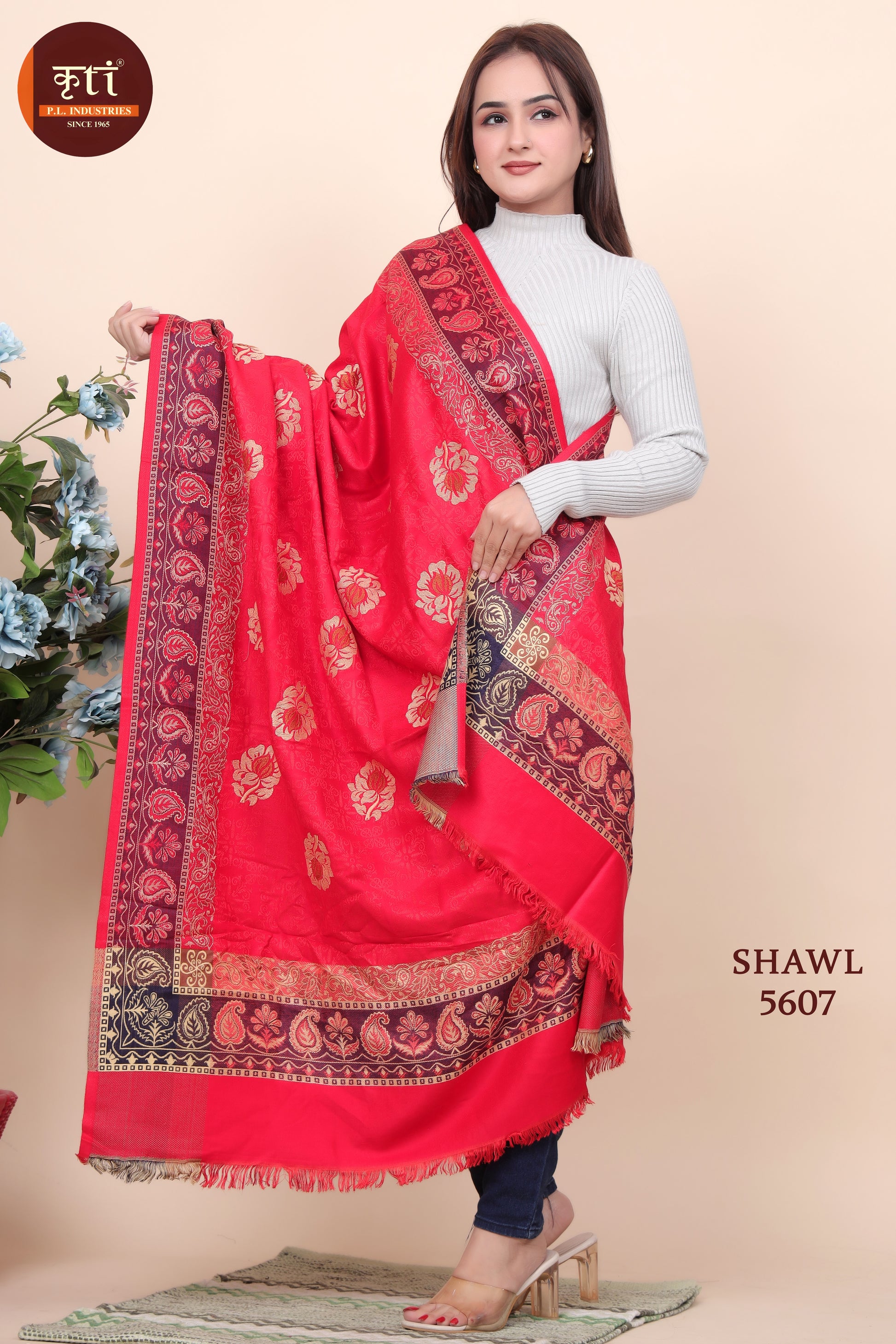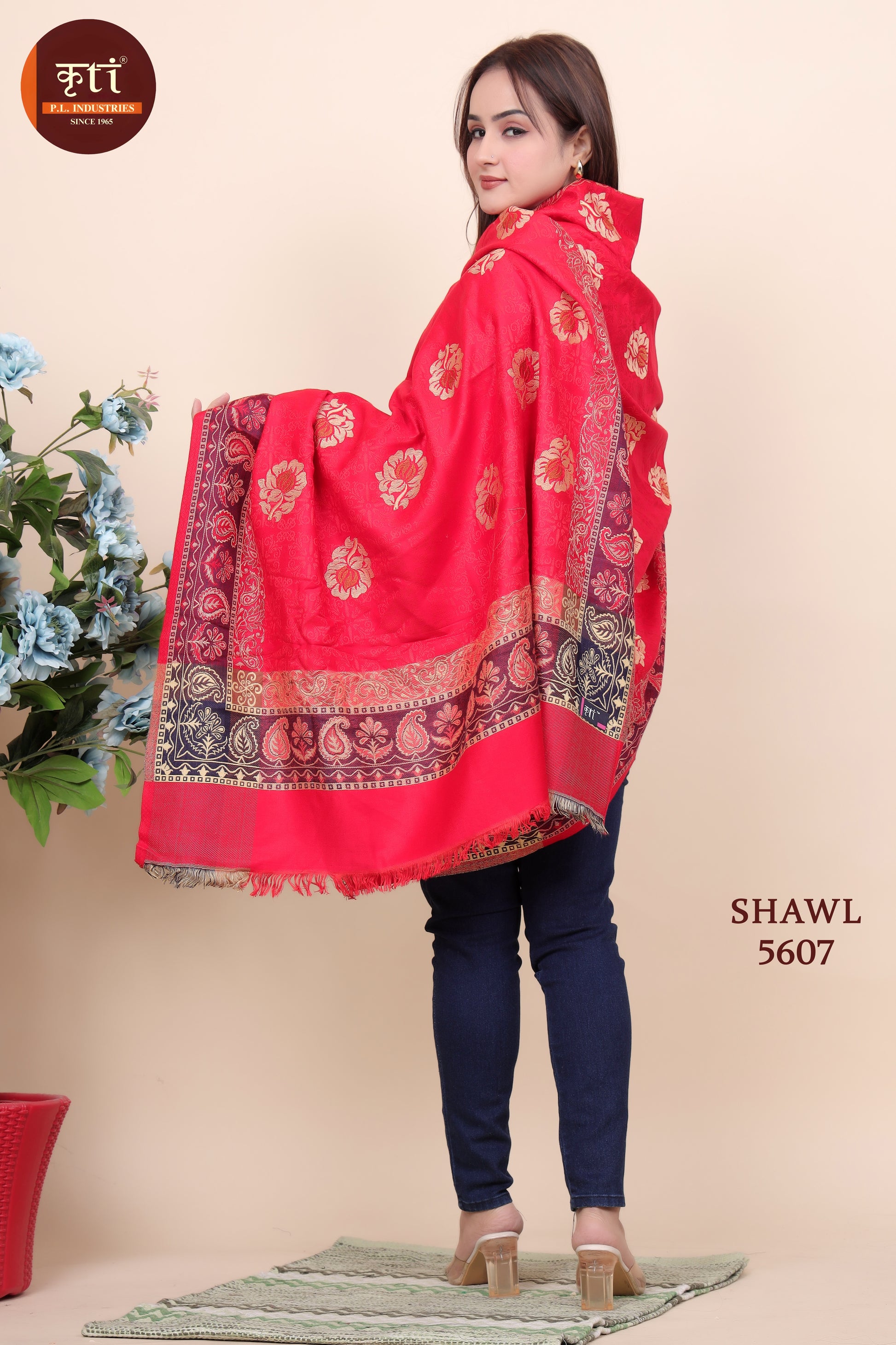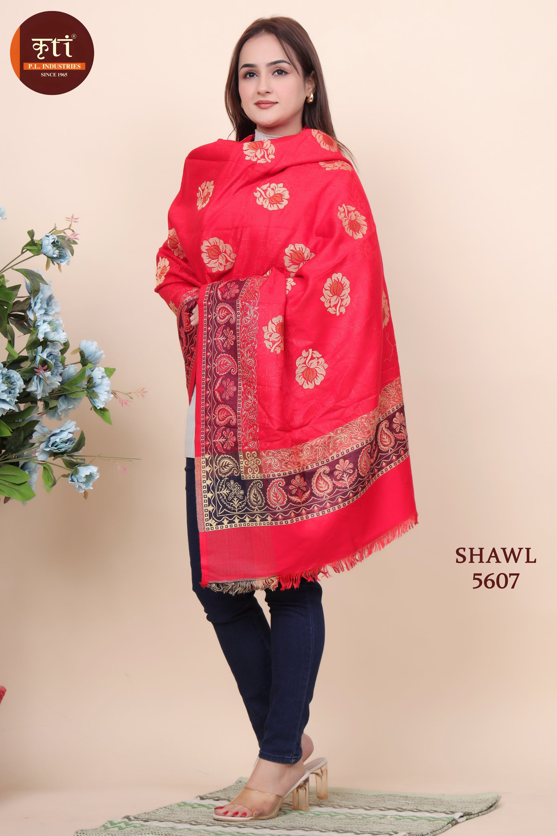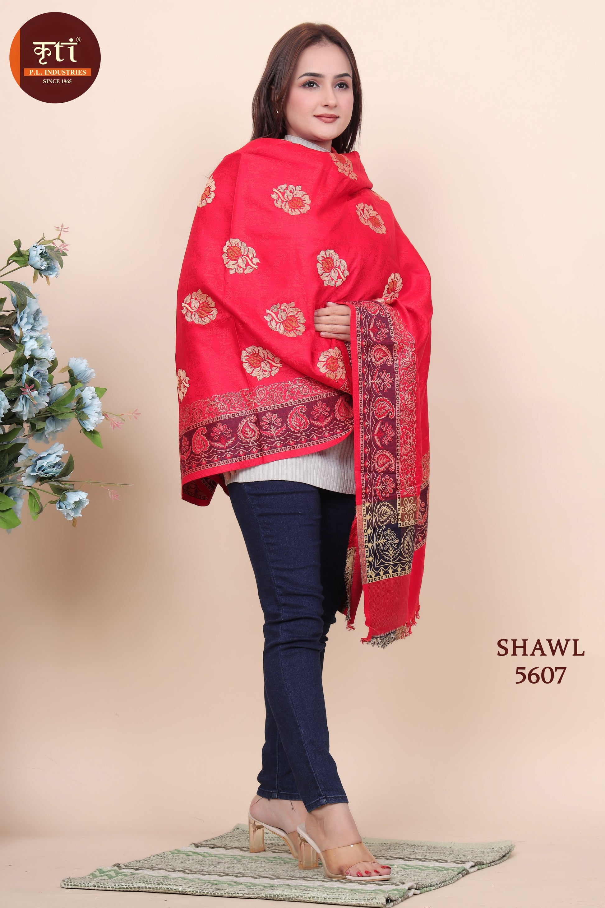 KRITI Traditional Border Design Woollen Red Color Shawl For Women