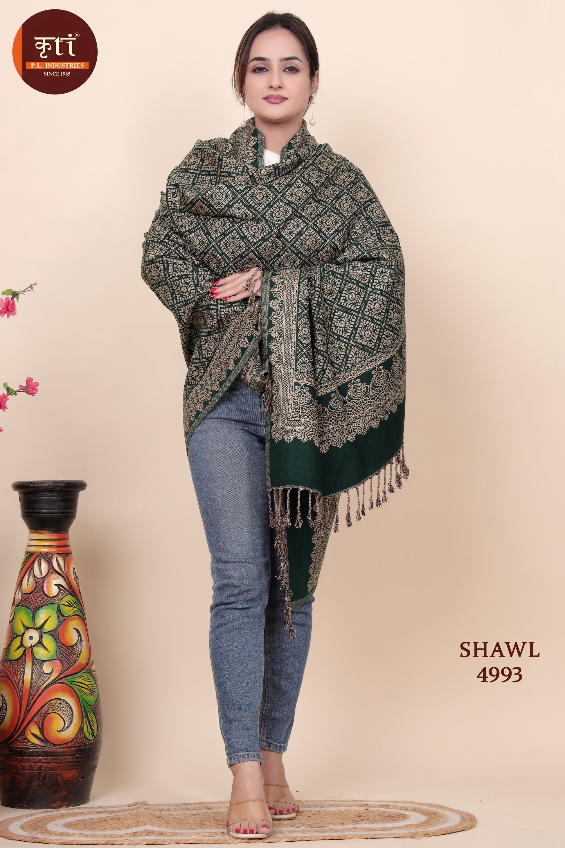 KRITI Kriti All Over Pattern Woollen Green Color Shawl for Women