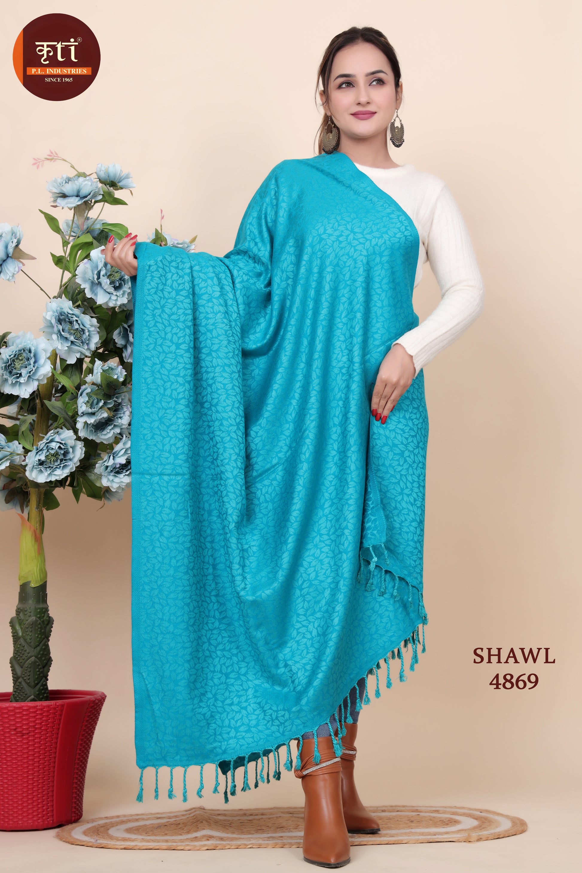 KRITI Plain Textured Woollen Blue Color Shawl for Women