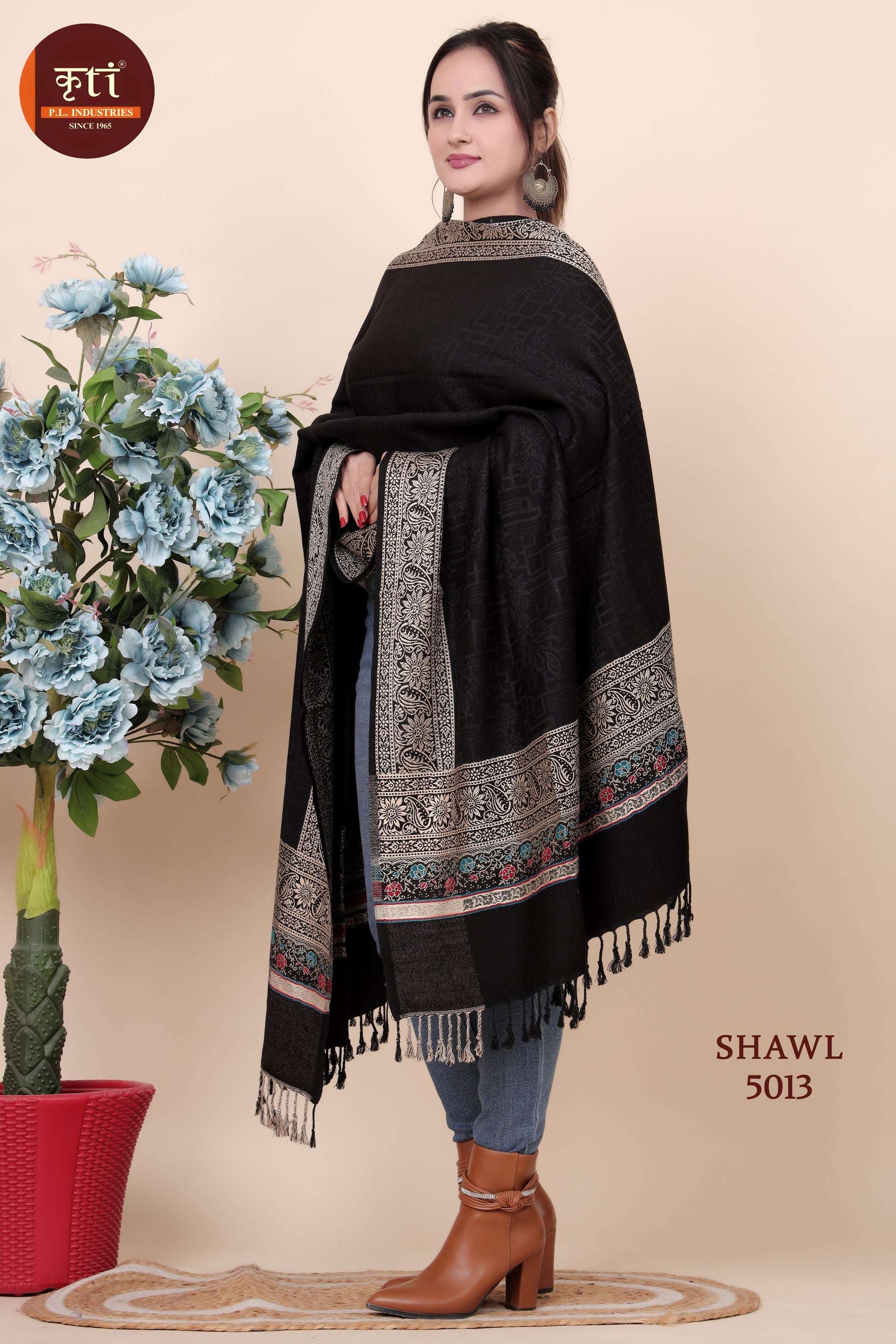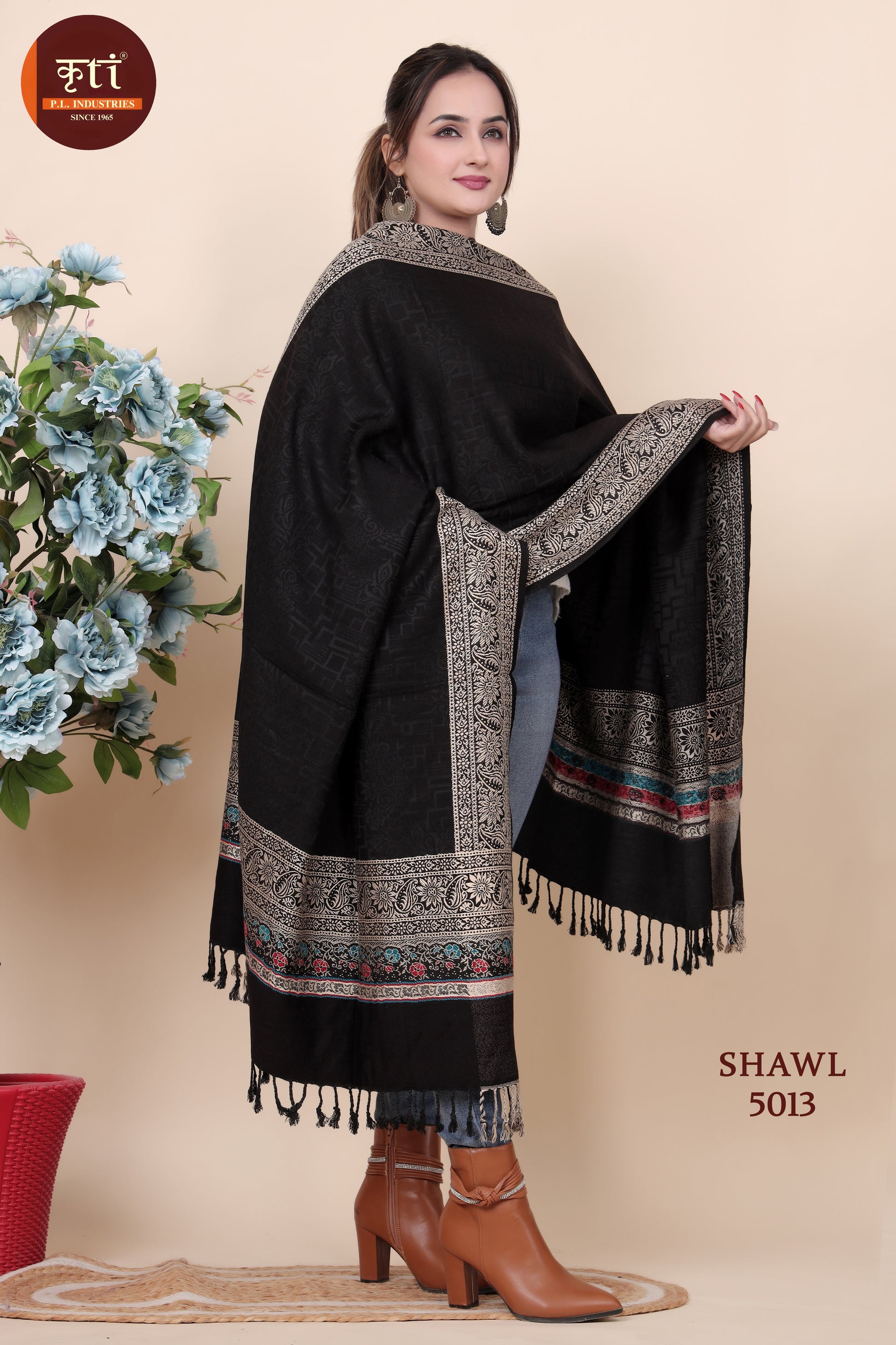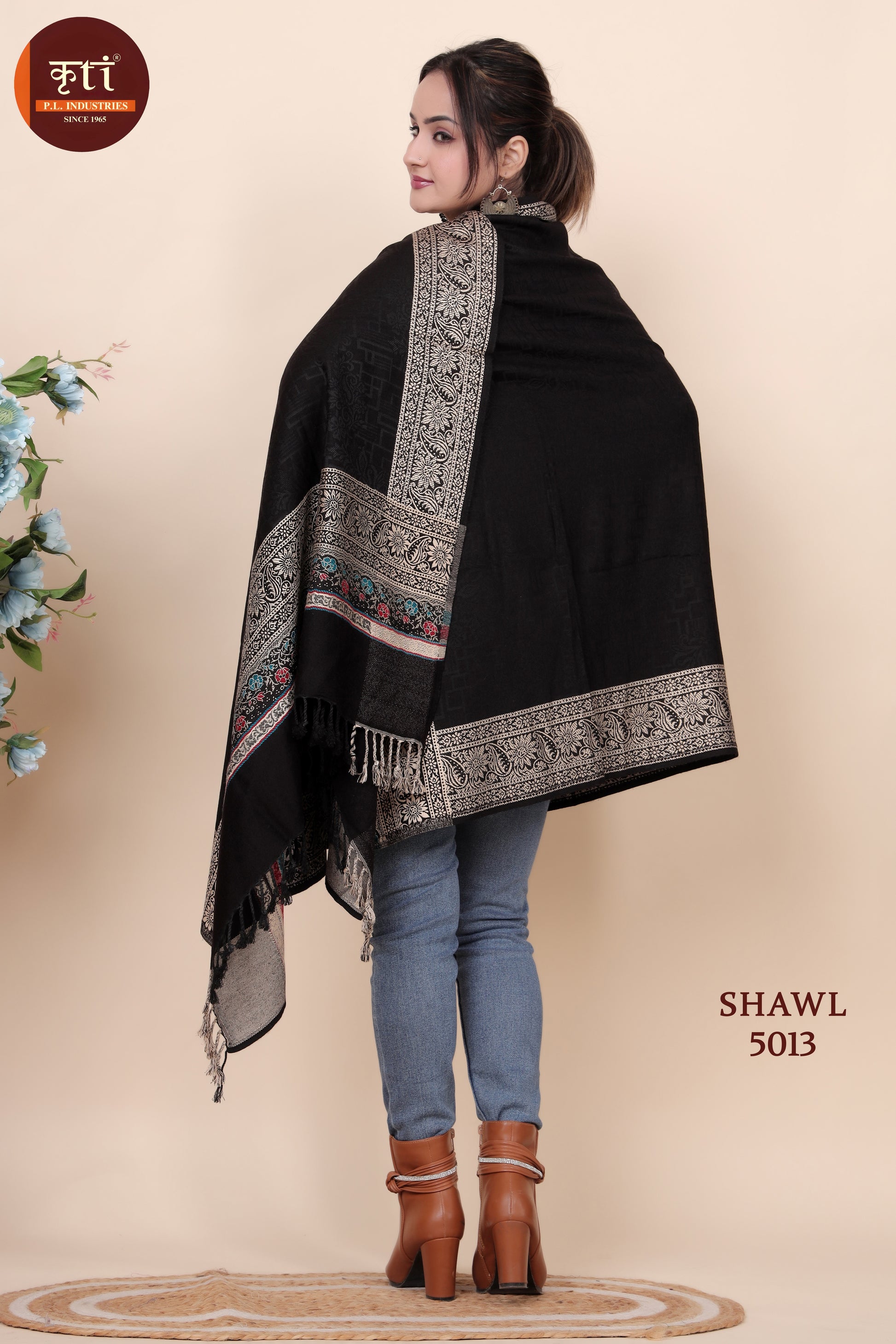 Elevate your winter style with the luxurious warmth and sophistication of the KTI Acrylic/Viscose Shawl, accessory designed to make a statement. Measuring a generous 40 x 80 inches, this shawl seamlessly combines comfort with a timeless appeal, featuring a rich Black.