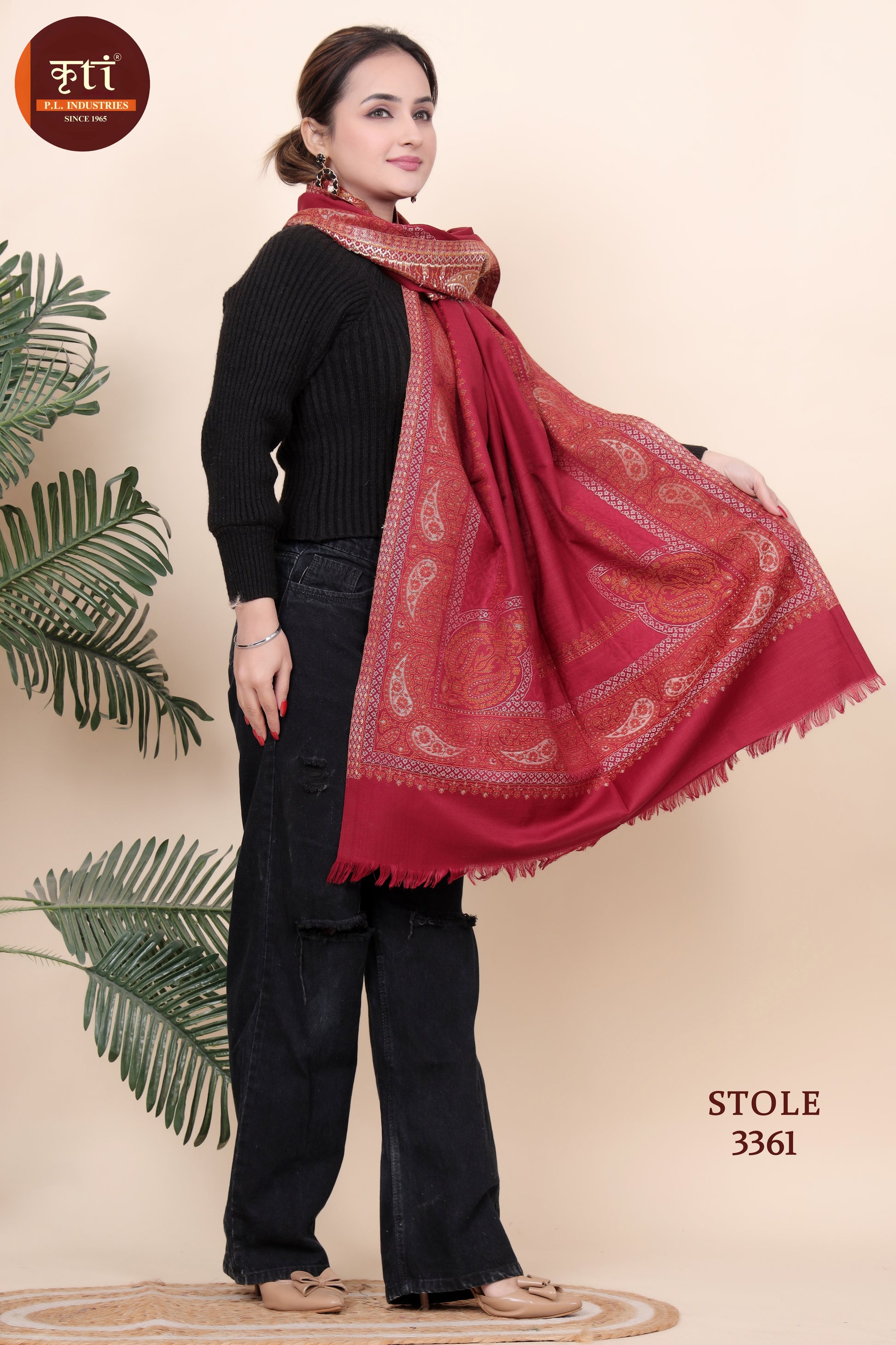 Elevate your winter style with the luxurious warmth and sophistication of the KTI Acrylic/Viscose Stole, accessory designed to make a statement. Measuring a generous 28 x 80 inches, this shawl seamlessly combines comfort with a timeless appeal, featuring a rich Black.