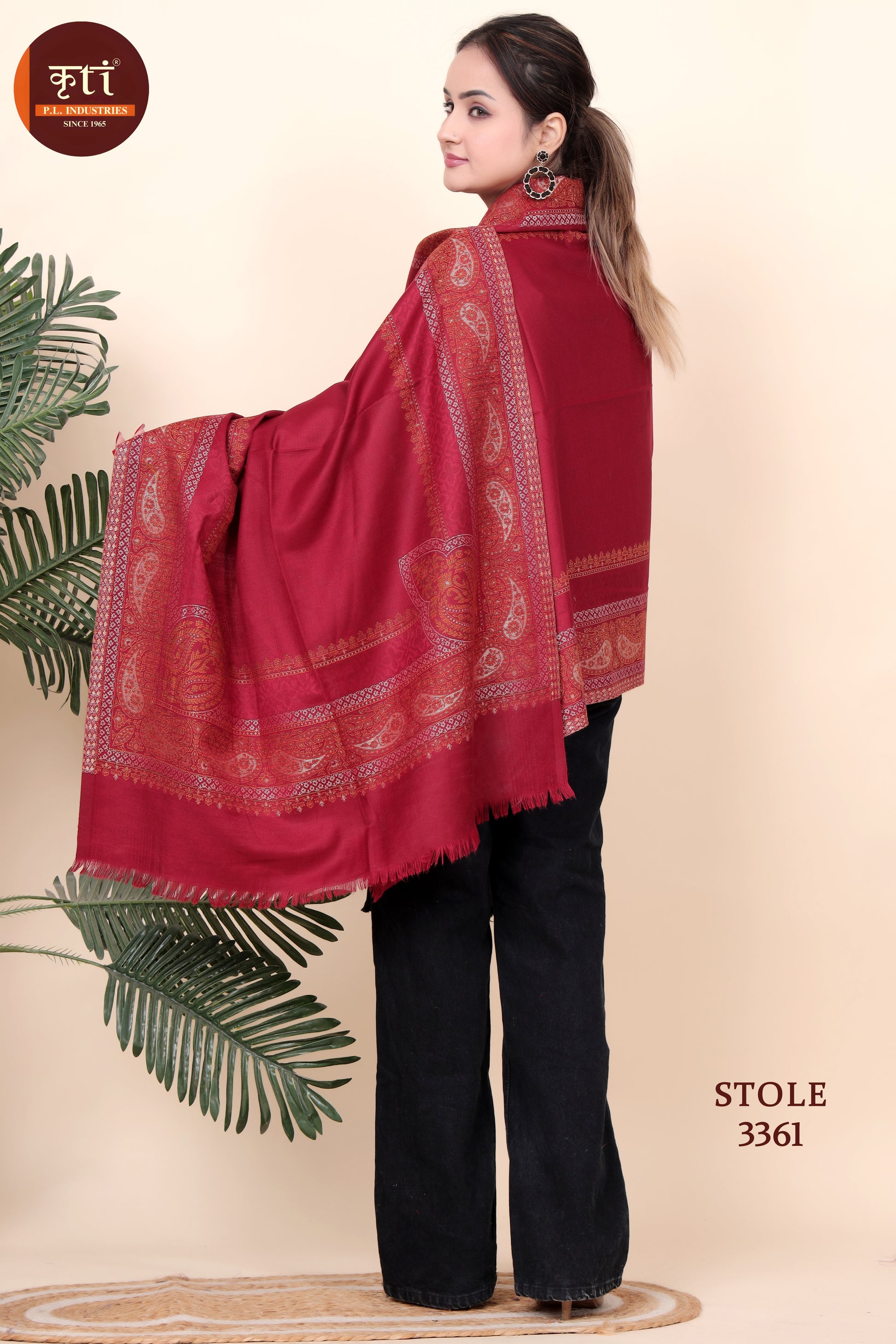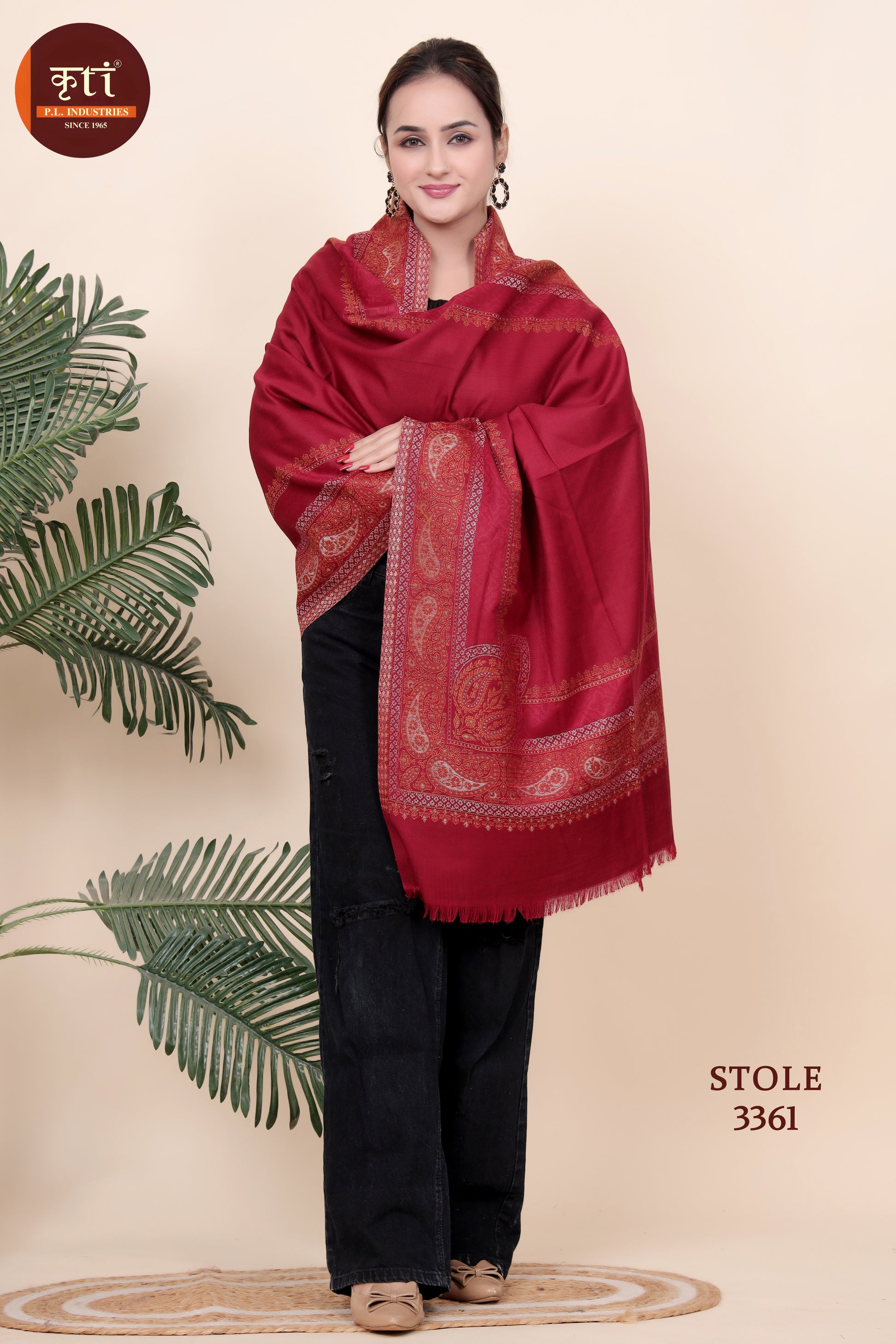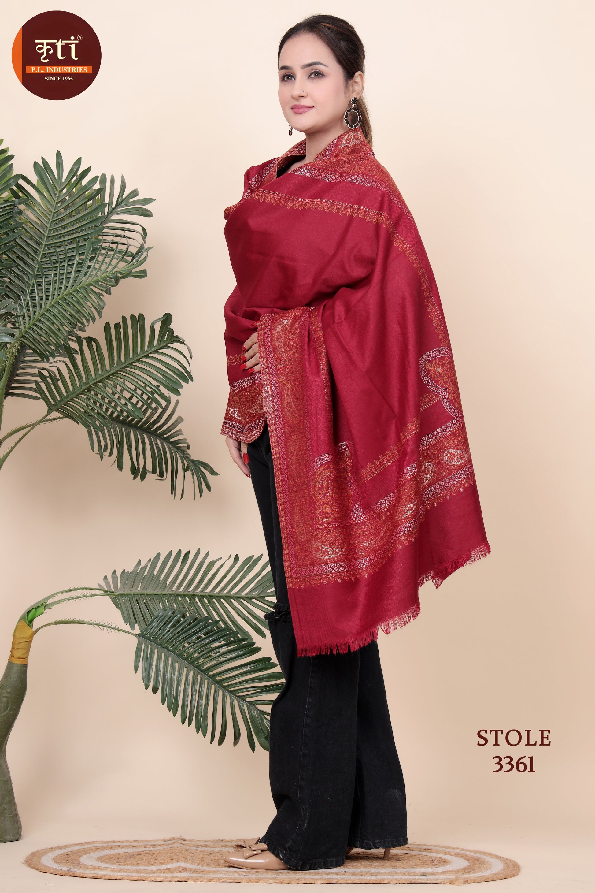 KRITI Stripe Border Woollen Maroon Color Stole for Girl