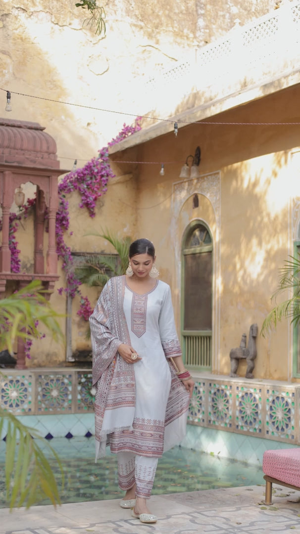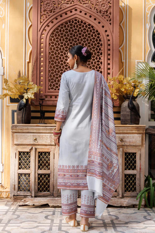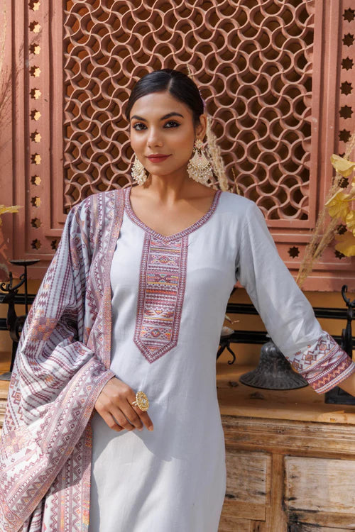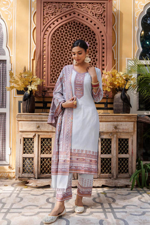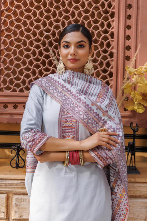 KRITI Cotton Silk Unstitched Salwar Suit with Tribal Print Dupatta for Women