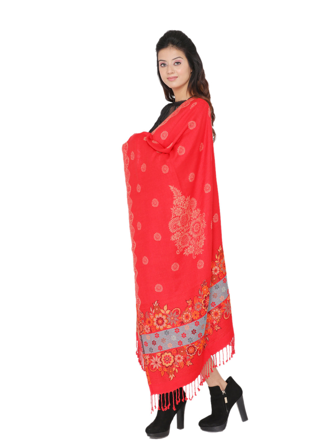 KRITI Floral Border Design Woolen Red Color Stole For Girl