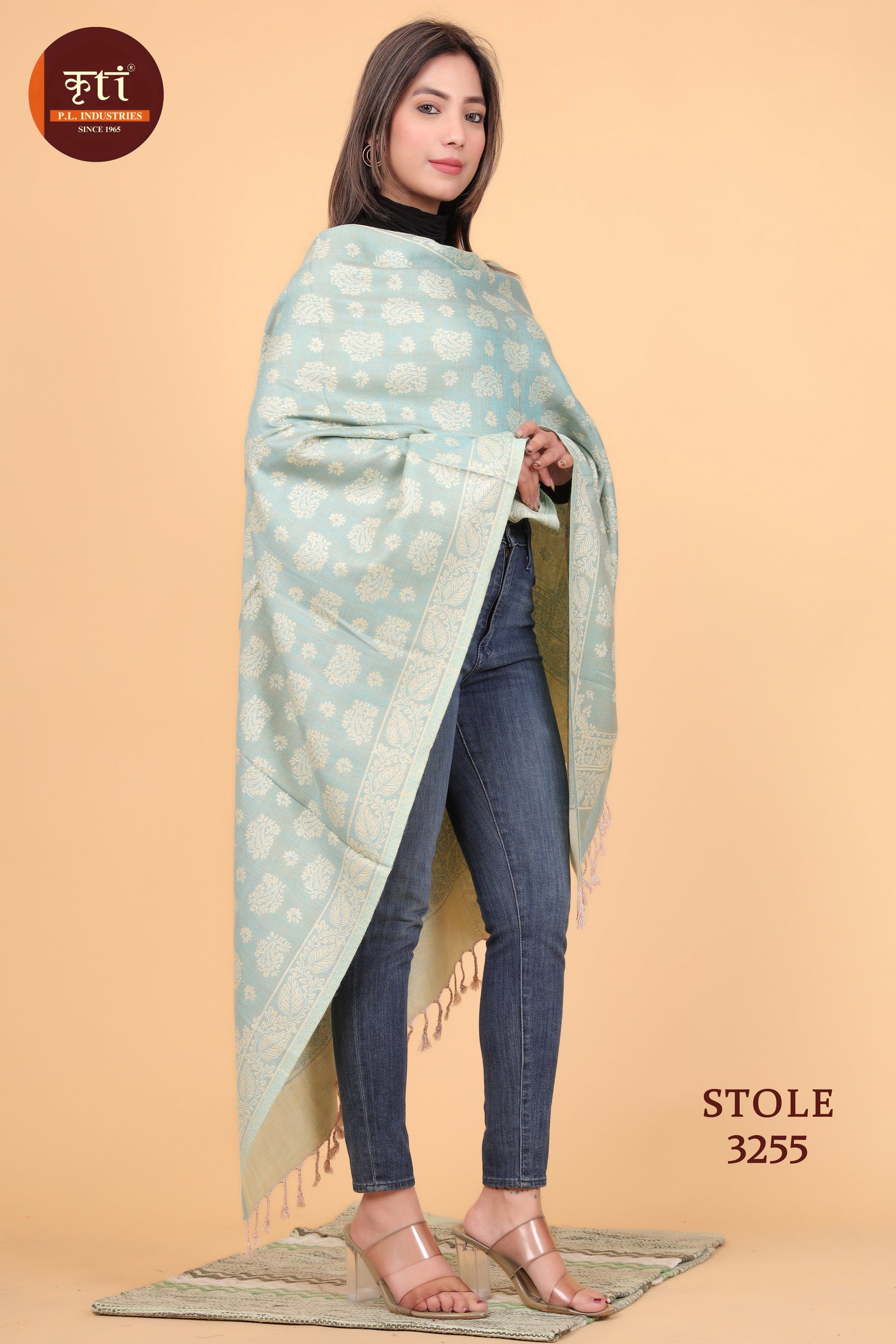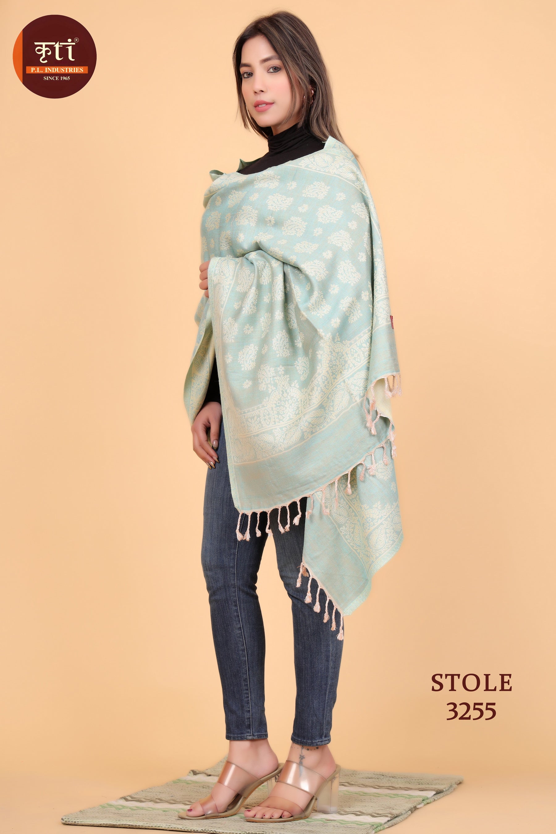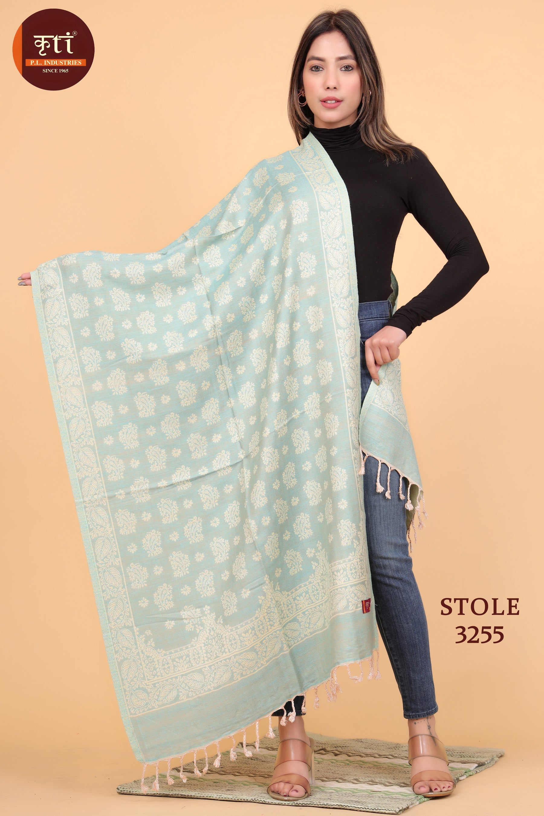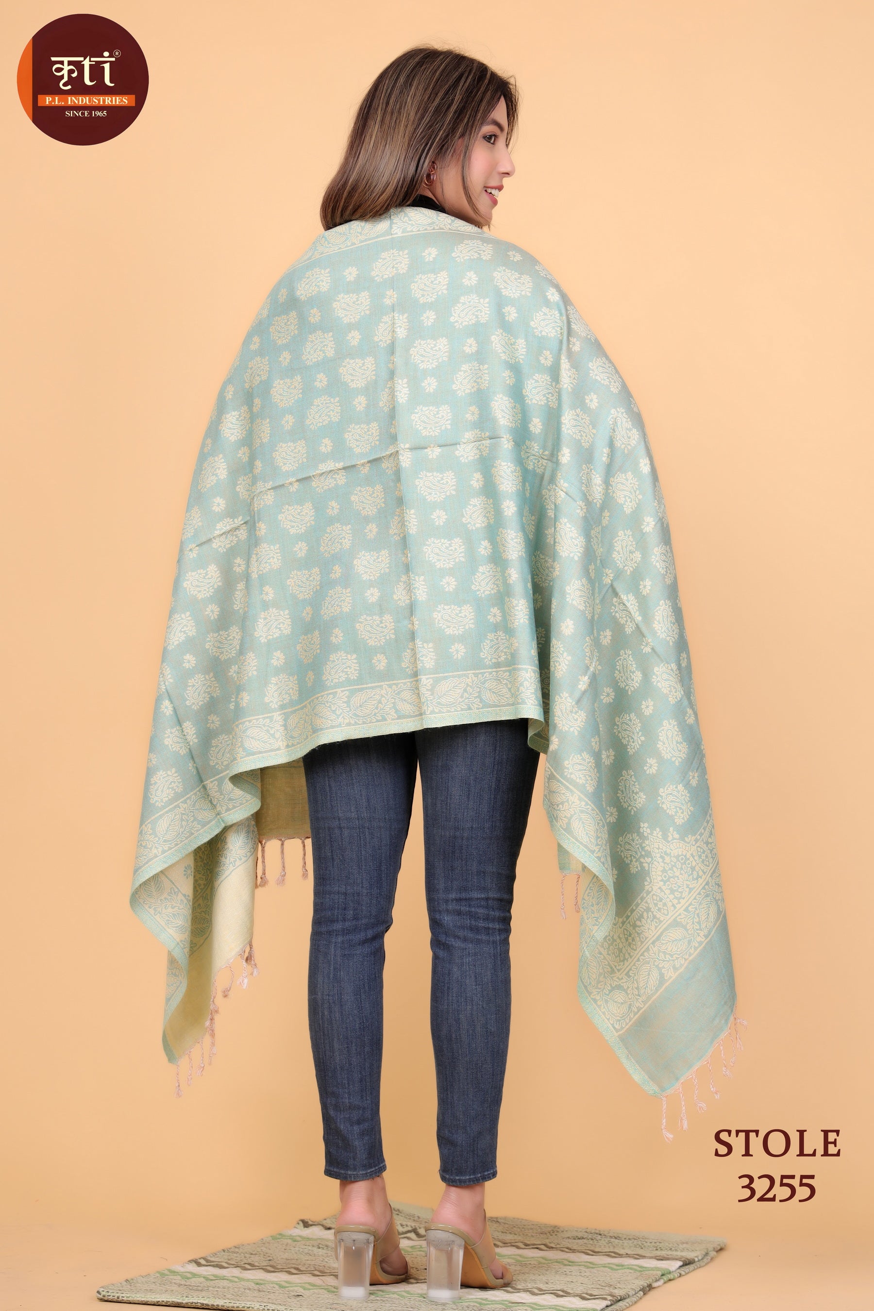 KRITI Floral Pattern Woollen Pista Color Stole For Girl