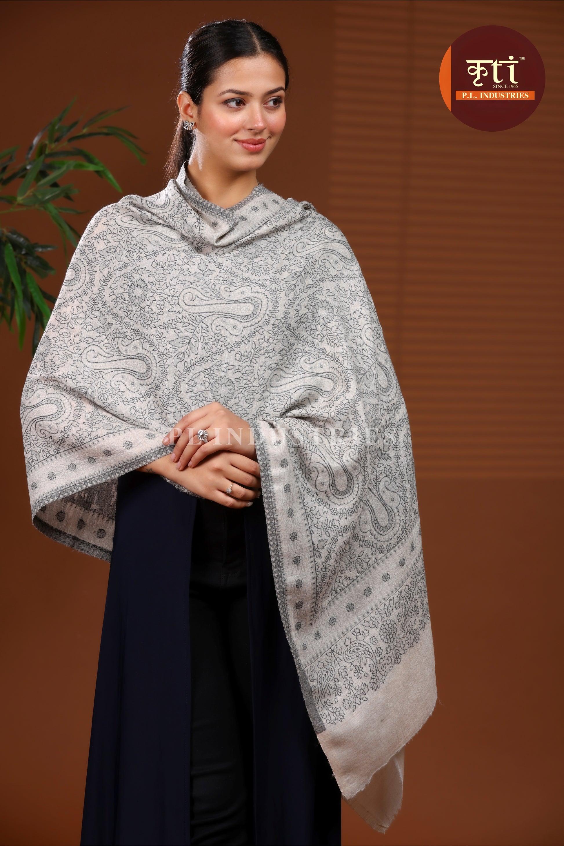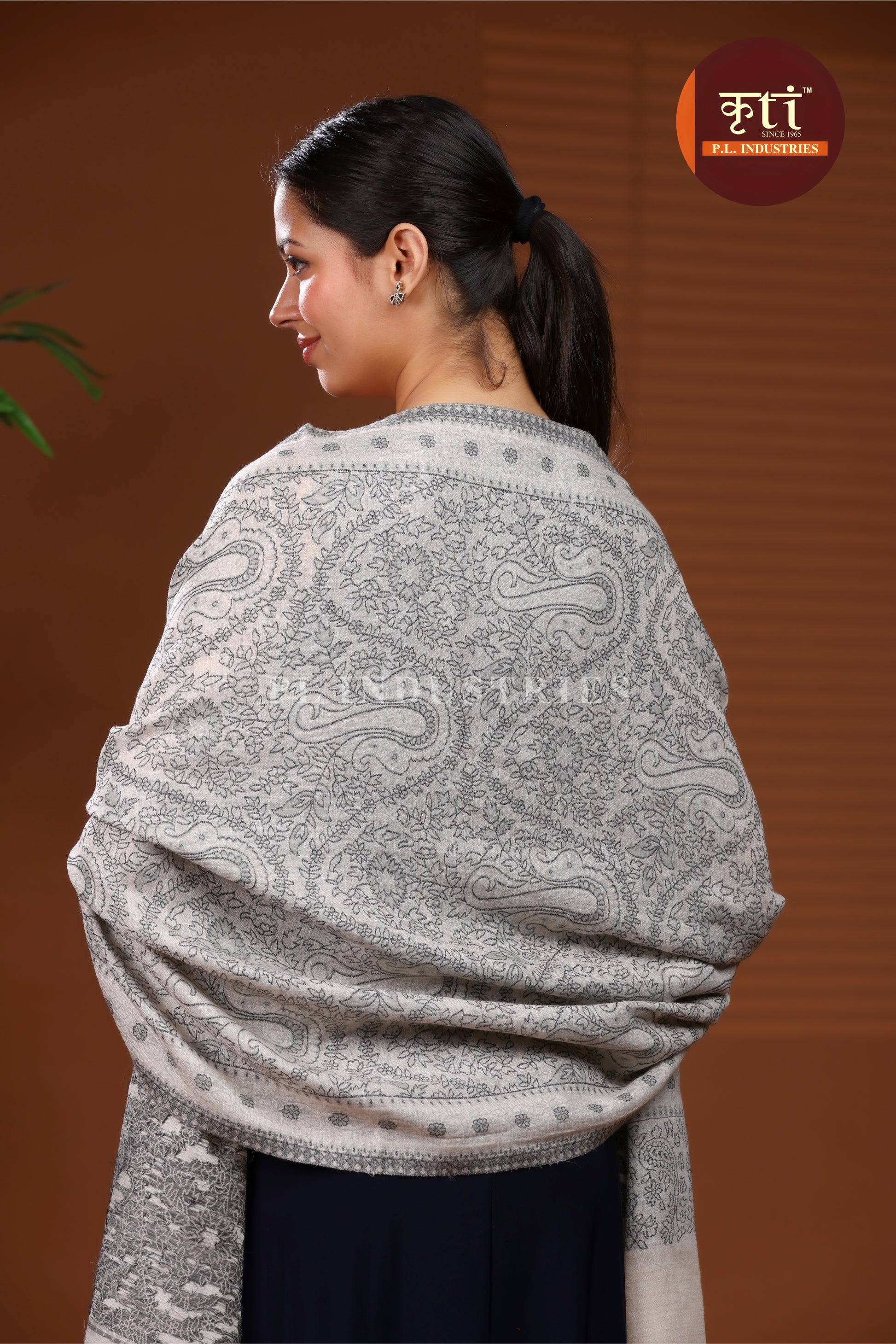 KRITI Luxury Fine Wool Gray Color Stole For Girl