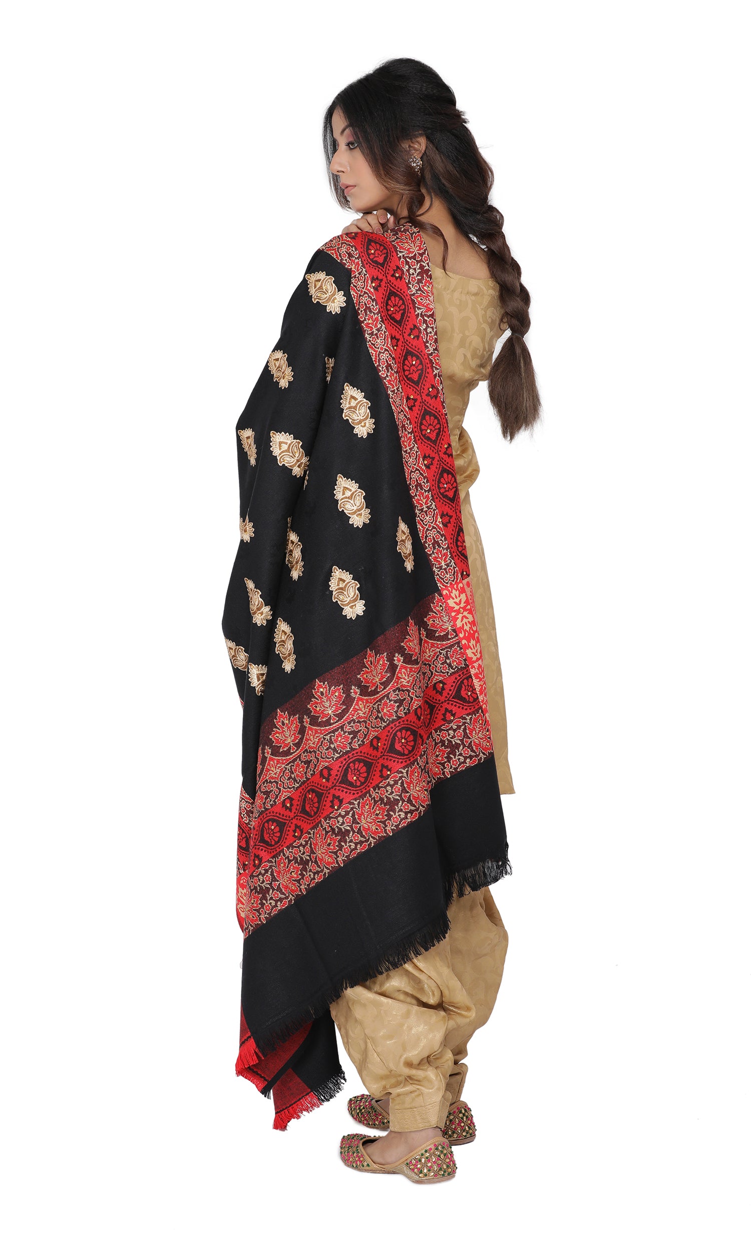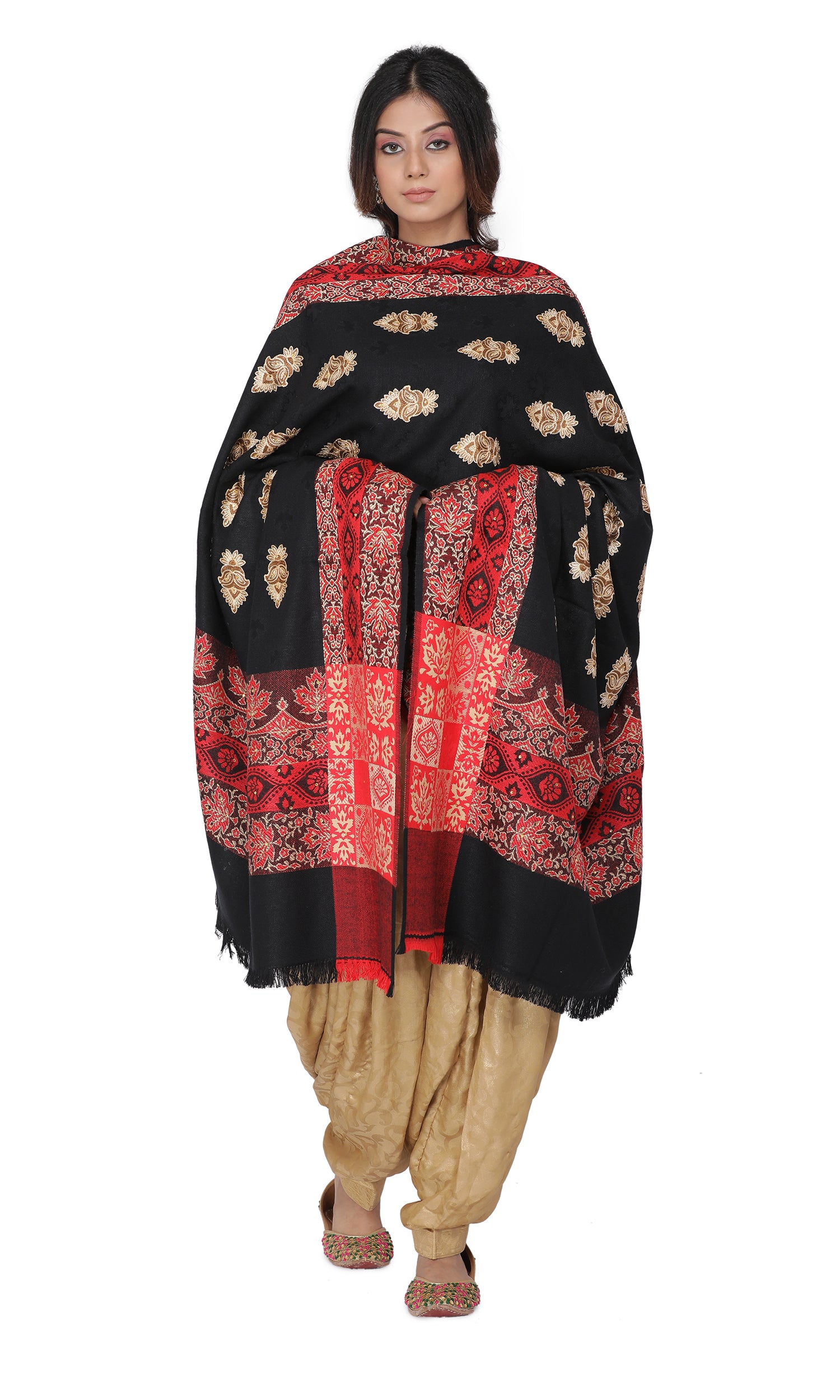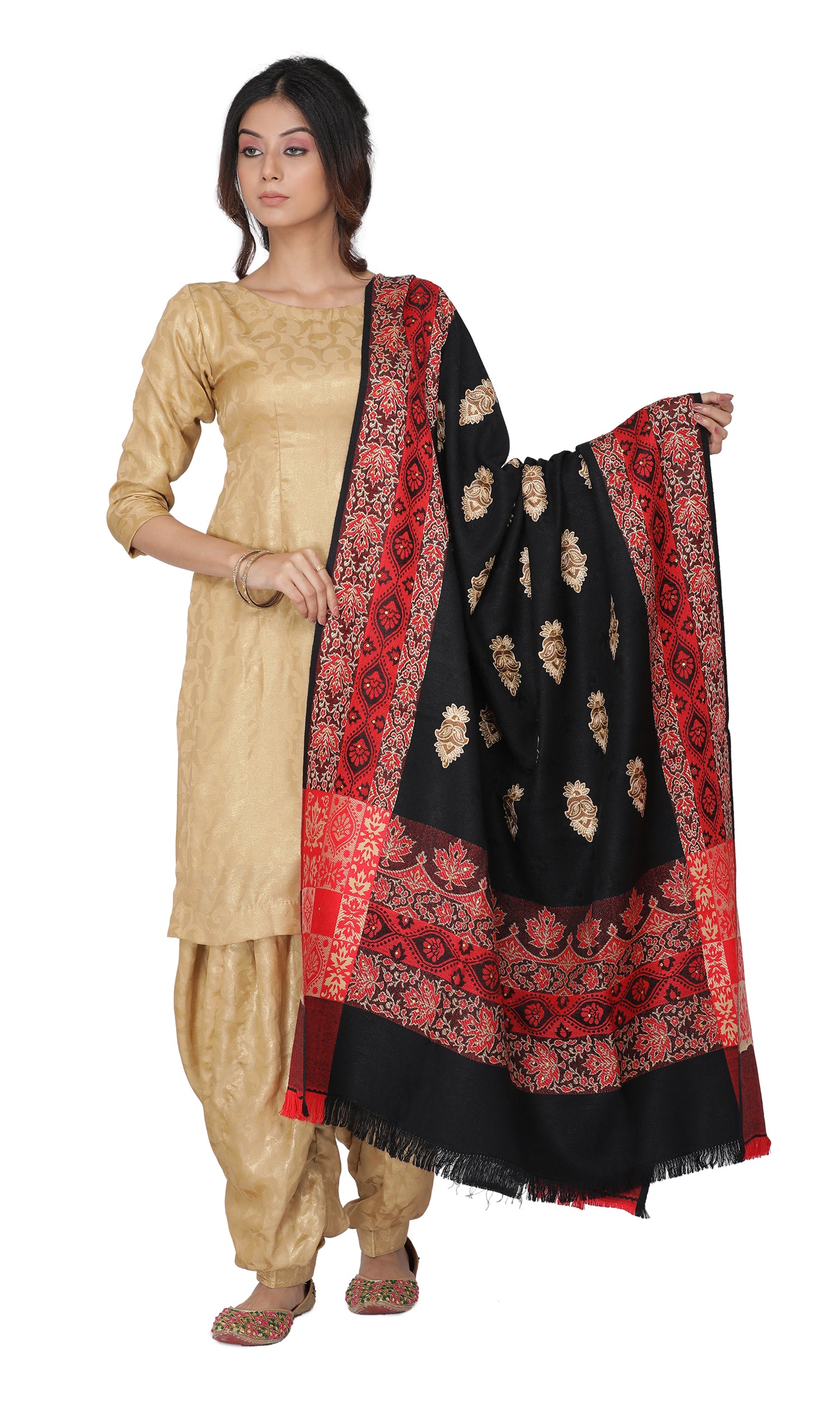 KRITI Paisley Border Design Woolen Black Color Shawl For Women