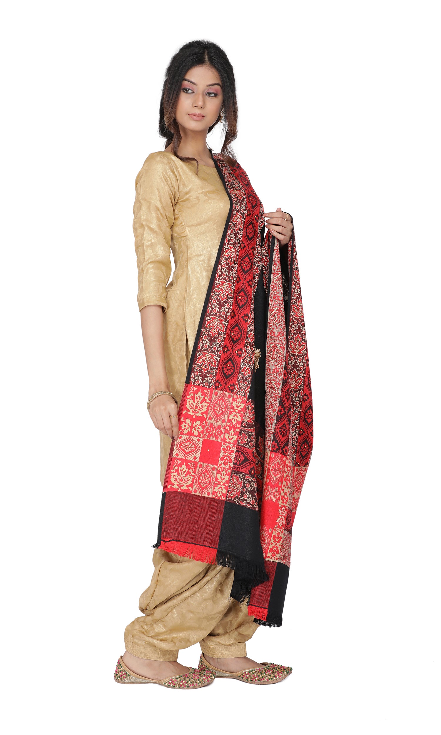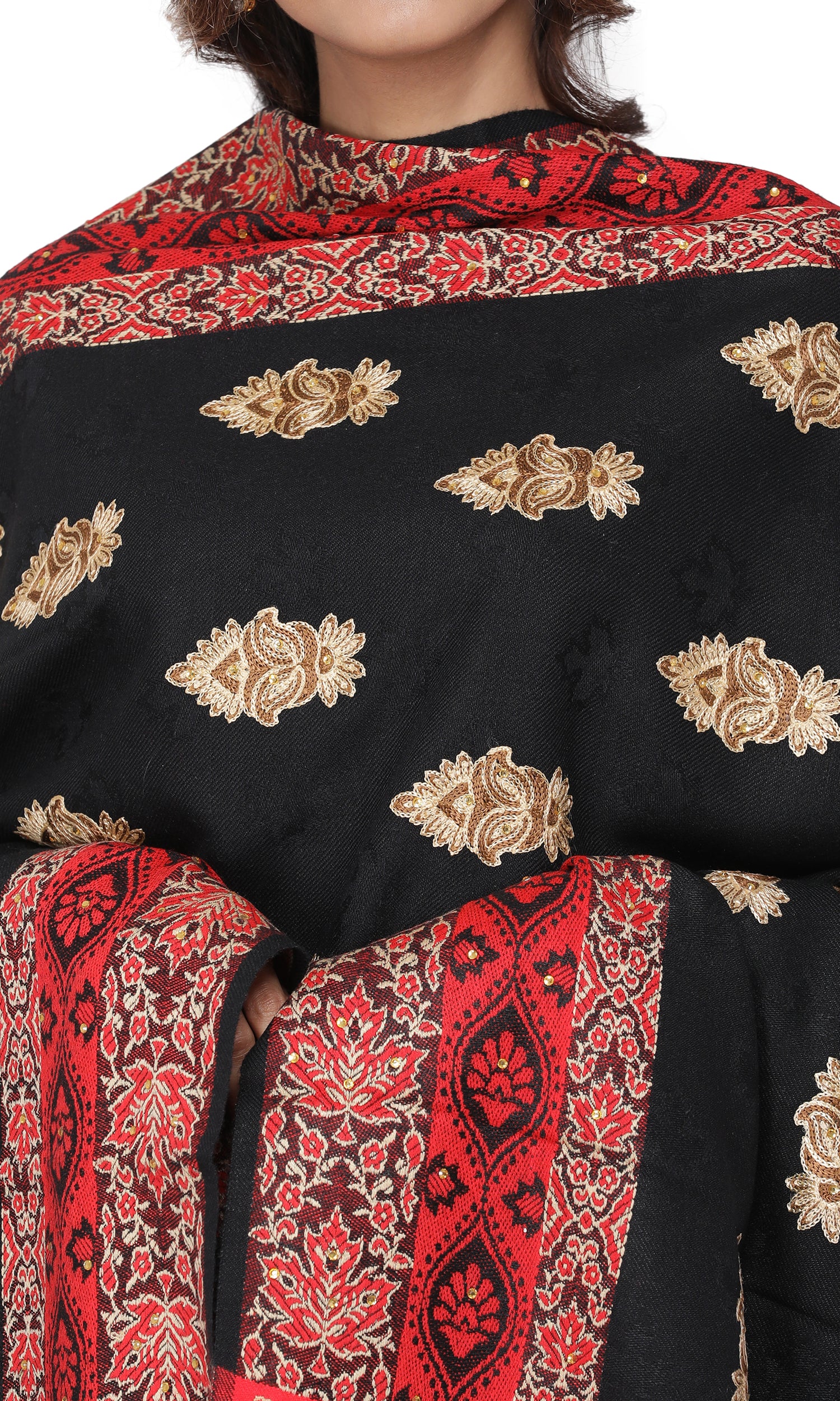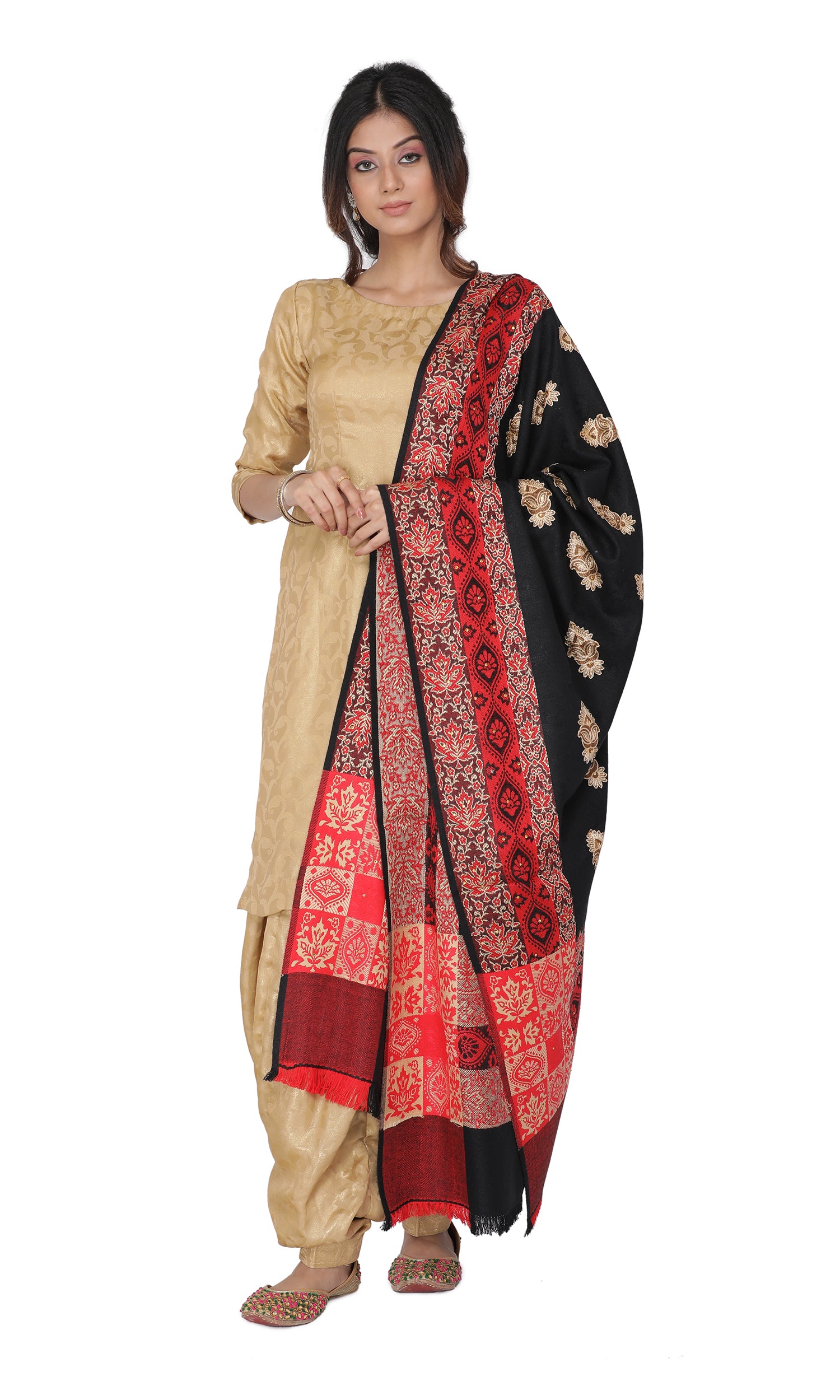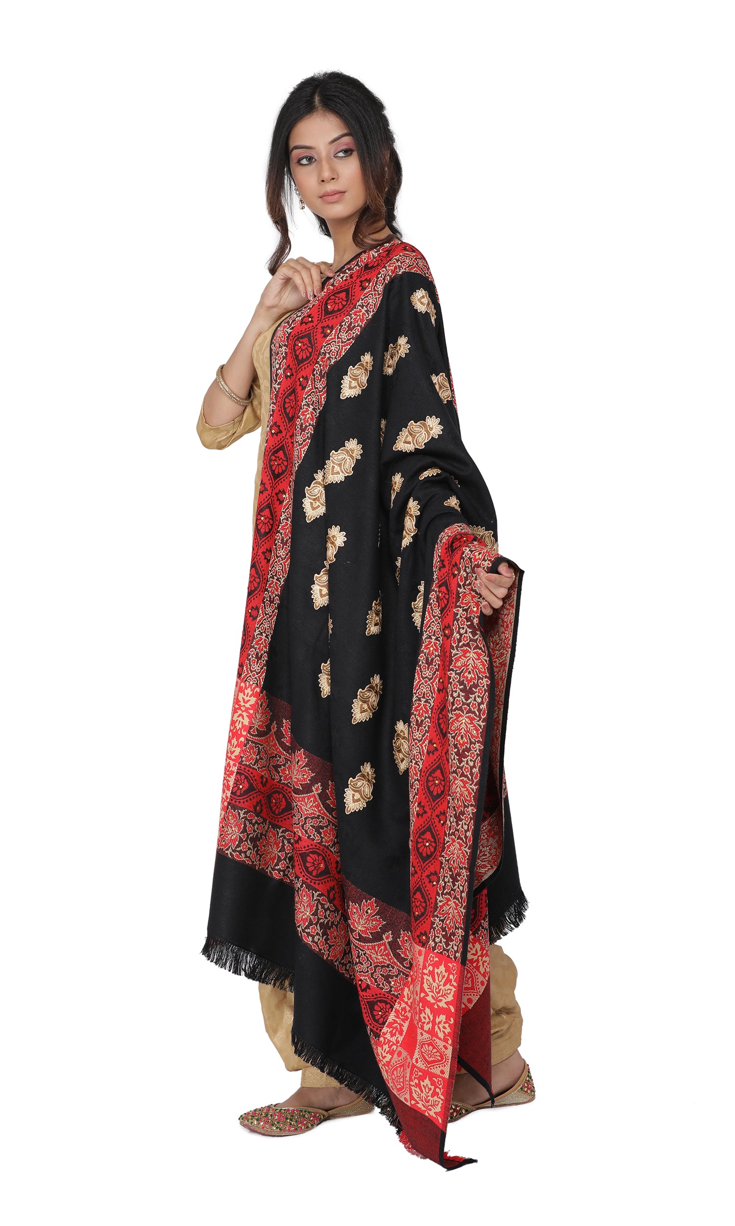 KRITI Paisley Border Design Woolen Black Color Shawl For Women