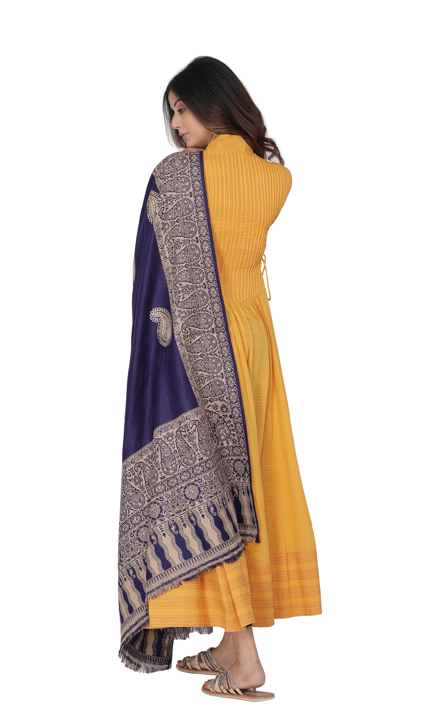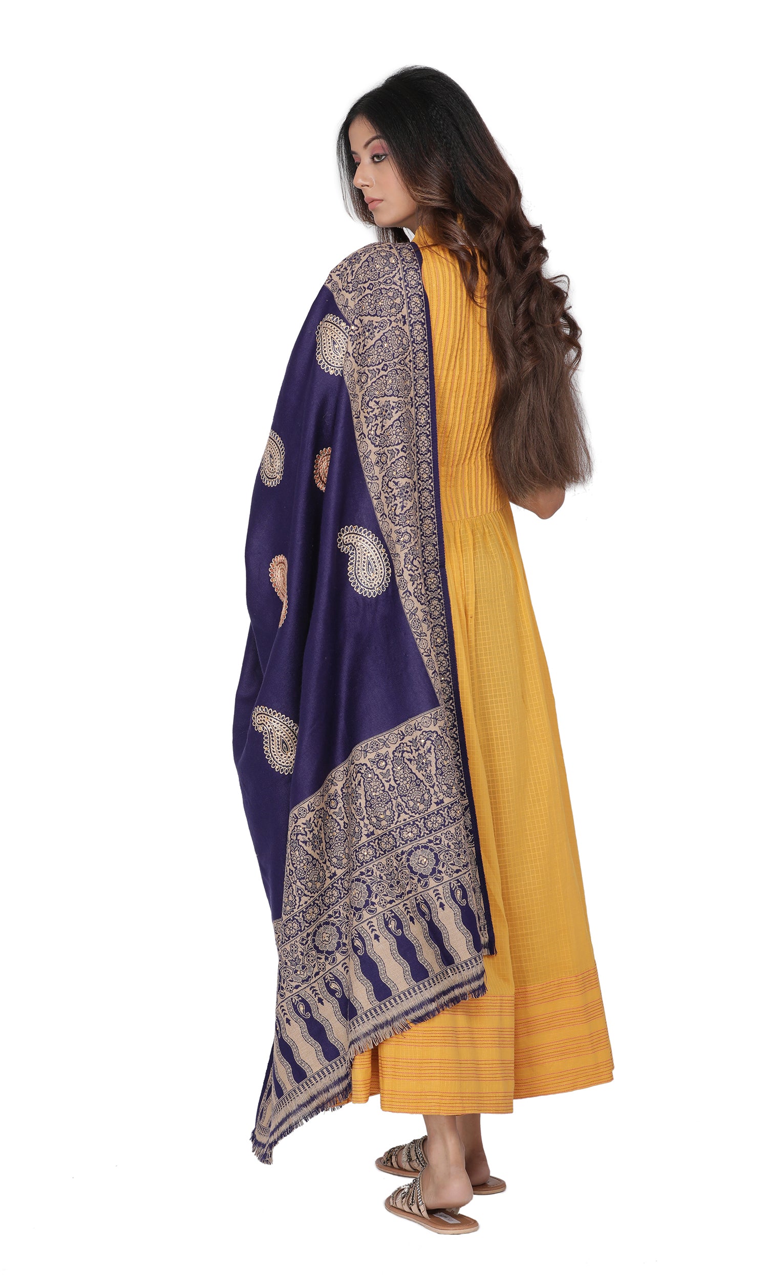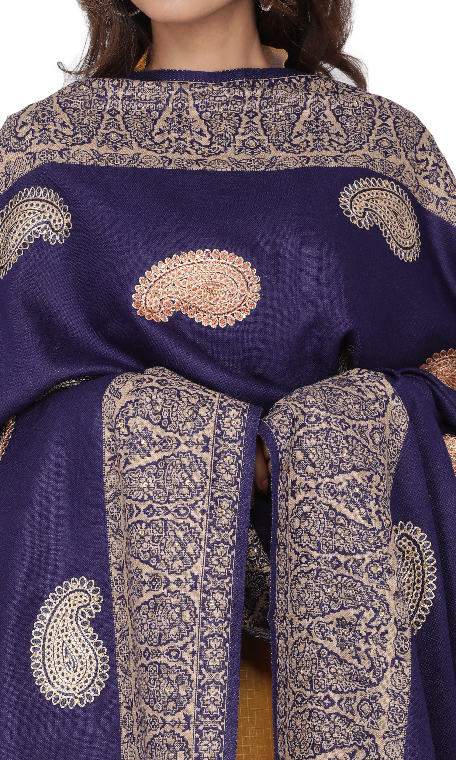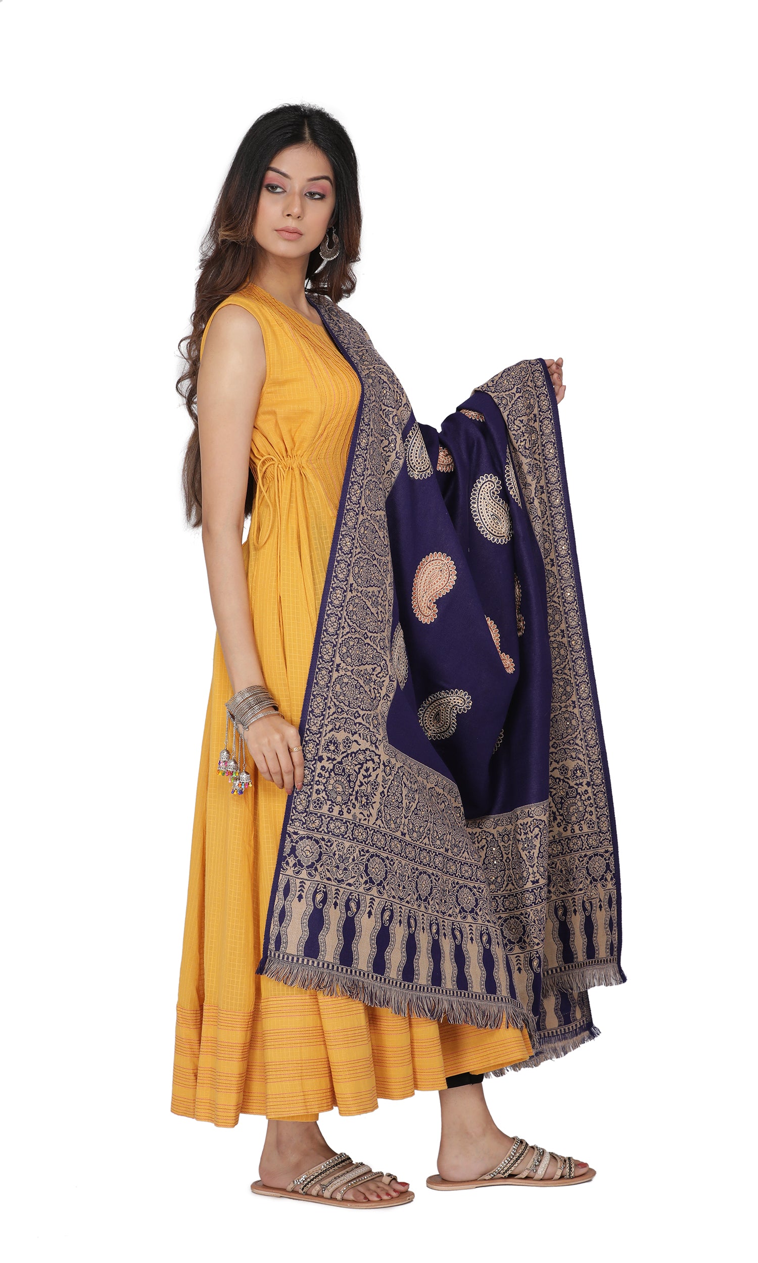 KRITI Paisley Border Design Woolen Navy Color Shawl For Women