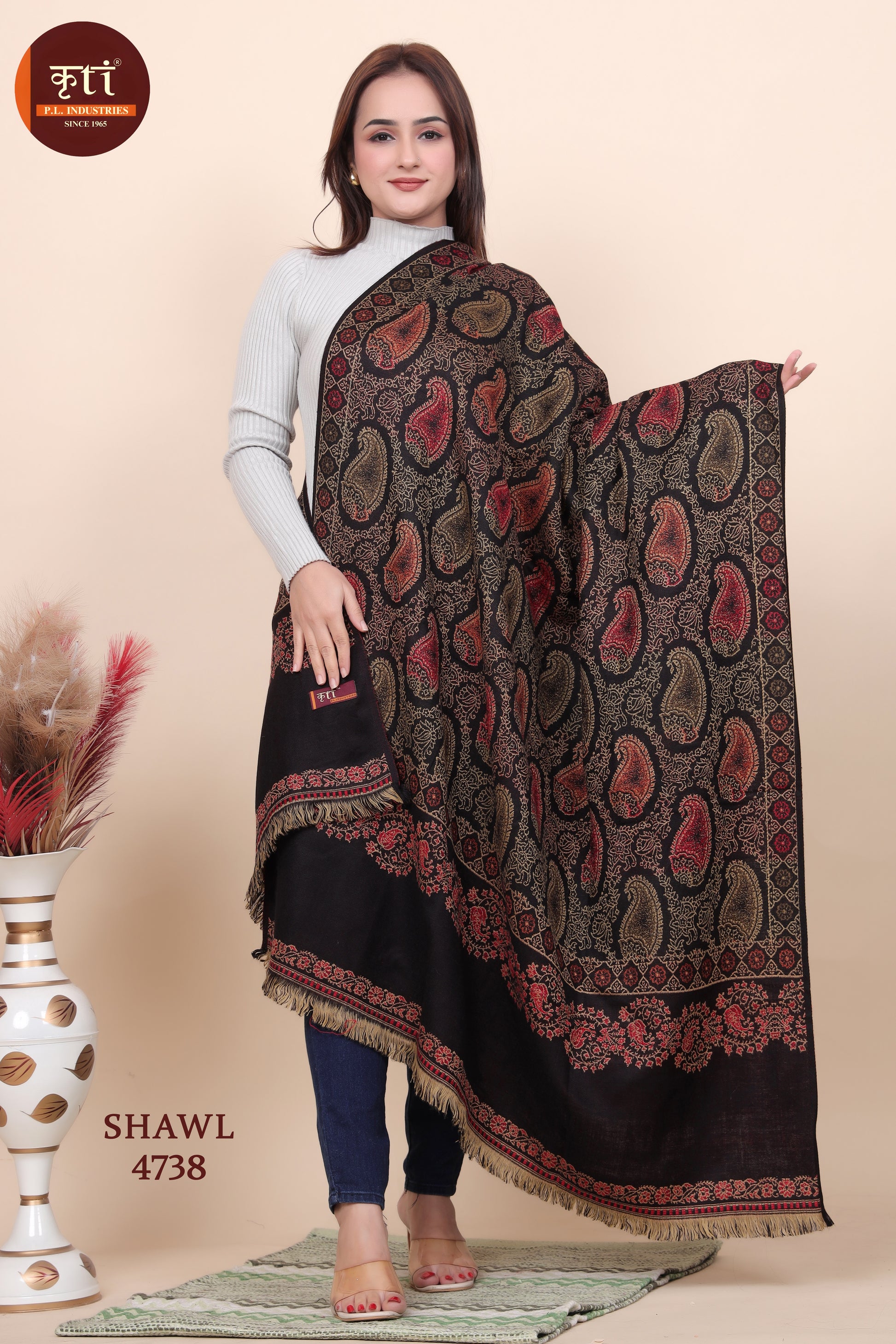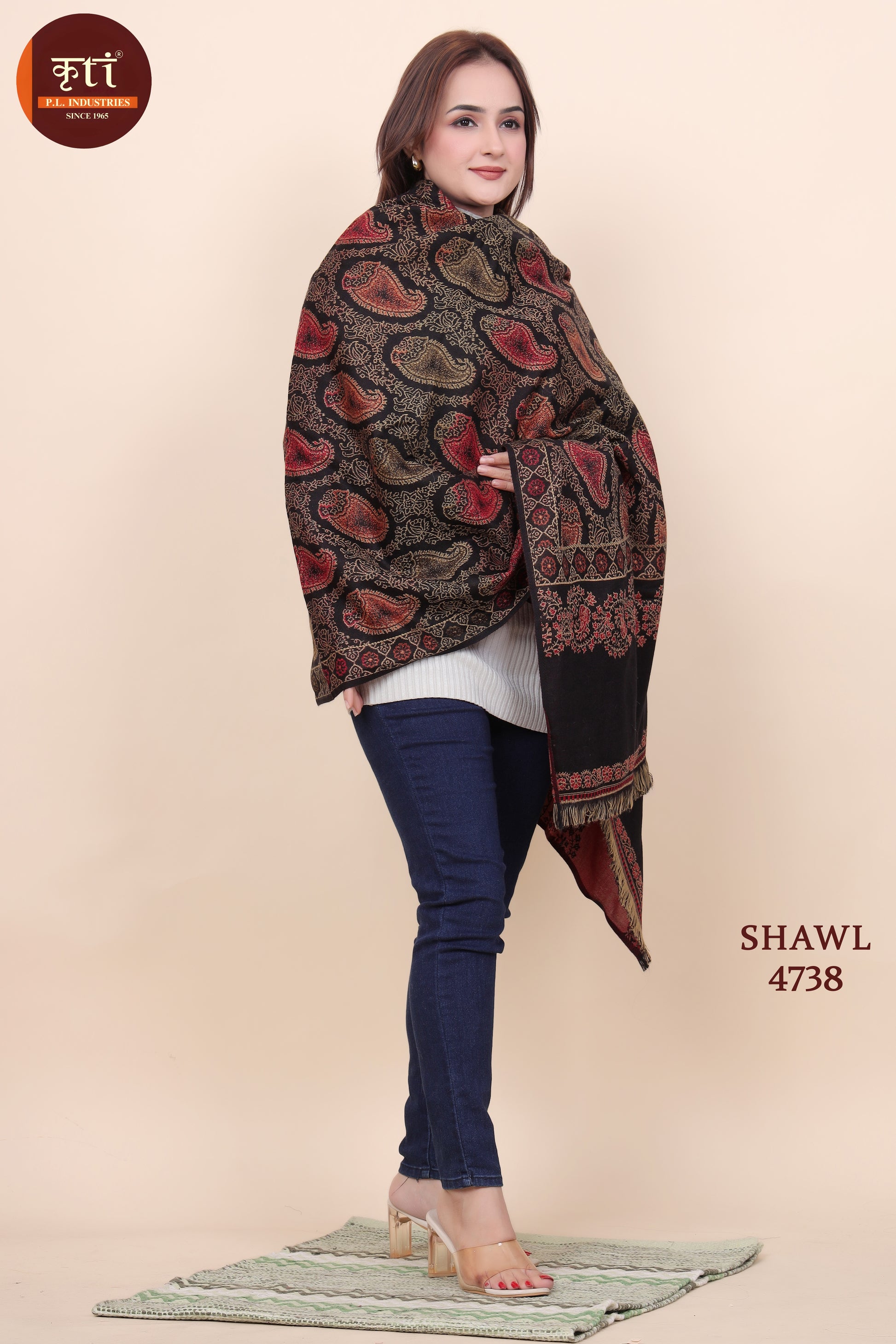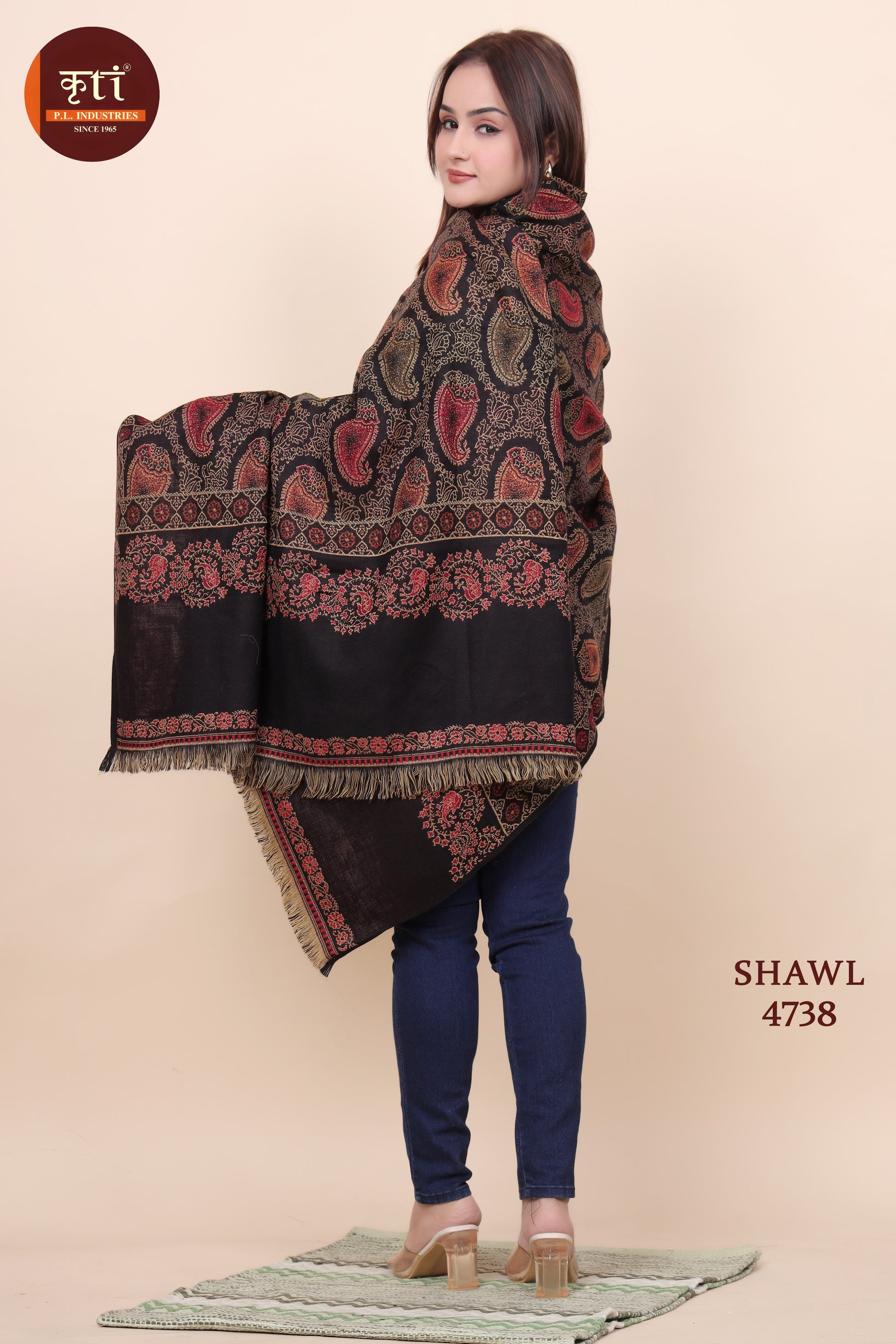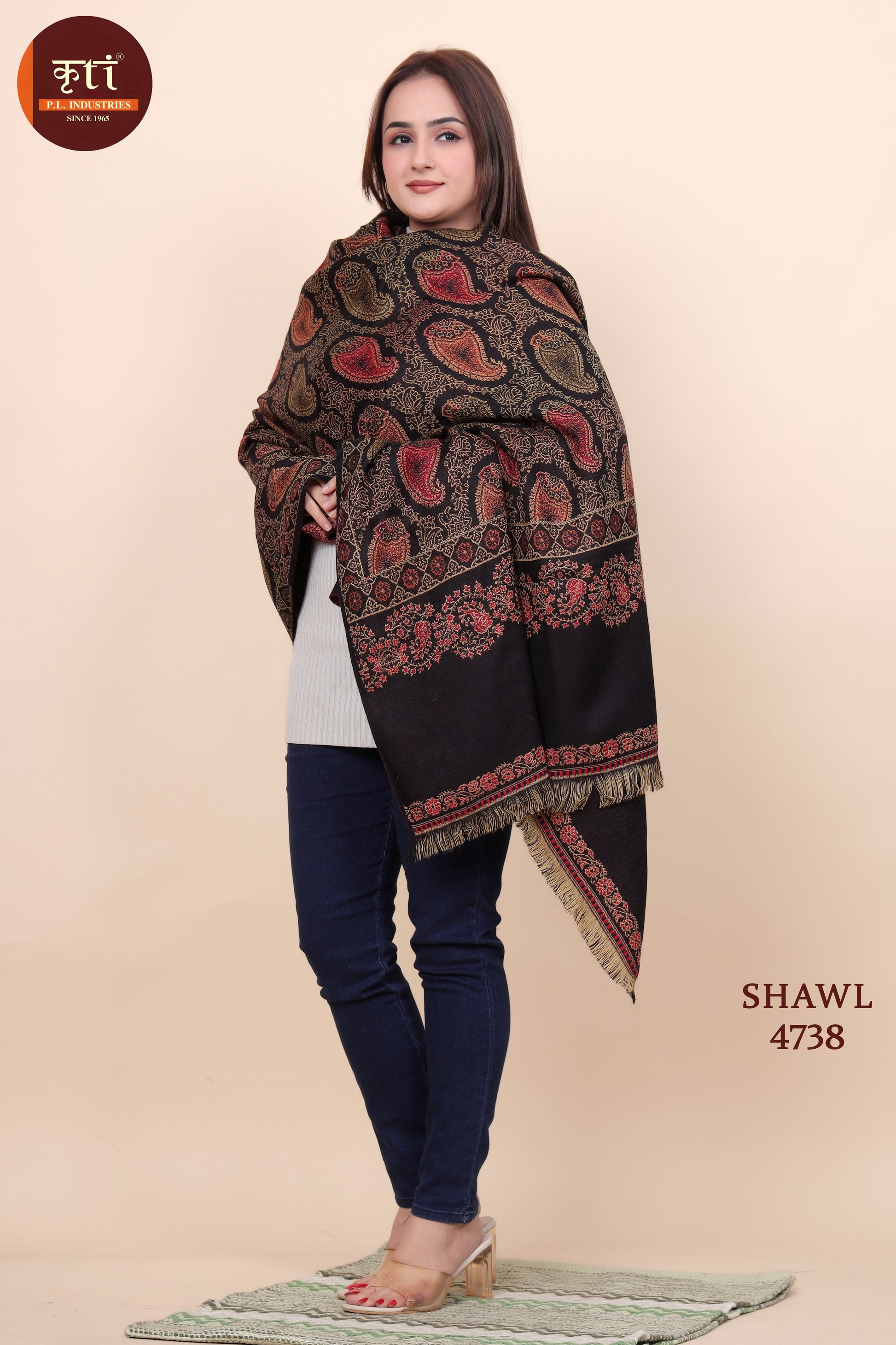 KRITI Paisley Border Design Woollen Black Color Shawl For Women
