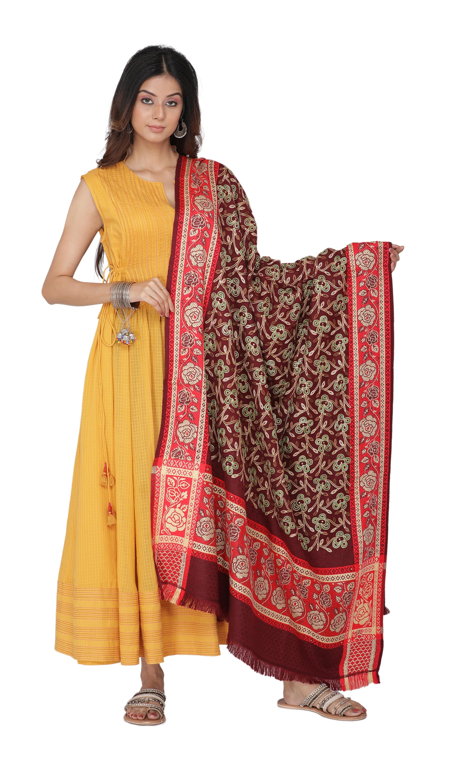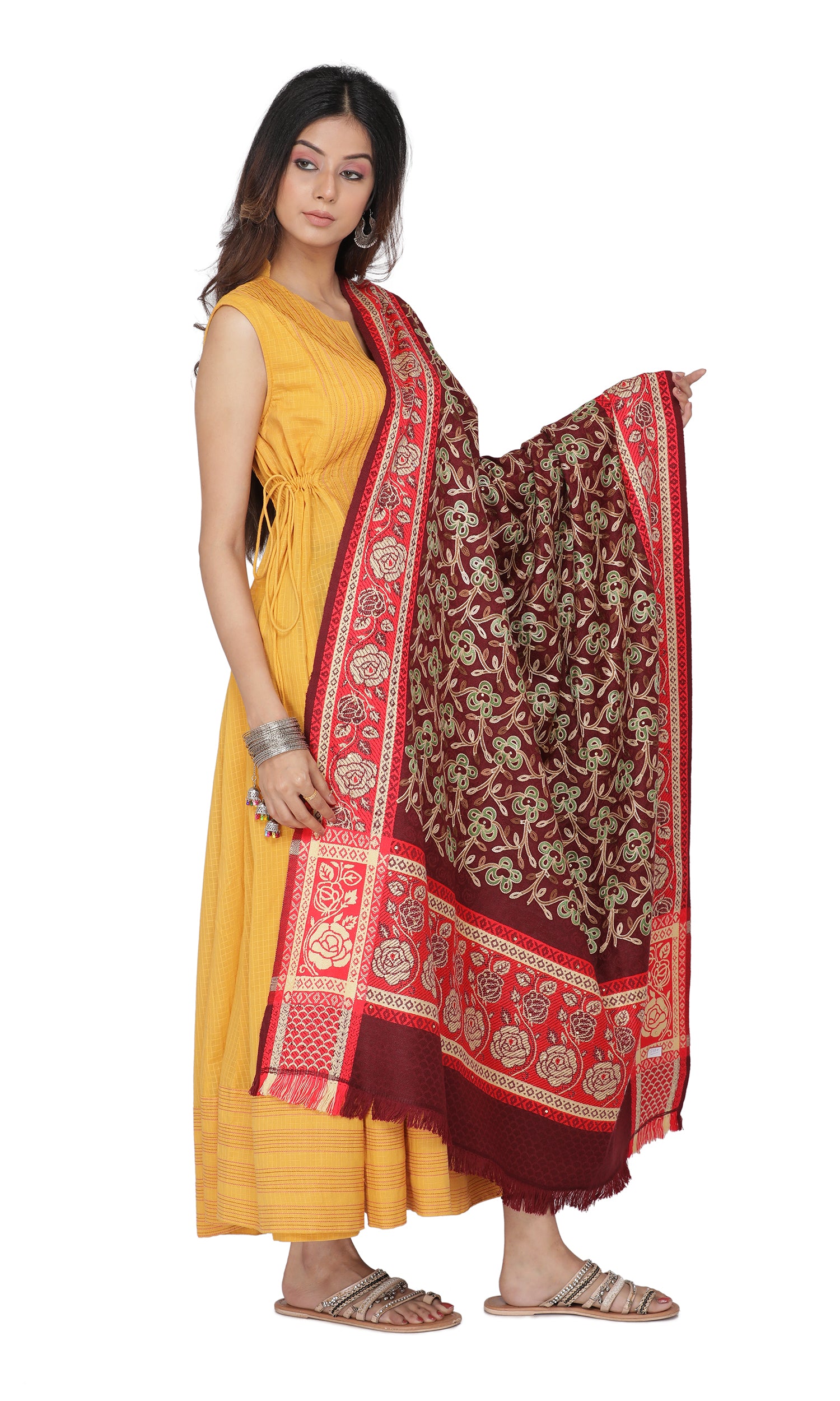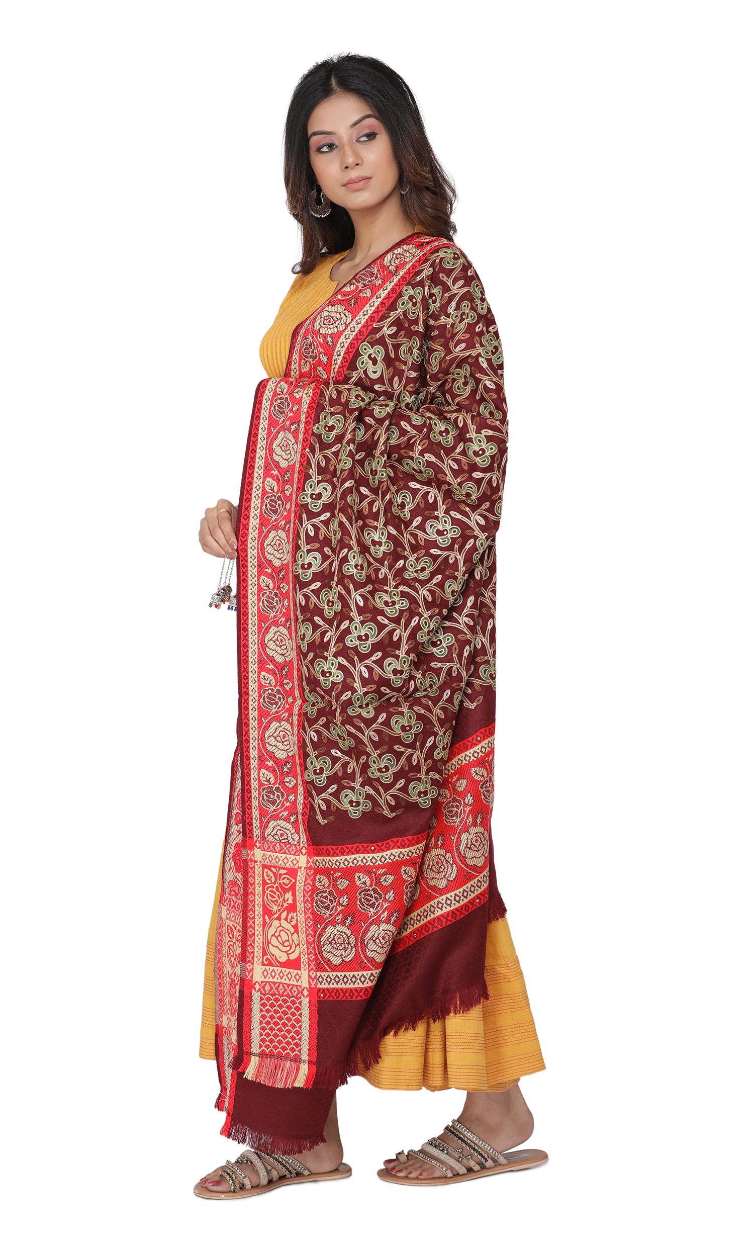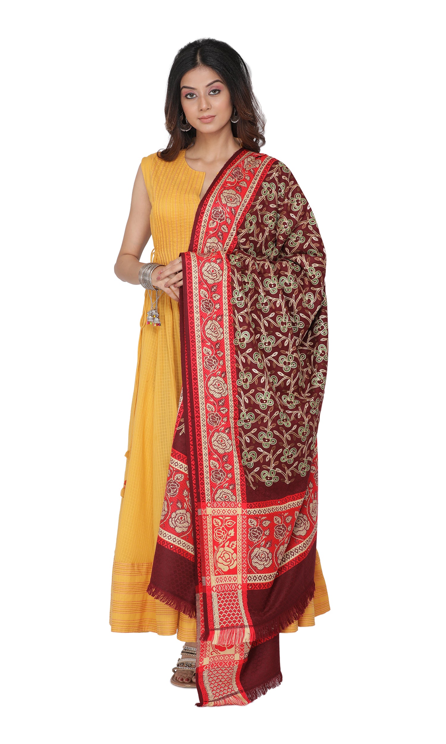 KRITI Paisley Design Pattern Woollen Maroon color Shawl For Women