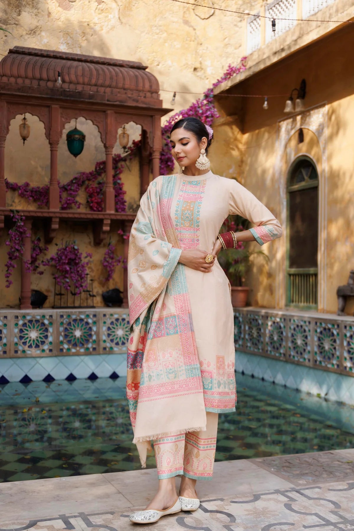 KRITI Premium Cotton Silk Unstitched Salwar Suit with Printed Dupatta for Women